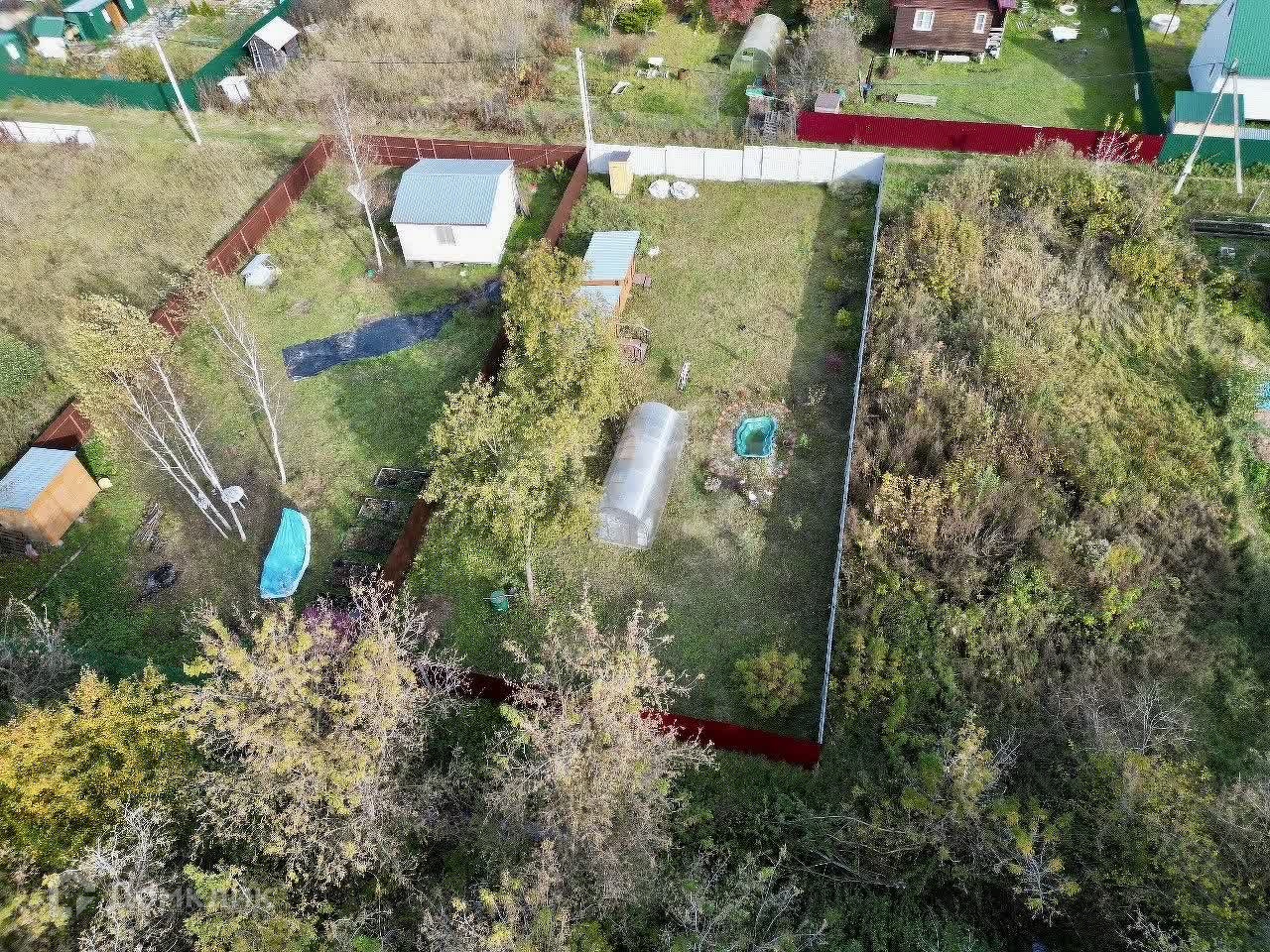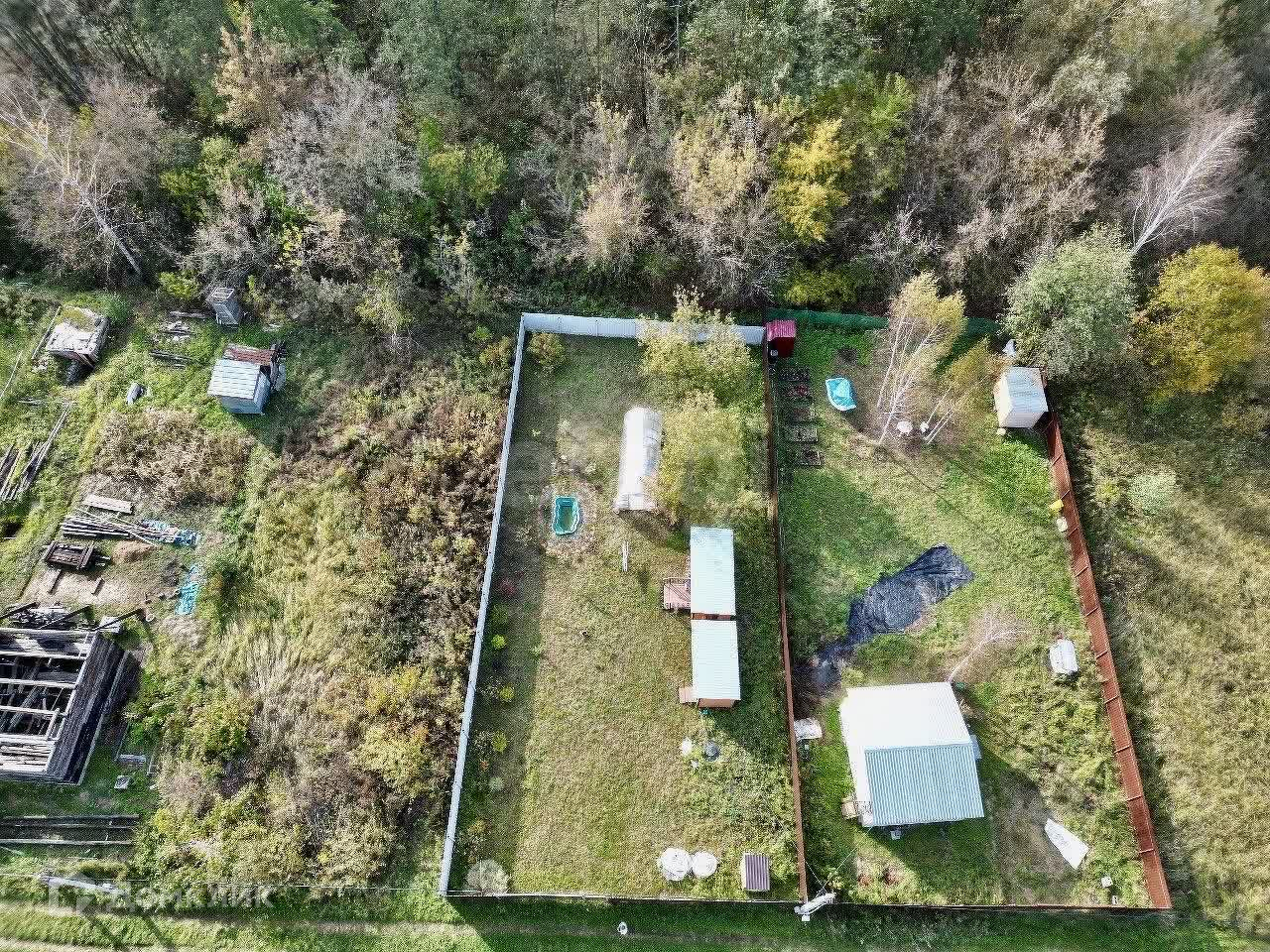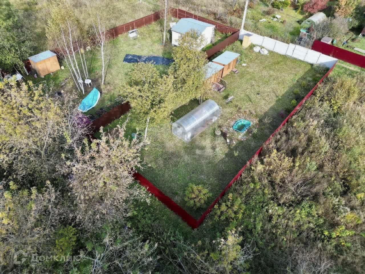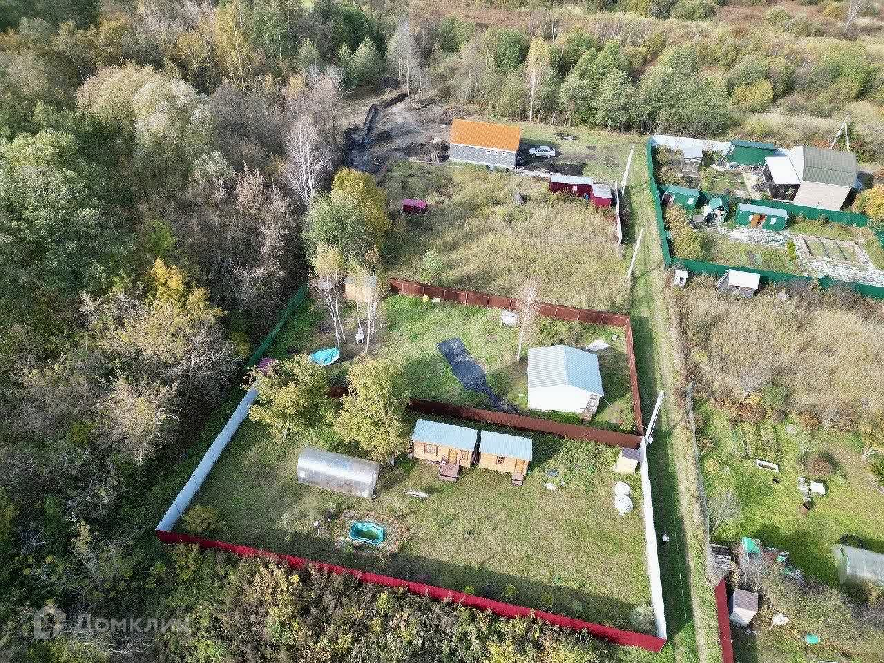 На территории находятся теплица с усиленным профилем и два уютных каркасных домика, отделанных вагонкой — идеальное место для отдыха на природе. Электричество подключено, так что вы сможете наслаждаться всеми современными удобствами.