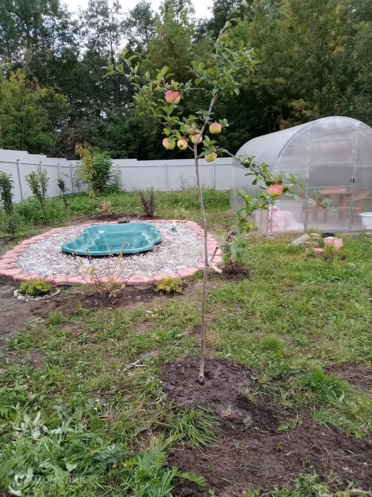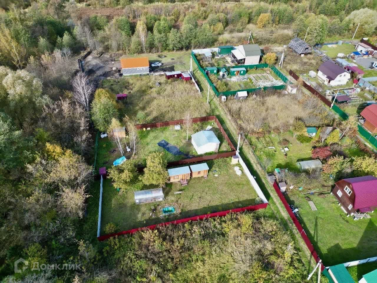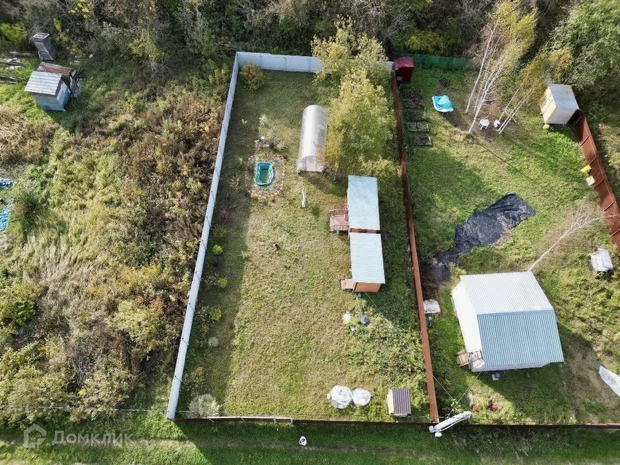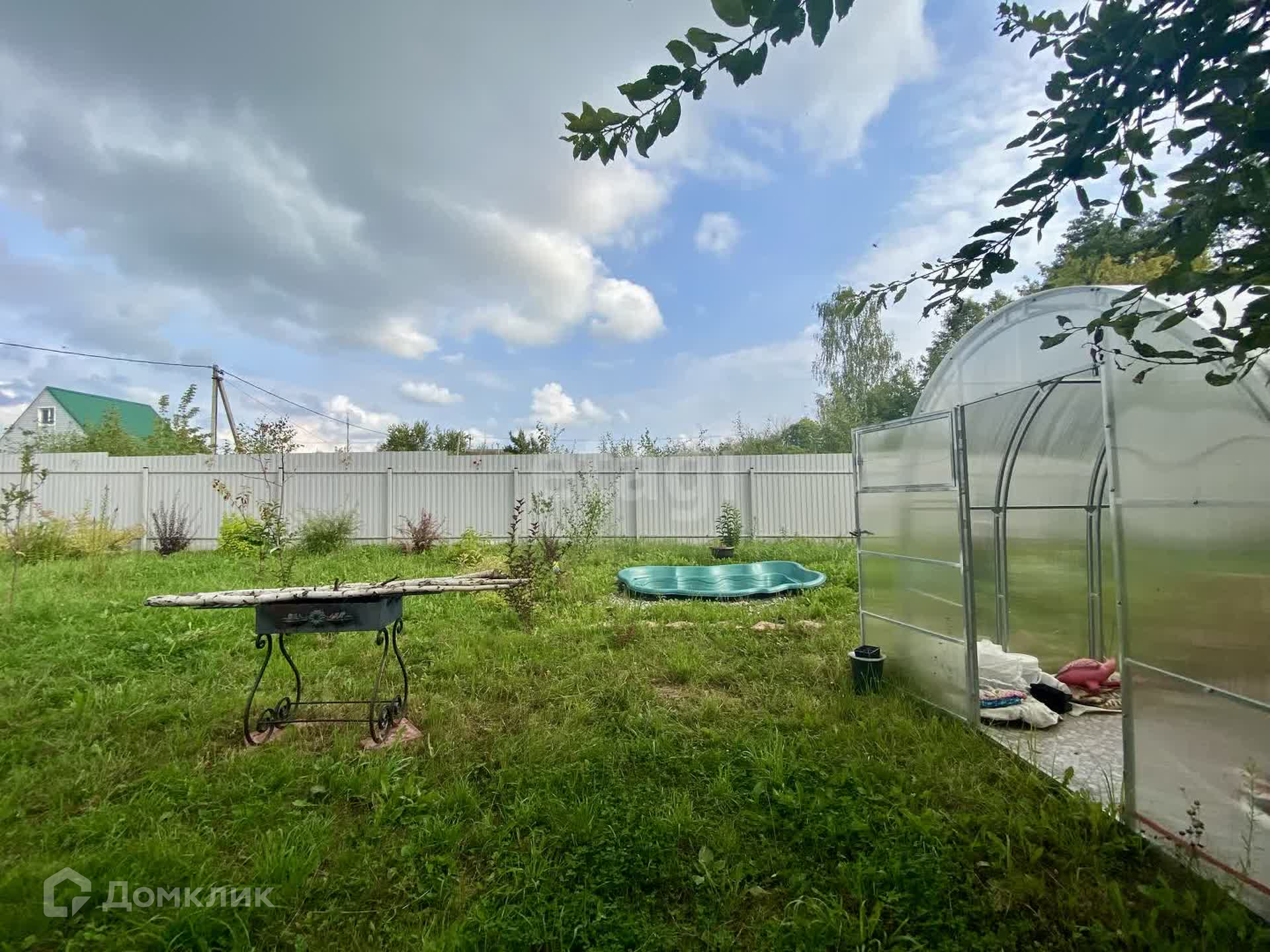 На территории находятся теплица с усиленным профилем и два уютных каркасных домика, отделанных вагонкой — идеальное место для отдыха на природе. Электричество подключено, так что вы сможете наслаждаться всеми современными удобствами.