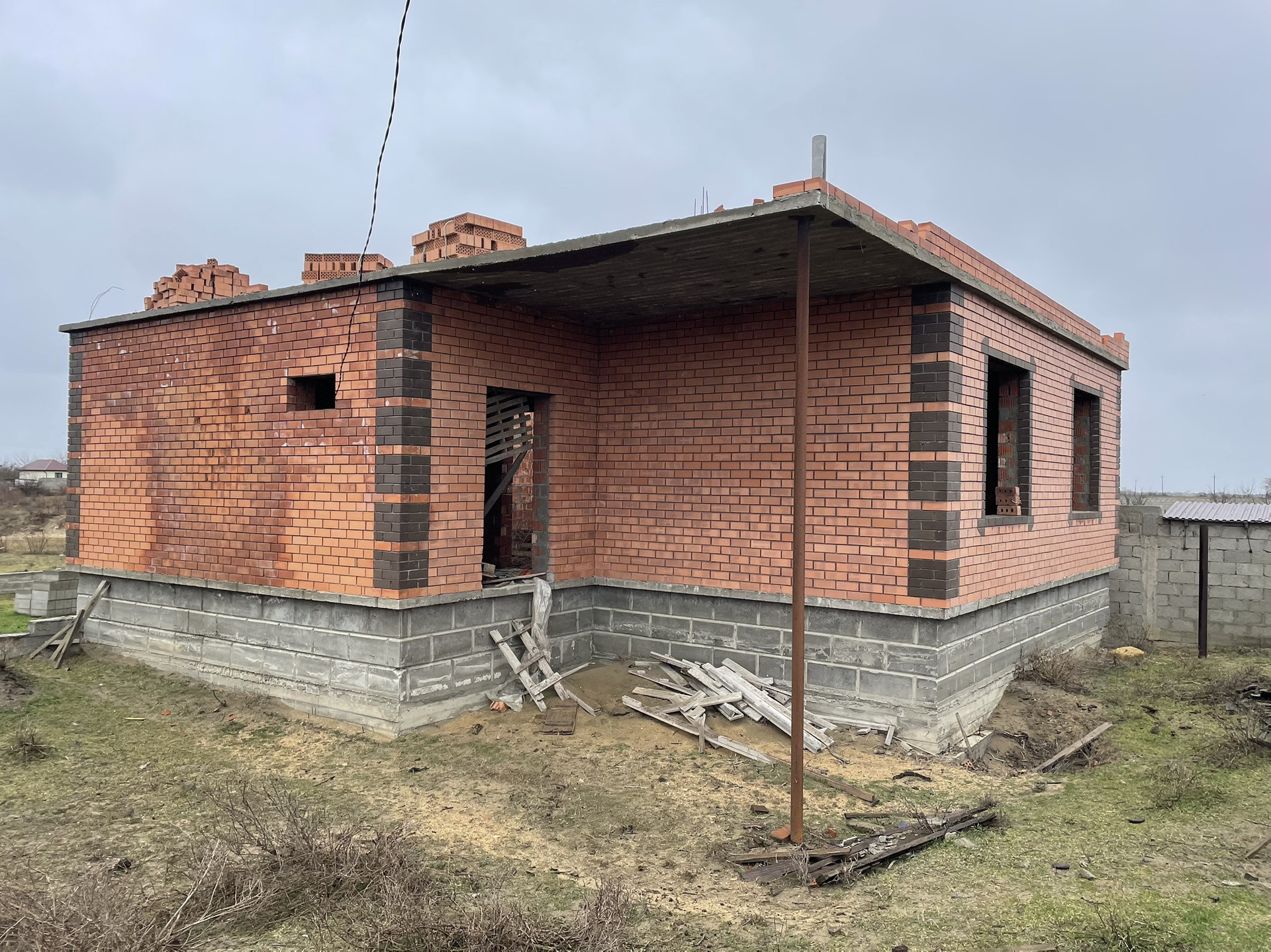 Продается в обществе Якорек (Сулак) частный дом недостроенный с землей 5 соток. Дом капитального строения высокий цоколь залит бетоном, первый этаж вкруг облицован красивым кирпичным камнем сделано качественно. Вокруг участок огорожен шлакоболочным забором. Можно второй сделать мансардный этаж, если как дачный использовать. На первом 3 комнаты и кухня. До реки Сулак 1