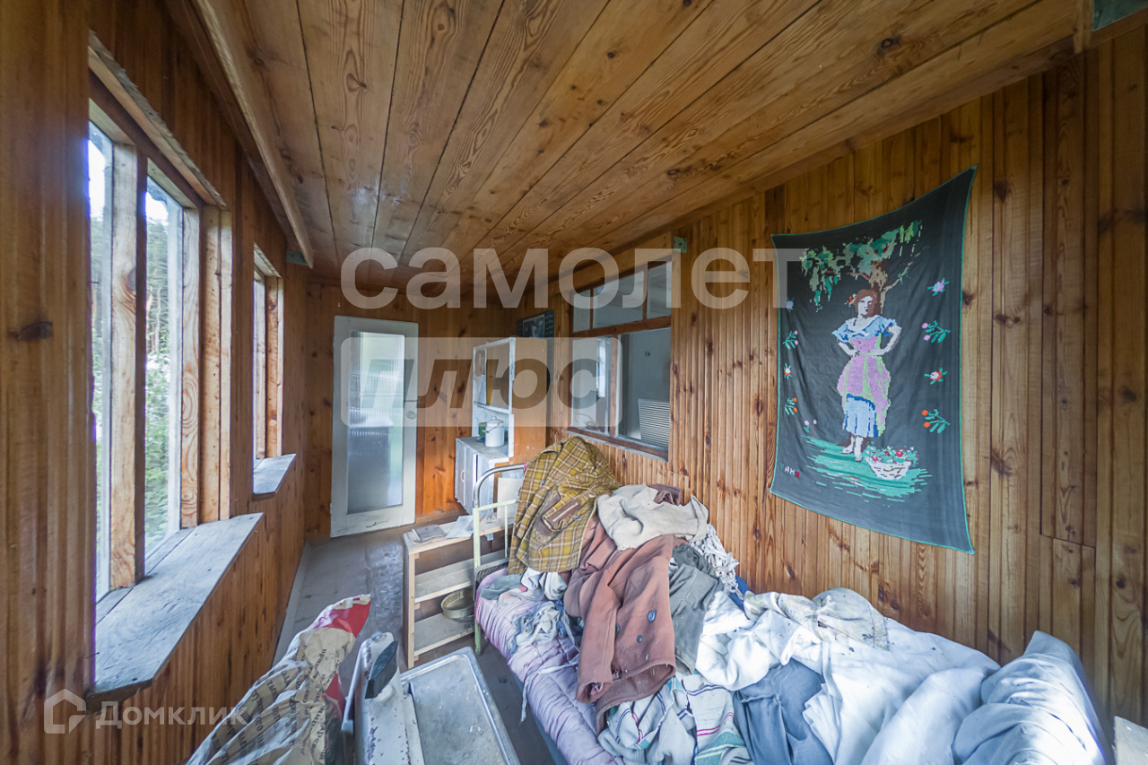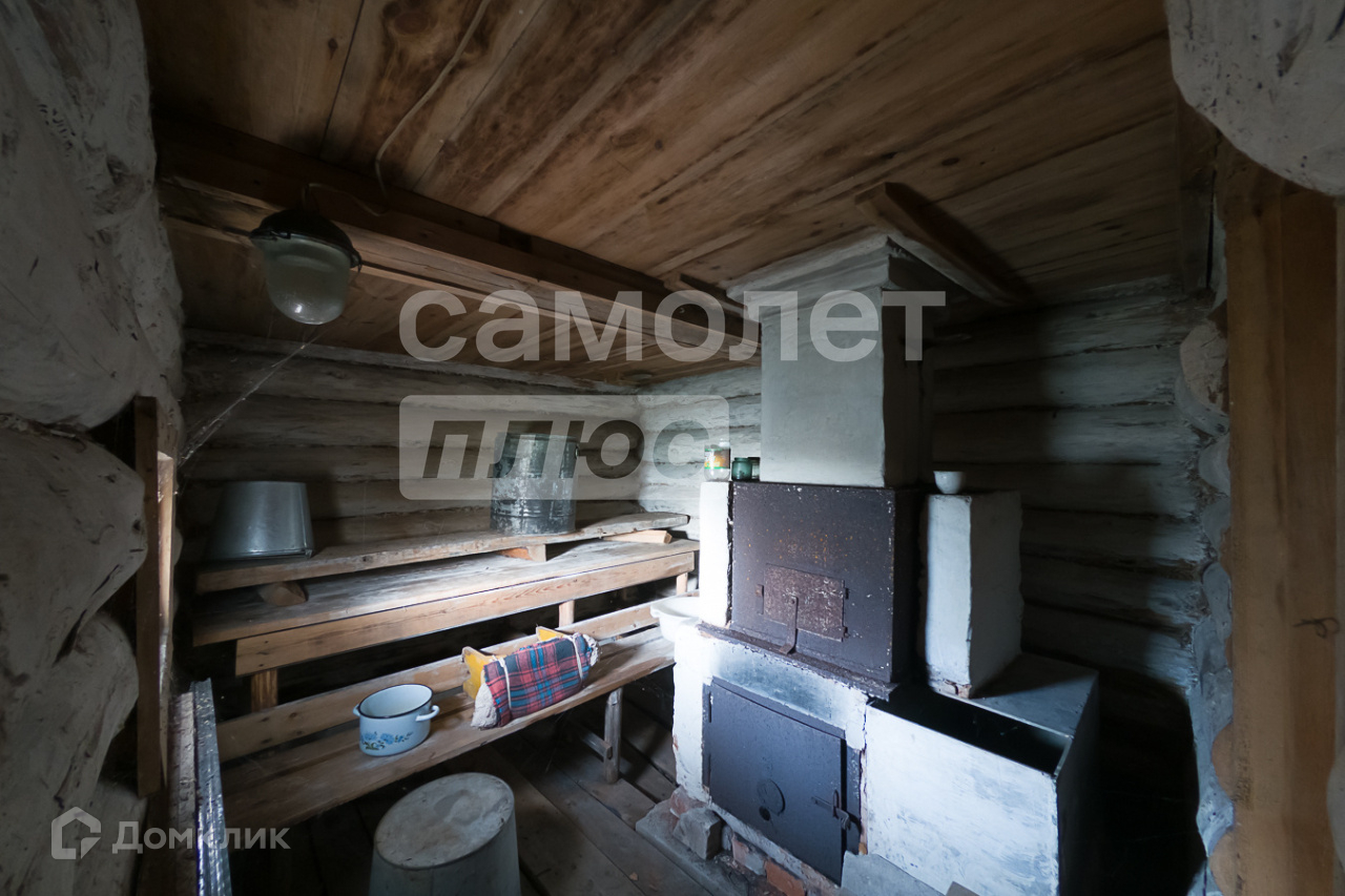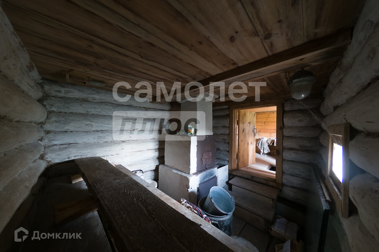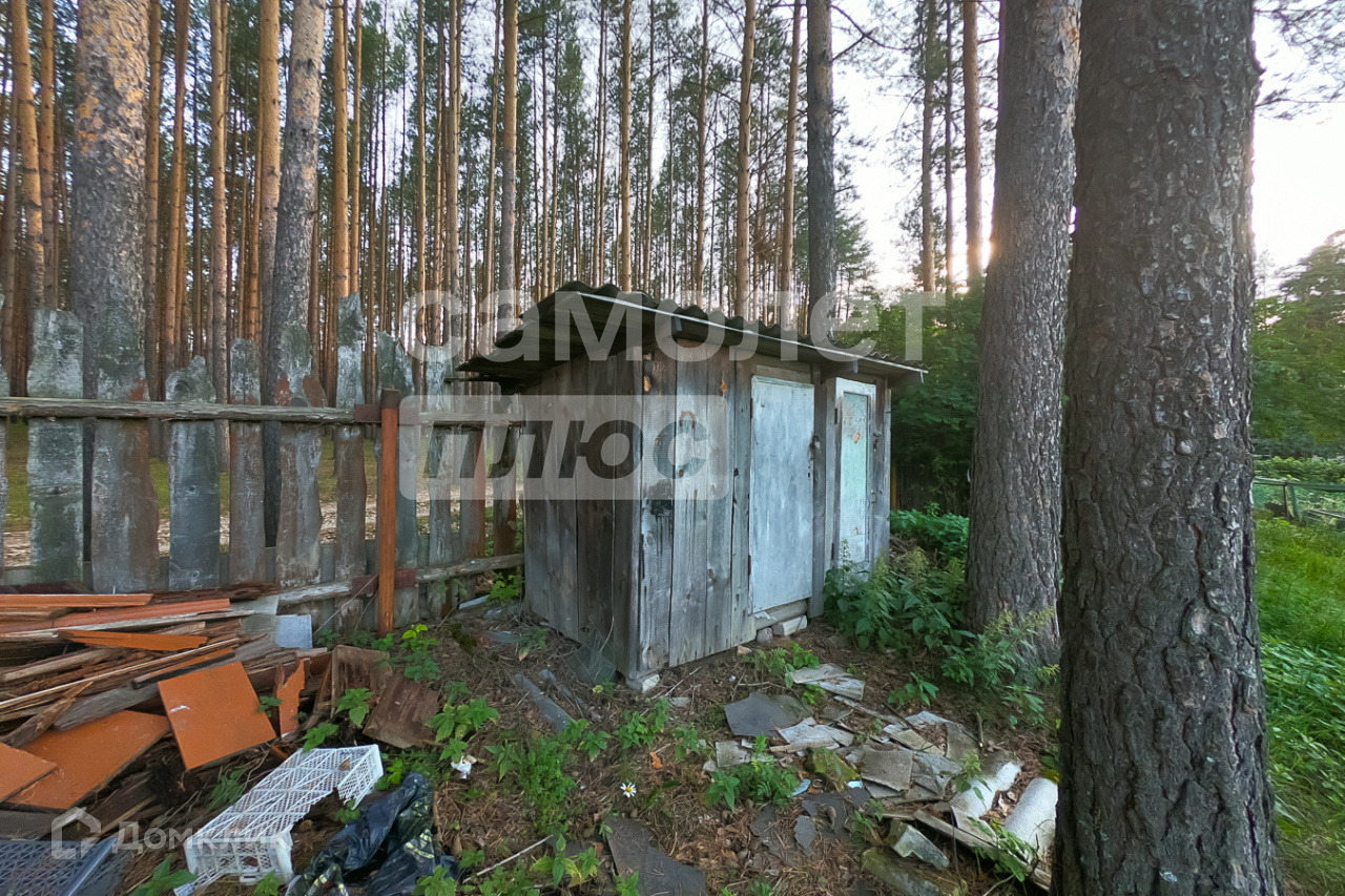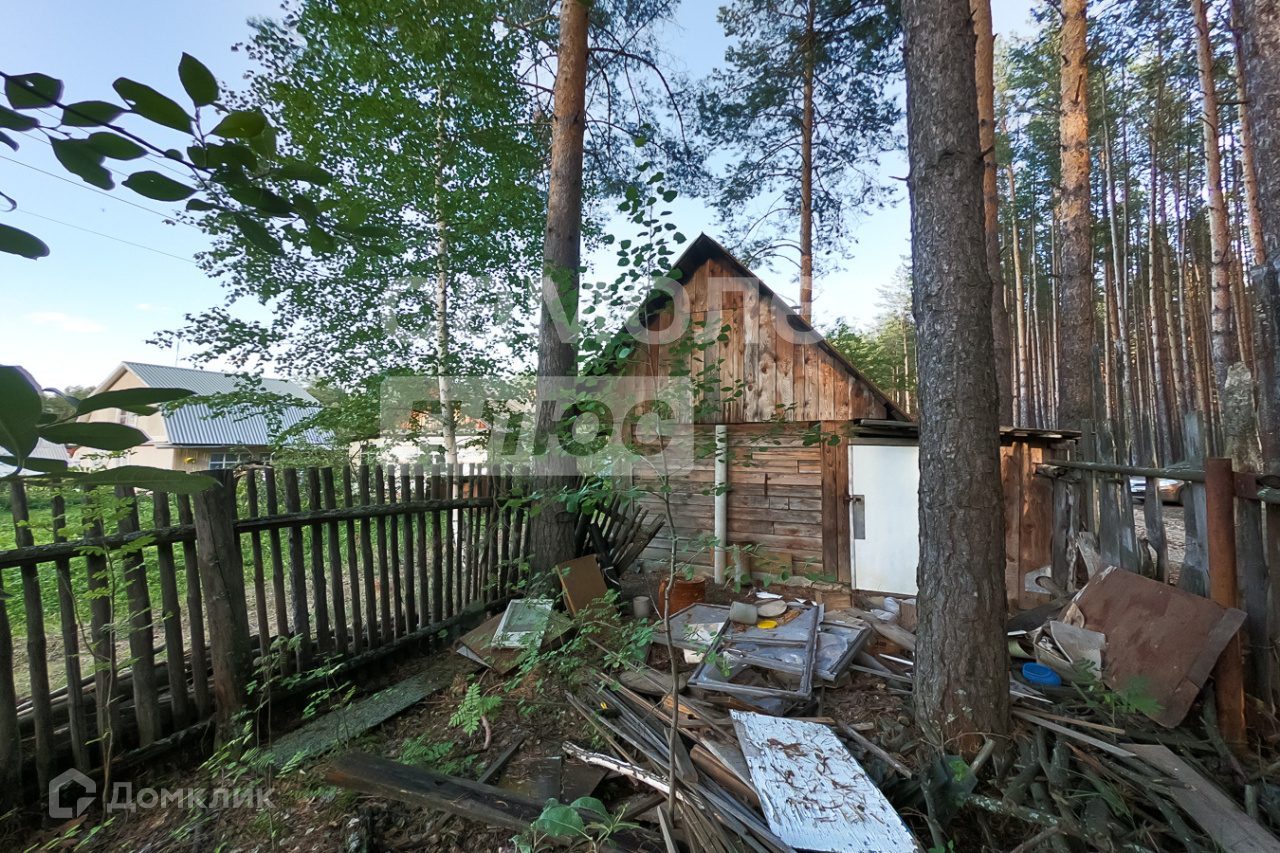 Участок 7 соток, прилегает к лесному массиву. На нем расположены: бревенчатая баня с летней комнатой,  строение для хоз. инвентаря и дров.