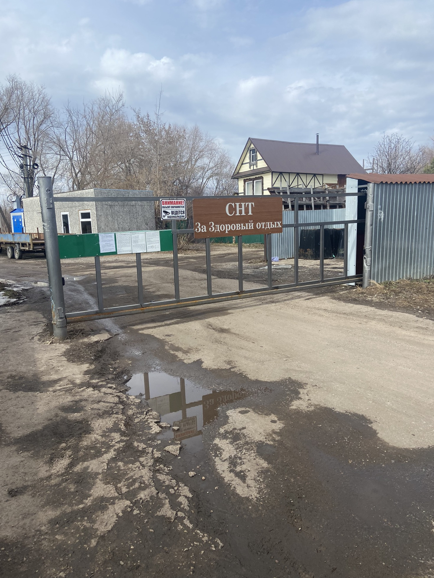 СНТ «За здоровый отдых», садовые участки имеют закрытую территорию под шлагбаумом. От города 10 минут езды, район Аэропорт.