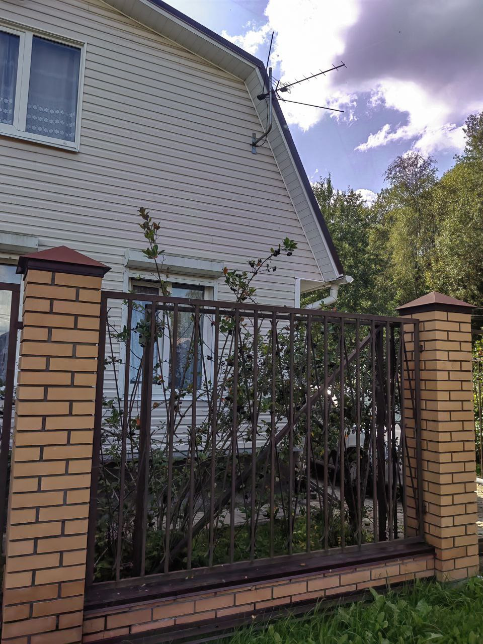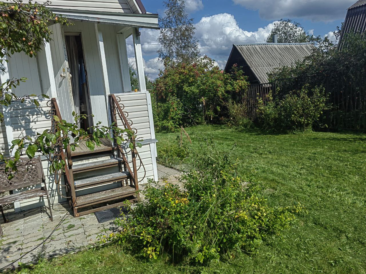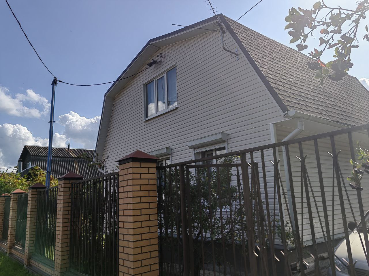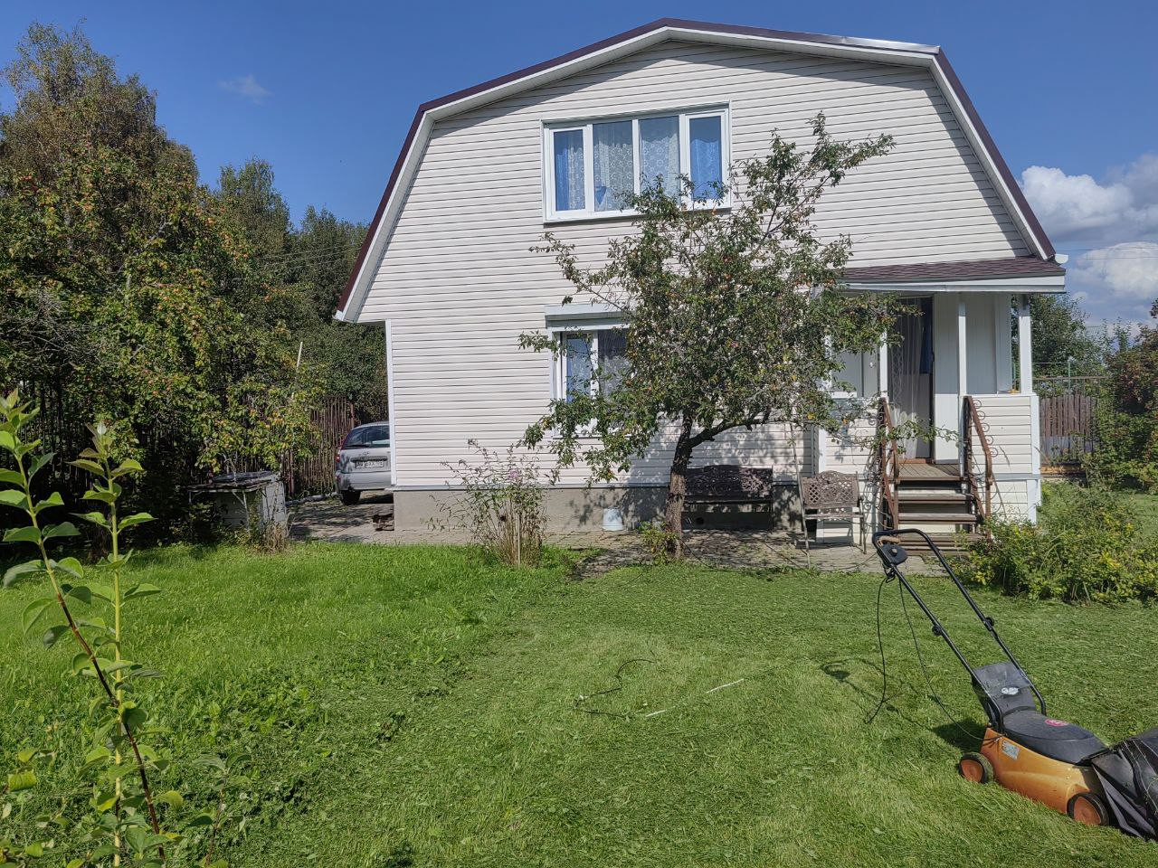 На участке построен 2-х этажный дом из бревна, снаружи обшит сайдингом. Электричество 15 кВт
