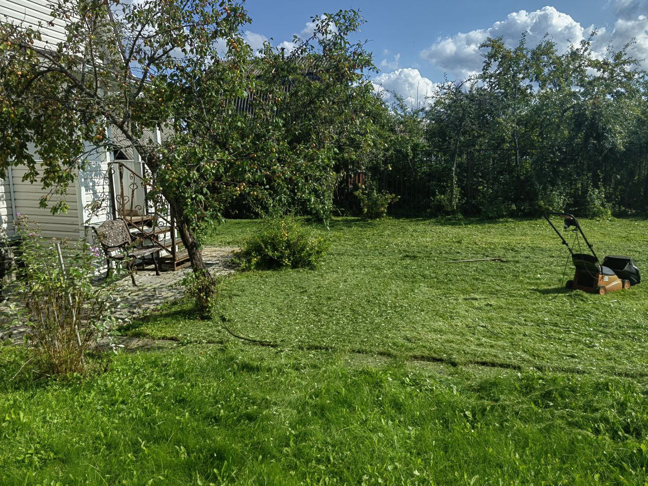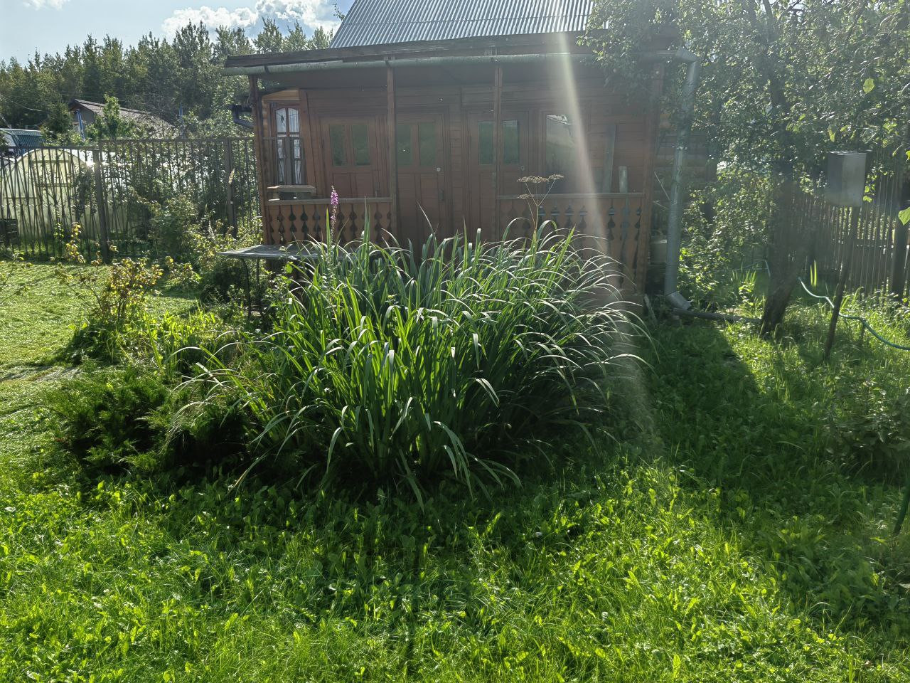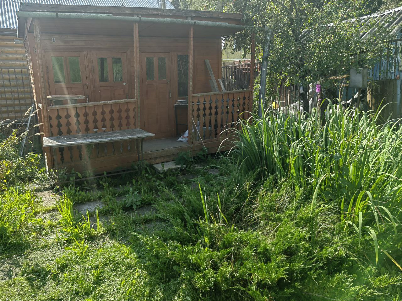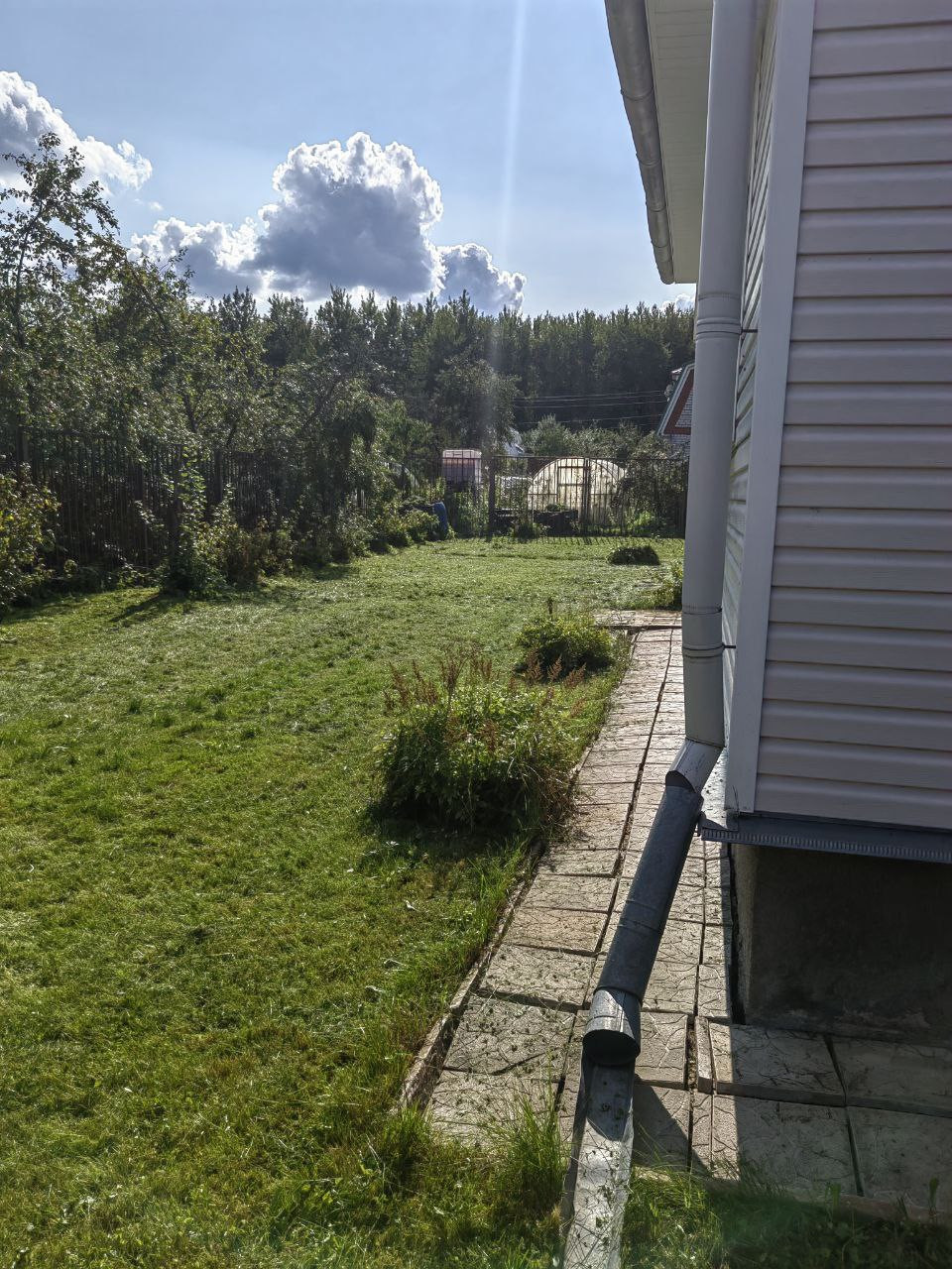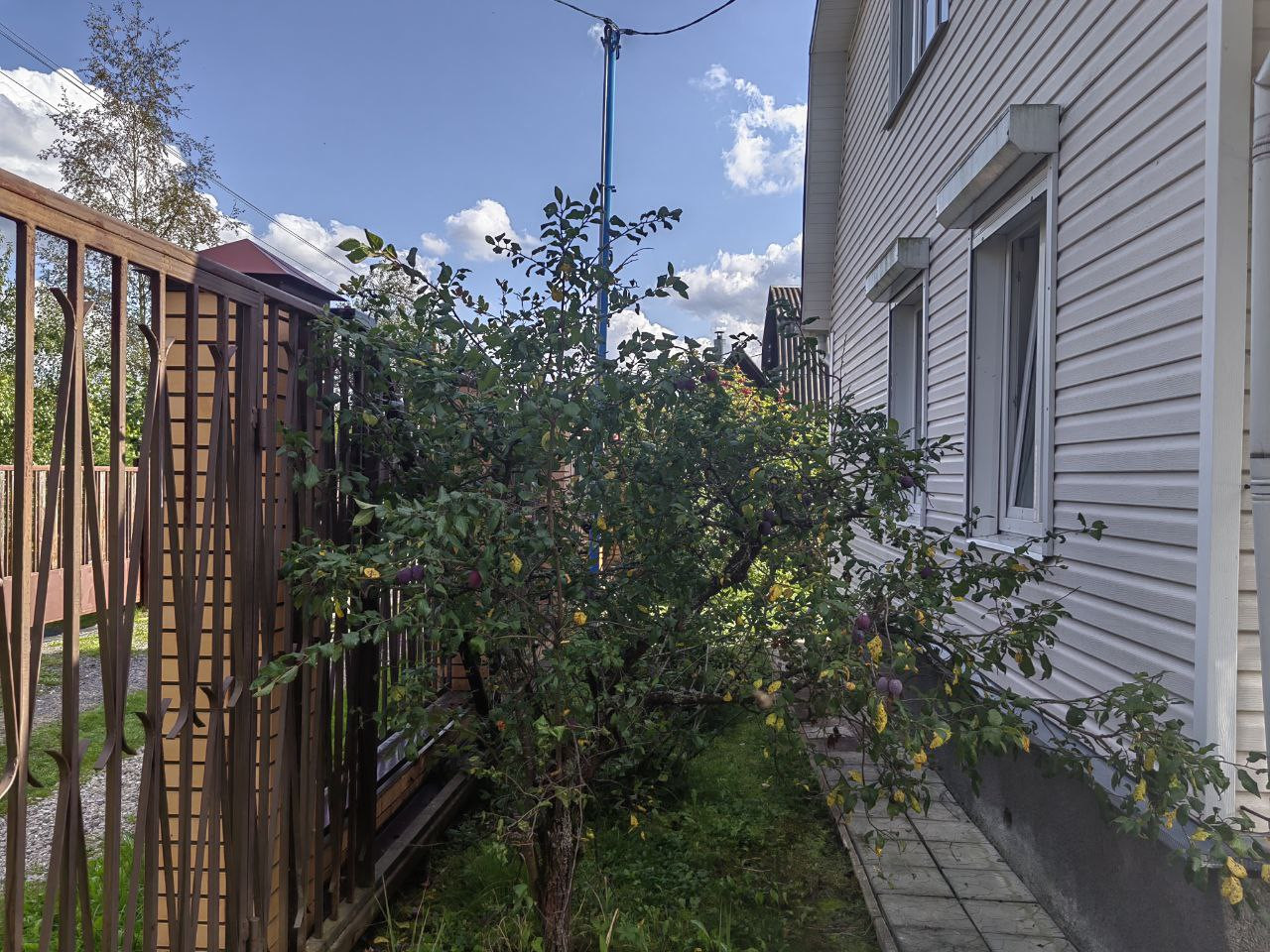 На участке построен 2-х этажный дом из бревна, снаружи обшит сайдингом. Электричество 15 кВт