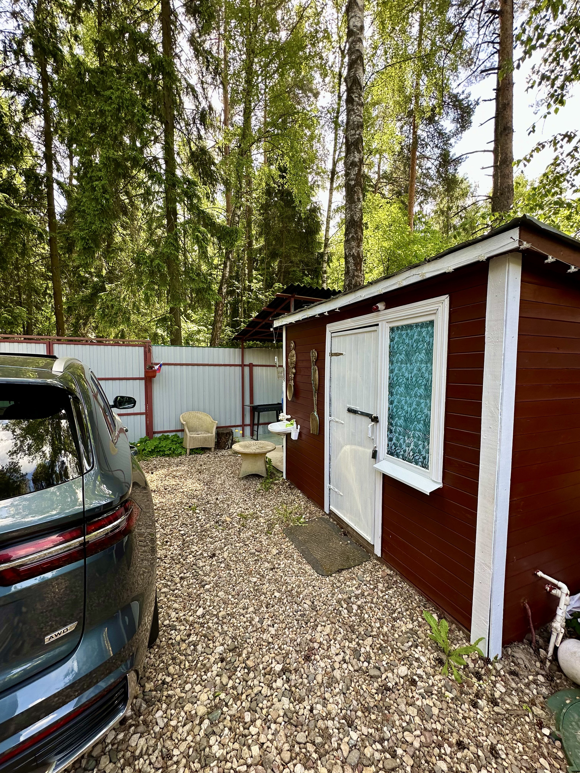 - парковочное место на территории участка для двух автомобилей с твердым покрытием и за забором дополнительно есть место на три машины;