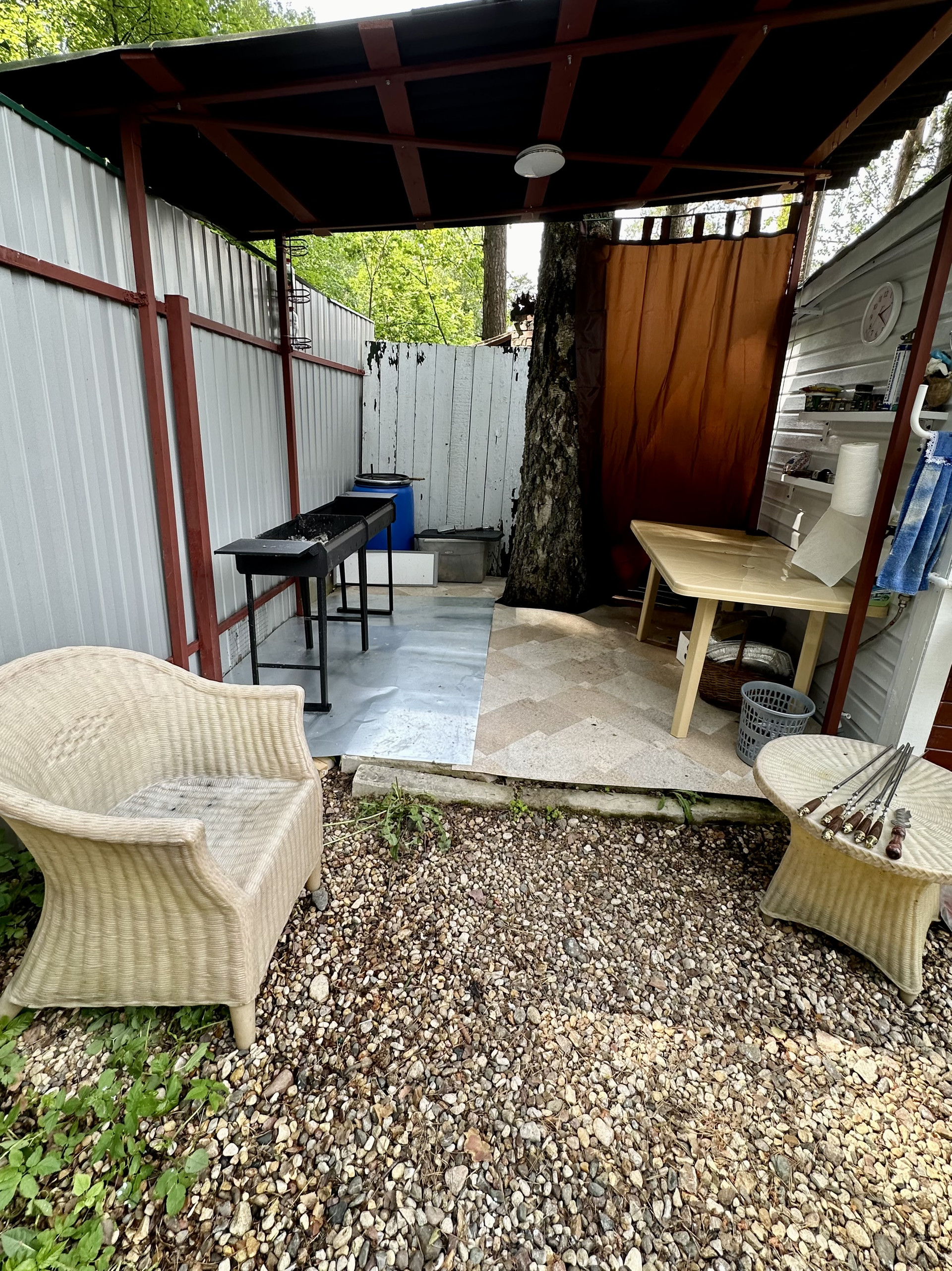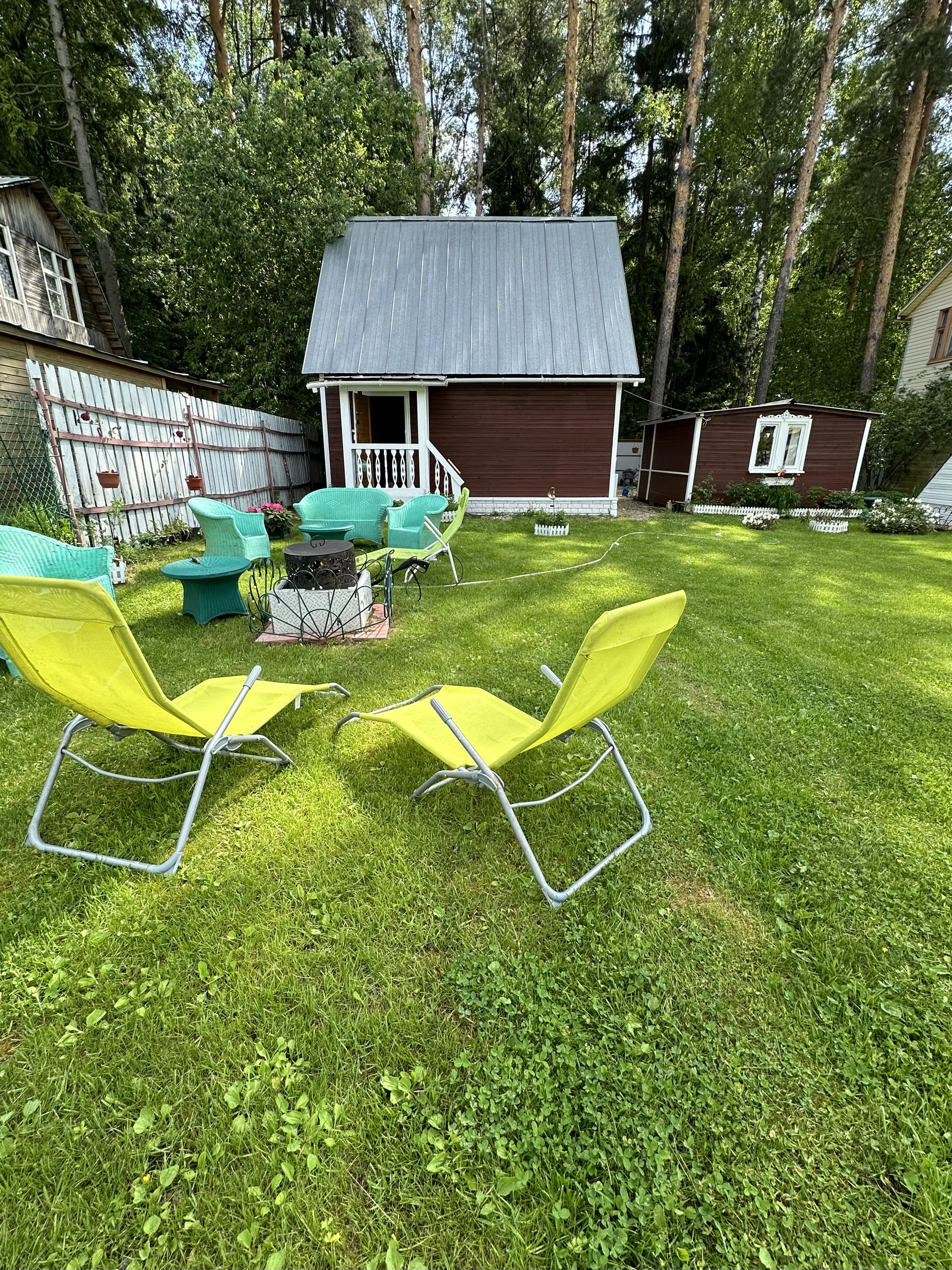 - оборудовано место для кострища с дачной мебелью в виде кресел и диванов, все остается;