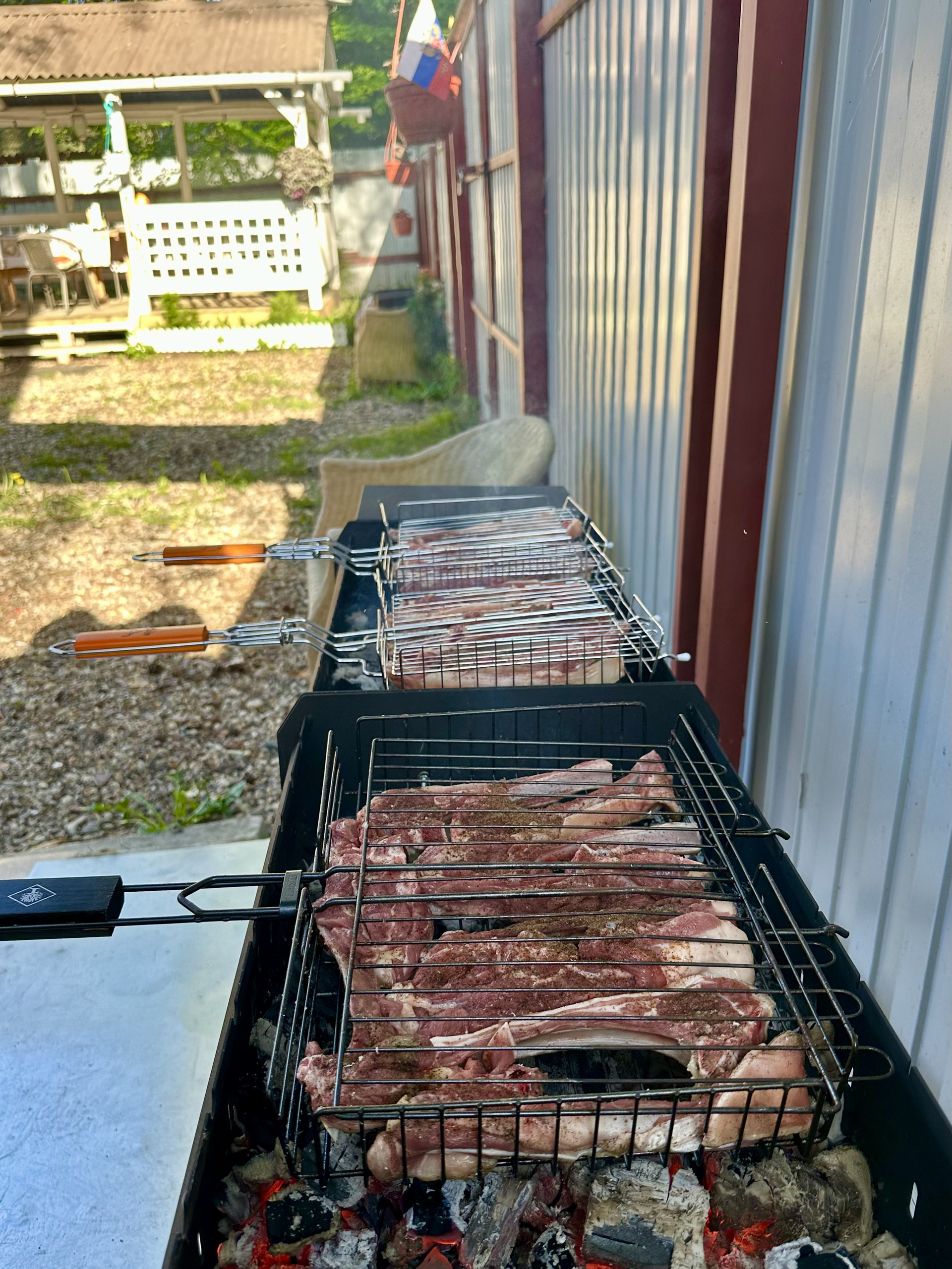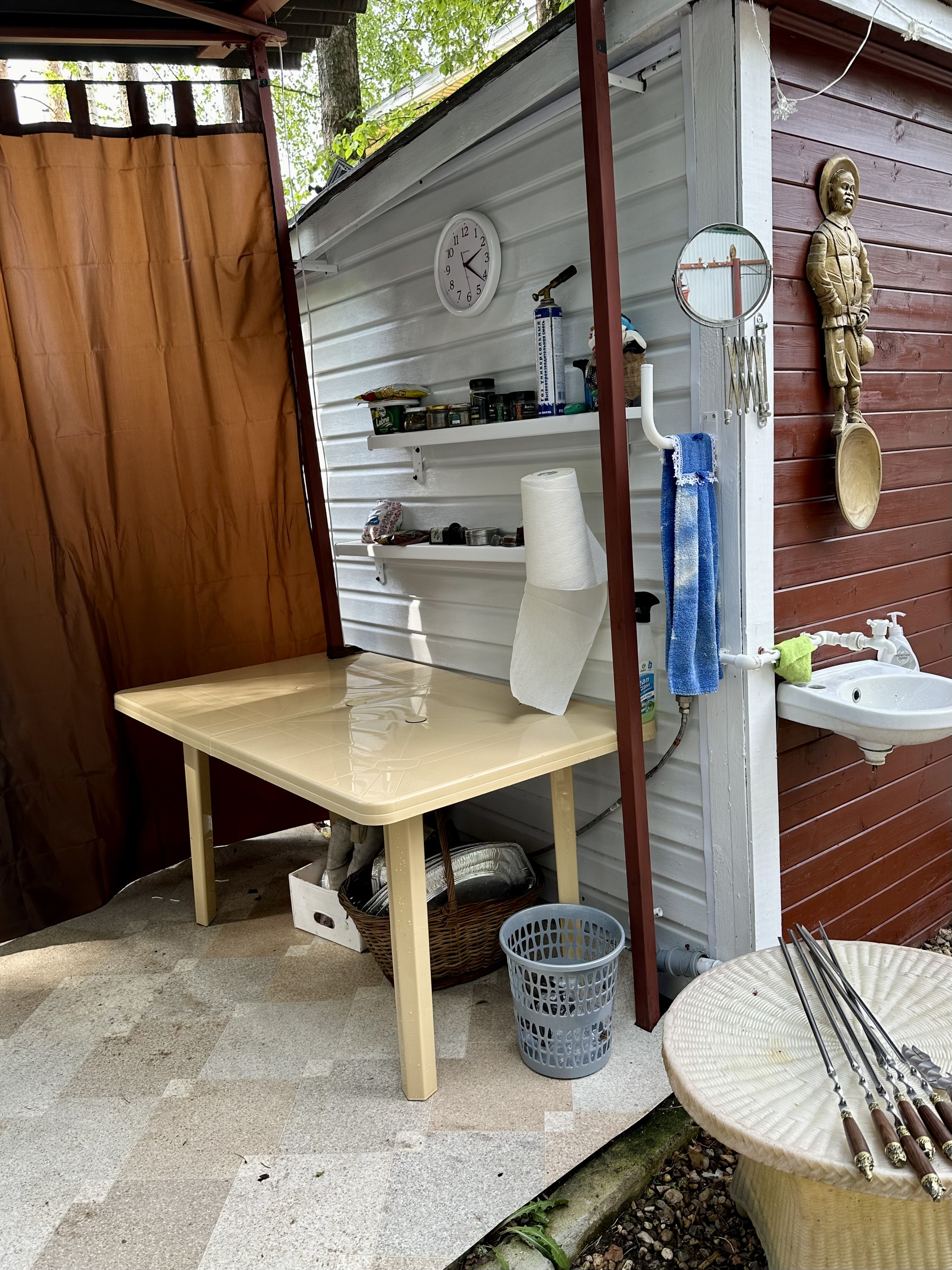 - место для приготовления пищи полностью оборудовано большим столом, мангалами и шампурами. Имеется новый казан на 22 литра с очагом;