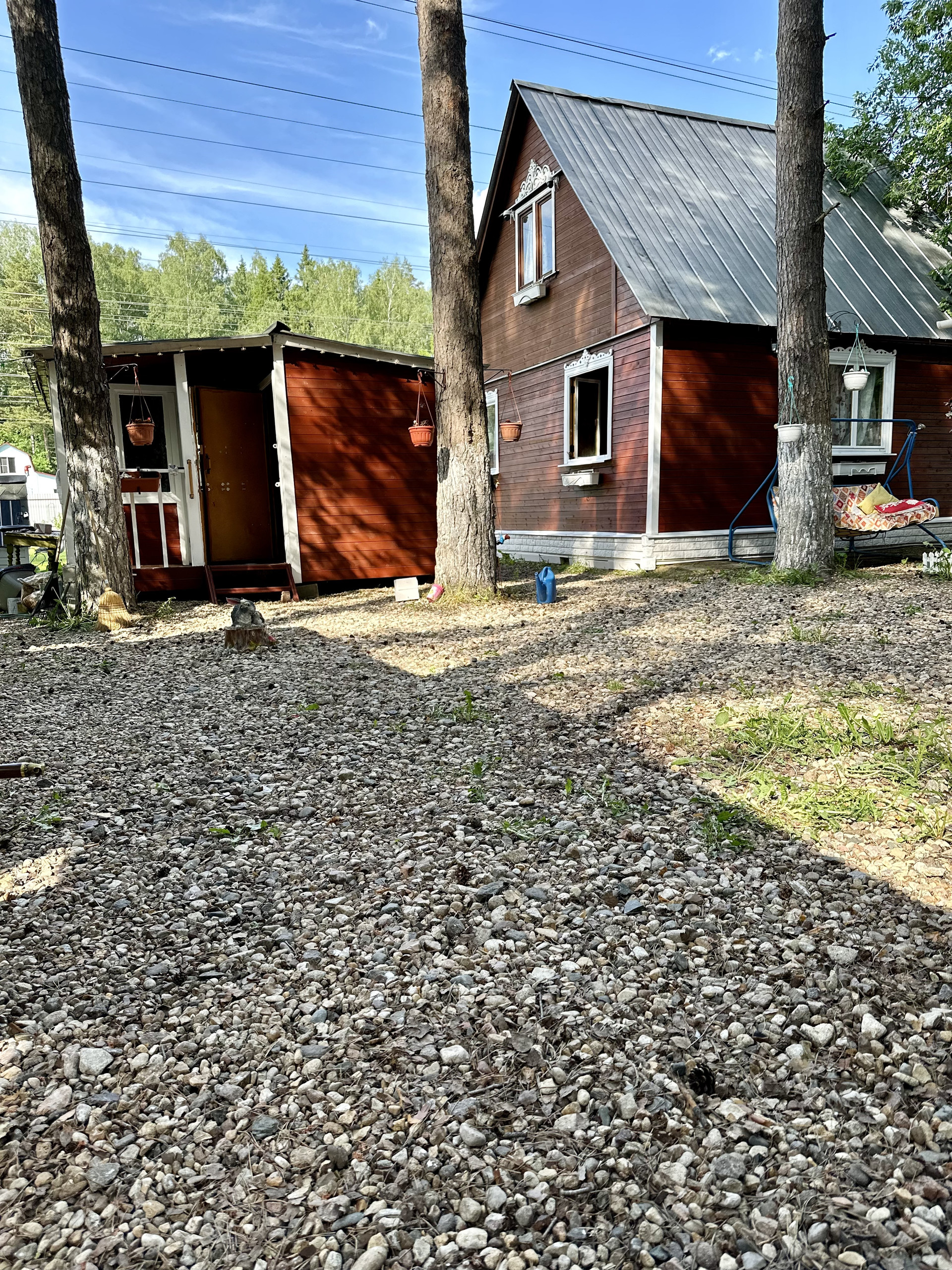 - хозблок с инструментом. Инструмент, газонокосилка электрическая и аккумуляторная, лестницы, все остается;