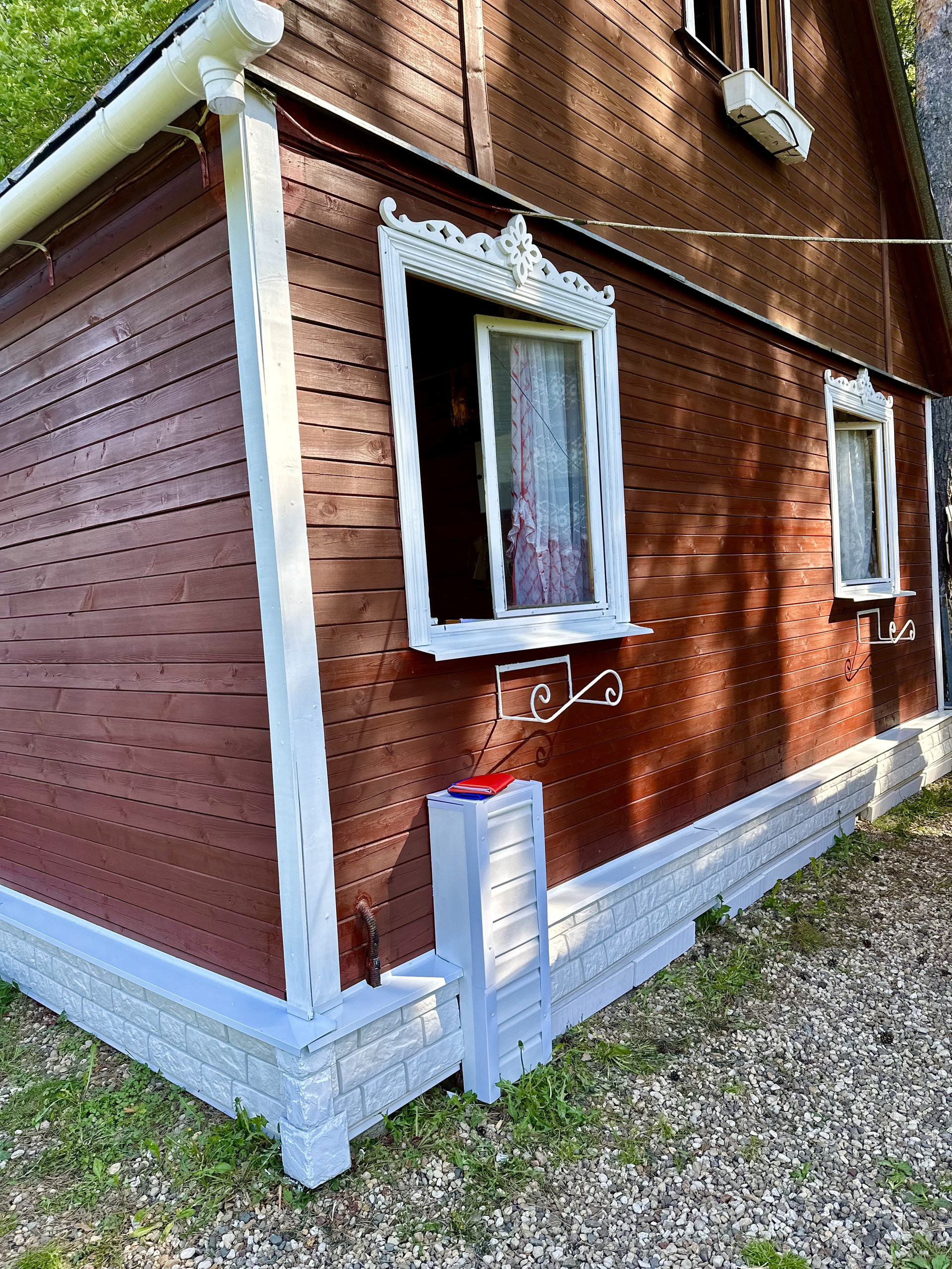 - дом с жилой мансардой. Три комнаты на 7 спальных мест и кухня. Вода заведена в дом с выходом в канализацию. Вся мебель, техника, холодильник и телевизор остаются, включая посуду. В этом году дом и все постройки были обработаны специальным средством для покрытия домов. Обработка всех построек спец средствами осуществлялась каждые 5 лет;