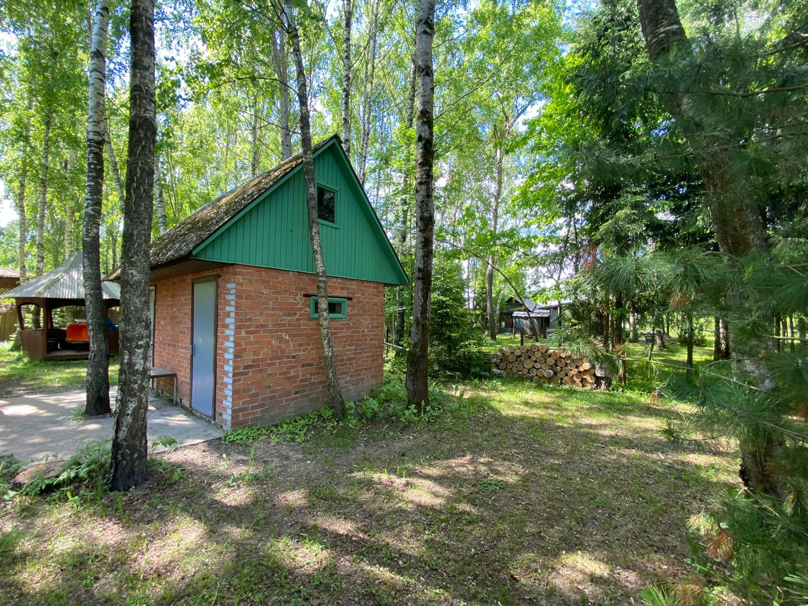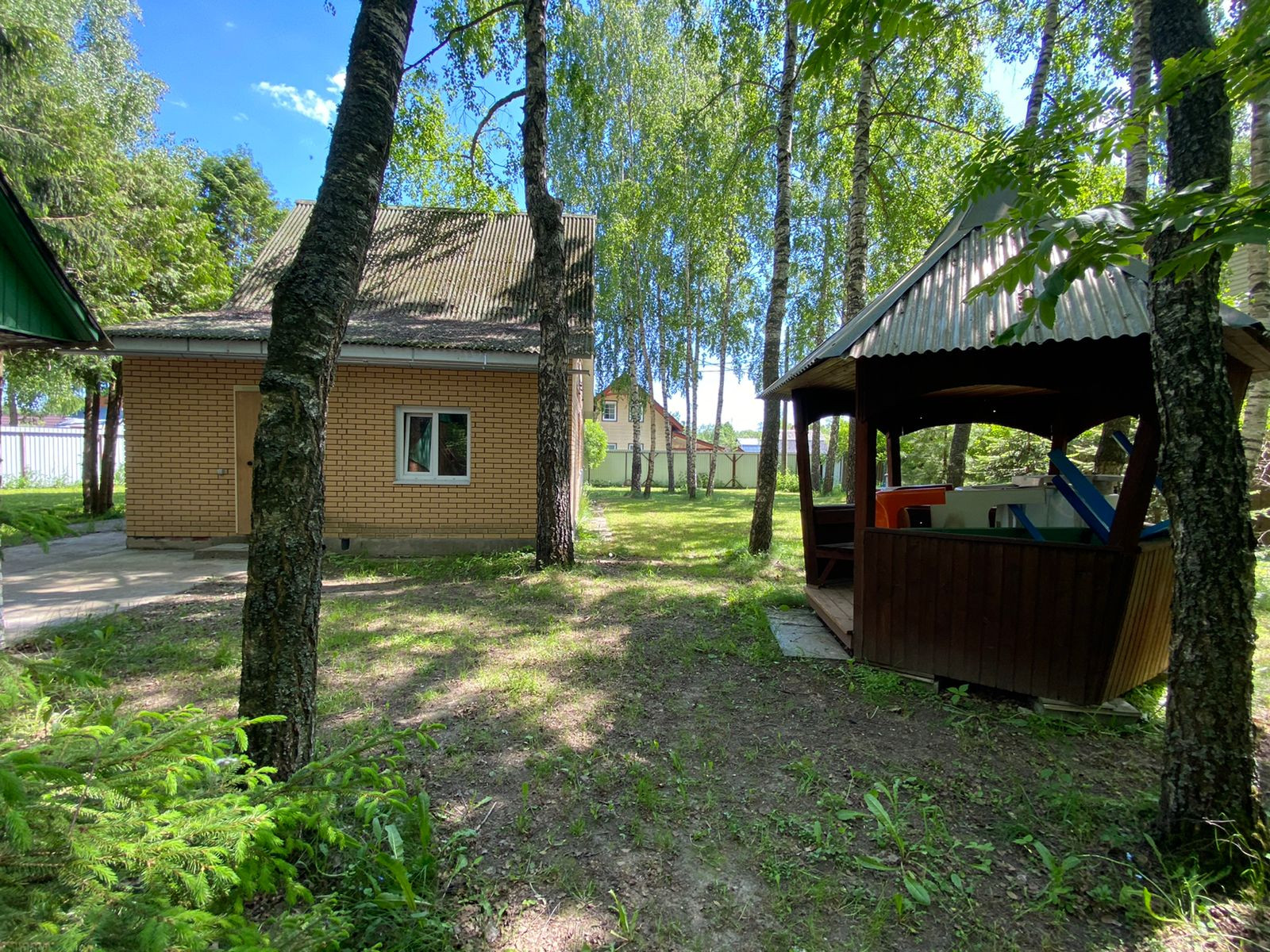 На территории есть строение можно переоборудовать под баню (из кирпича). На территории есть парковочное место на две машины, беседка для отдыха.