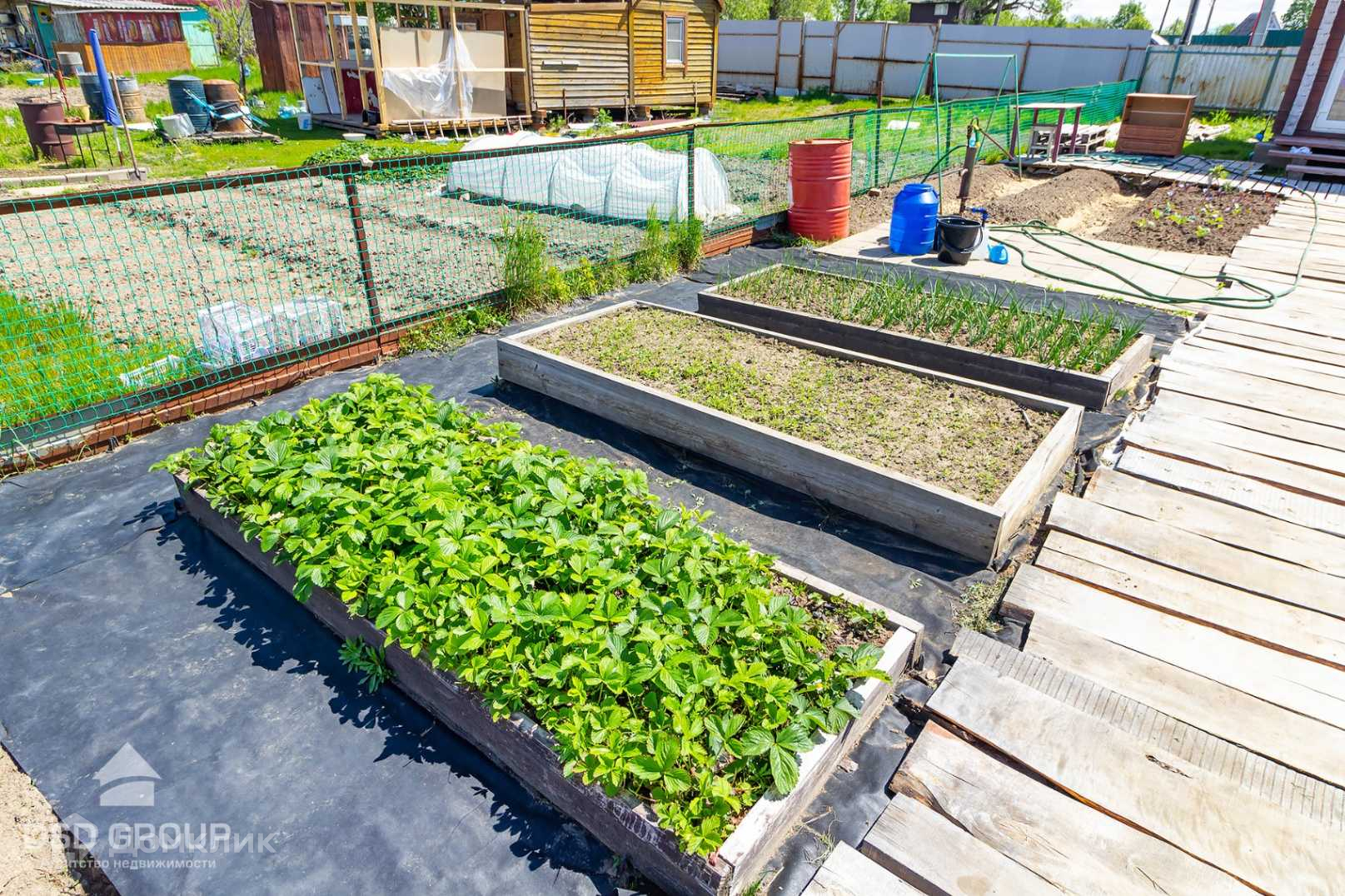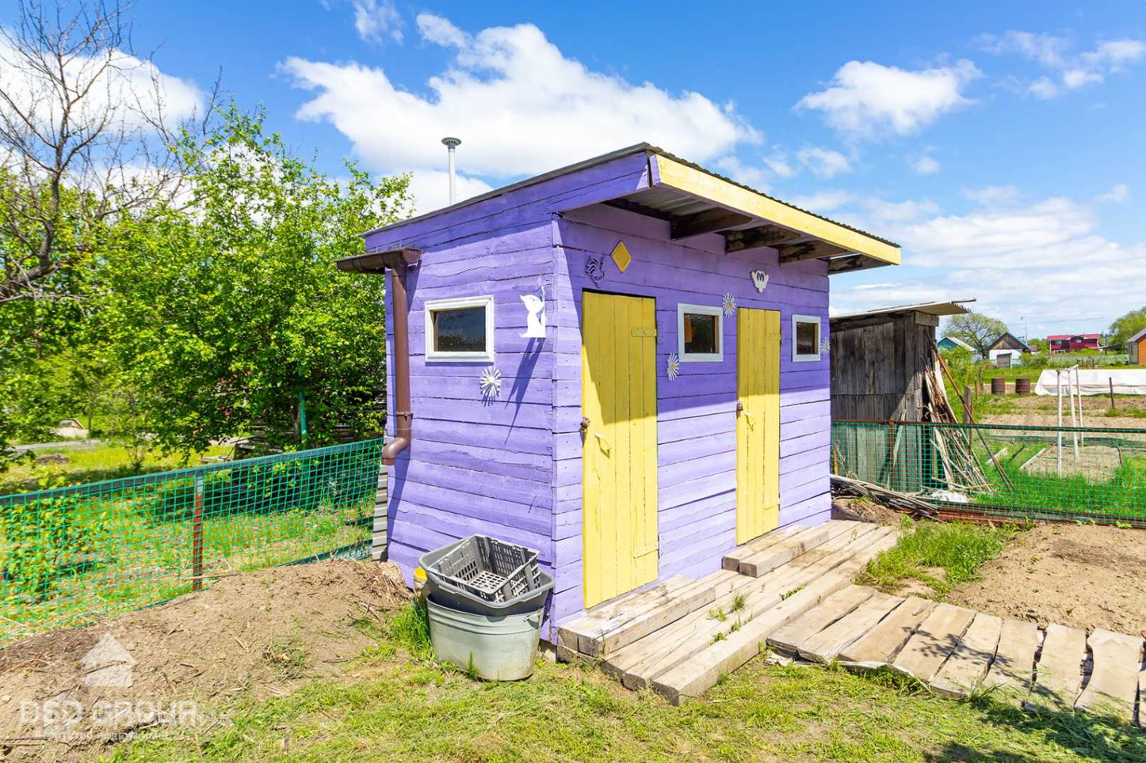 На участке есть колонка с питьевой водой и насосом для полива, теплица 3*6 из поликарбоната, сарай для инвентаря, летний душ, мангальная зона, парковка для автомобиля.