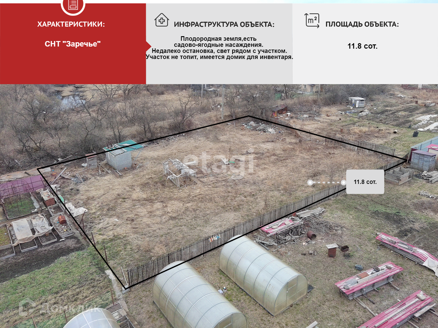 Площадь участка 11.8 сот.