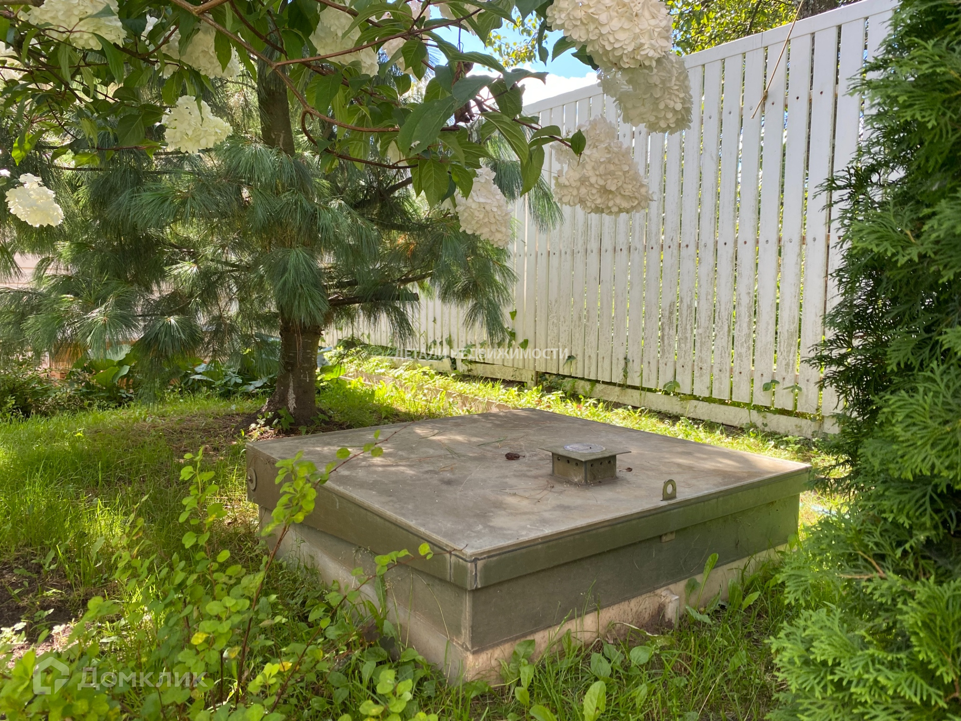 На участке: Плодоносящие деревья и кустарники. Груша, яблоня, слива, черная и красная смородина, крыжовник, многолетние цветы и клубника, ухоженный огород.