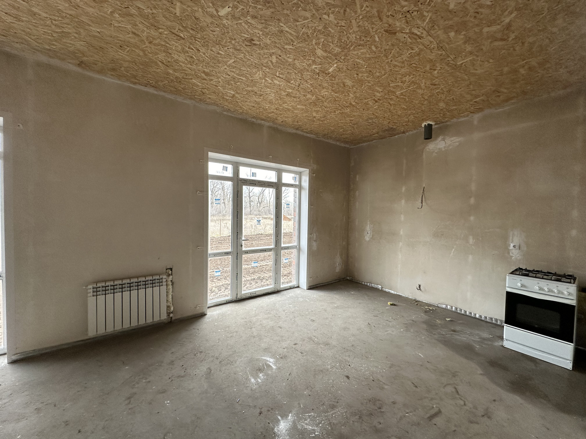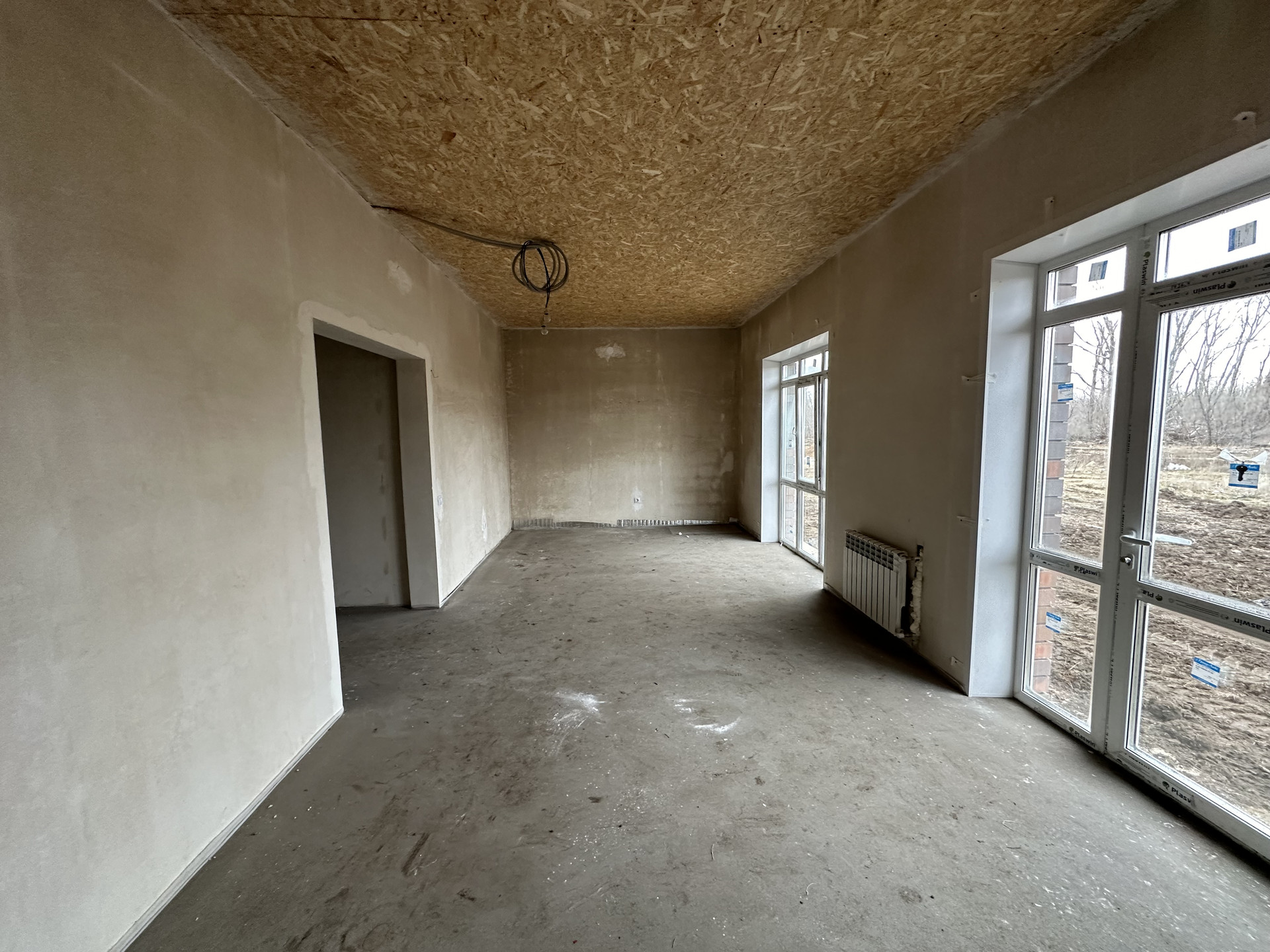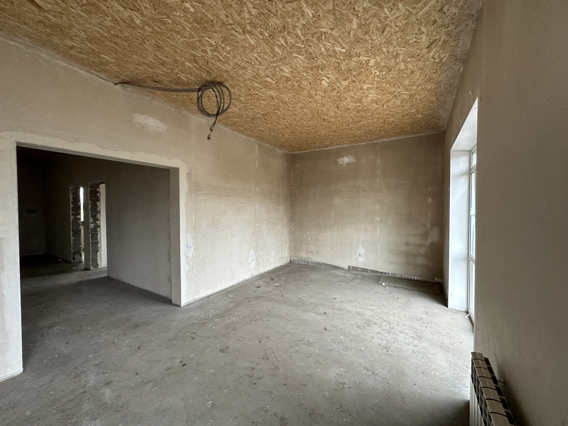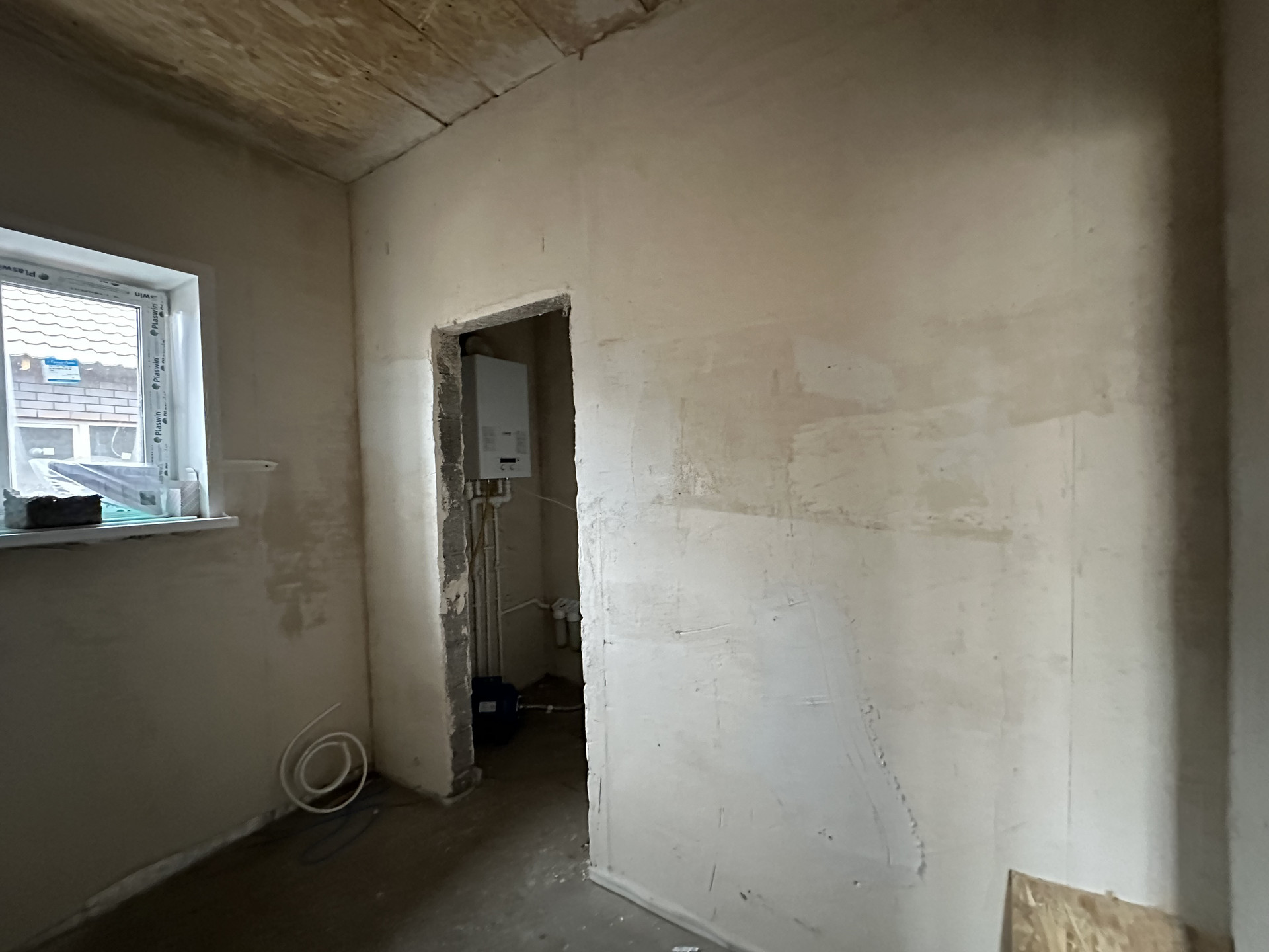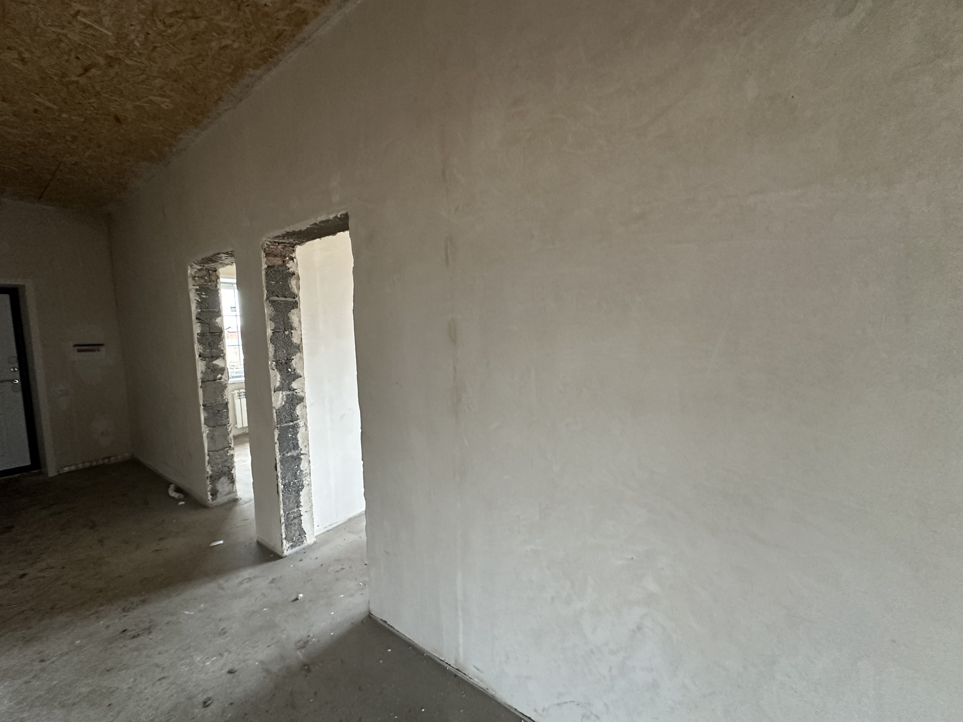 - Стены отштукатурены под обои, потолки подшиты узби