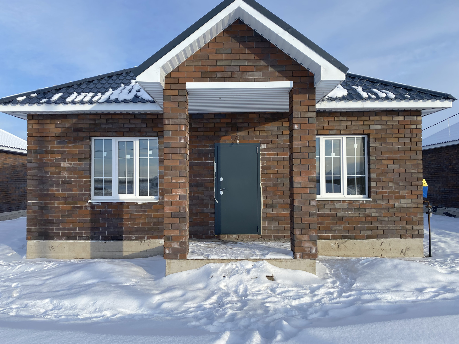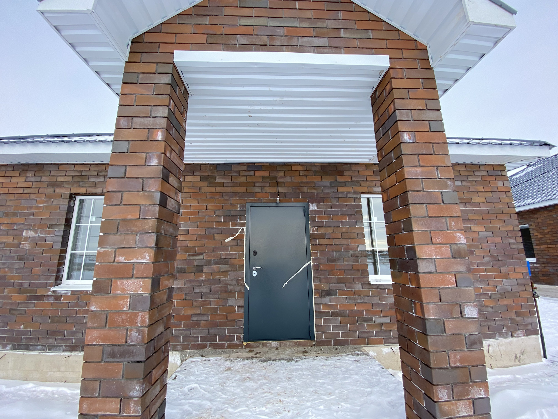 Залита отмостка, дорожка до калитки. В стоимость дома входит оборудованное крыльцо+навес.