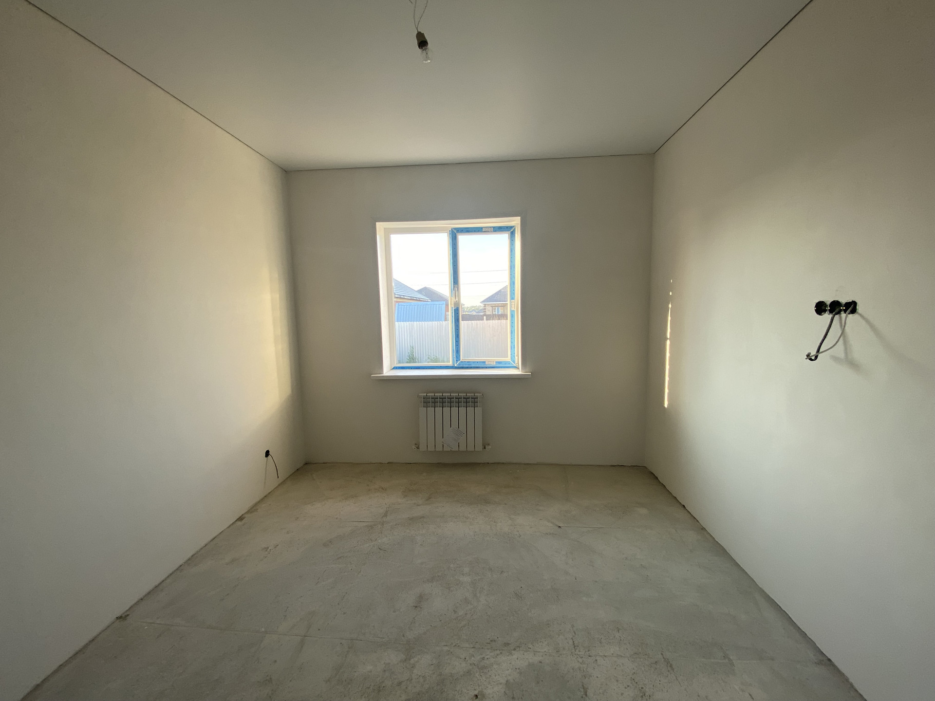 Стены отштукатурены и отшпаклеваны под обои,машинная стяжка пола ,пол теплый по всему дому, радиаторы в каждой комнате, плотолок подшит, электрика проведена, двухконтарный котел ,дорогая входная дверь.