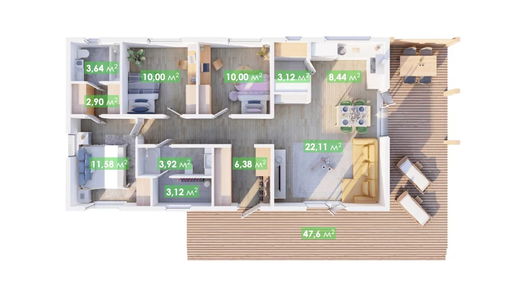 Площадь террасы: 47,6 m²