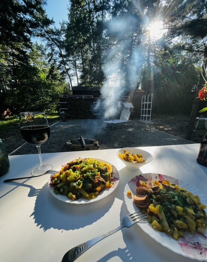 Здесь созданы все условия для отдыха: зона для дружеских посиделок, места для загара и бассейн. Кроме того, на участке есть кедровая баня с фоновой подсветкой ,новой печью и баком, которая дополняет атмосферу уюта.