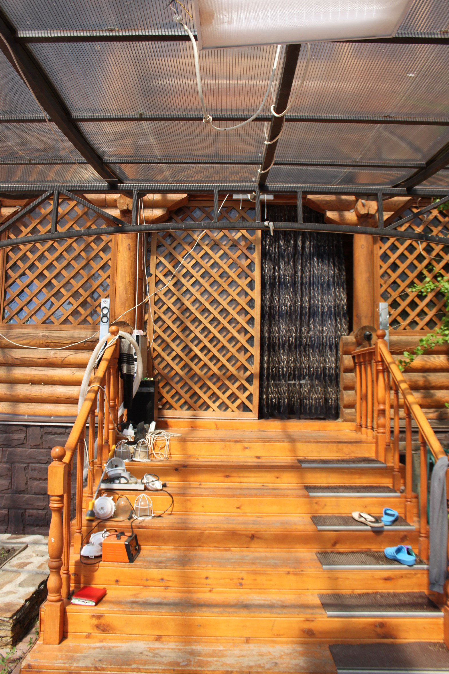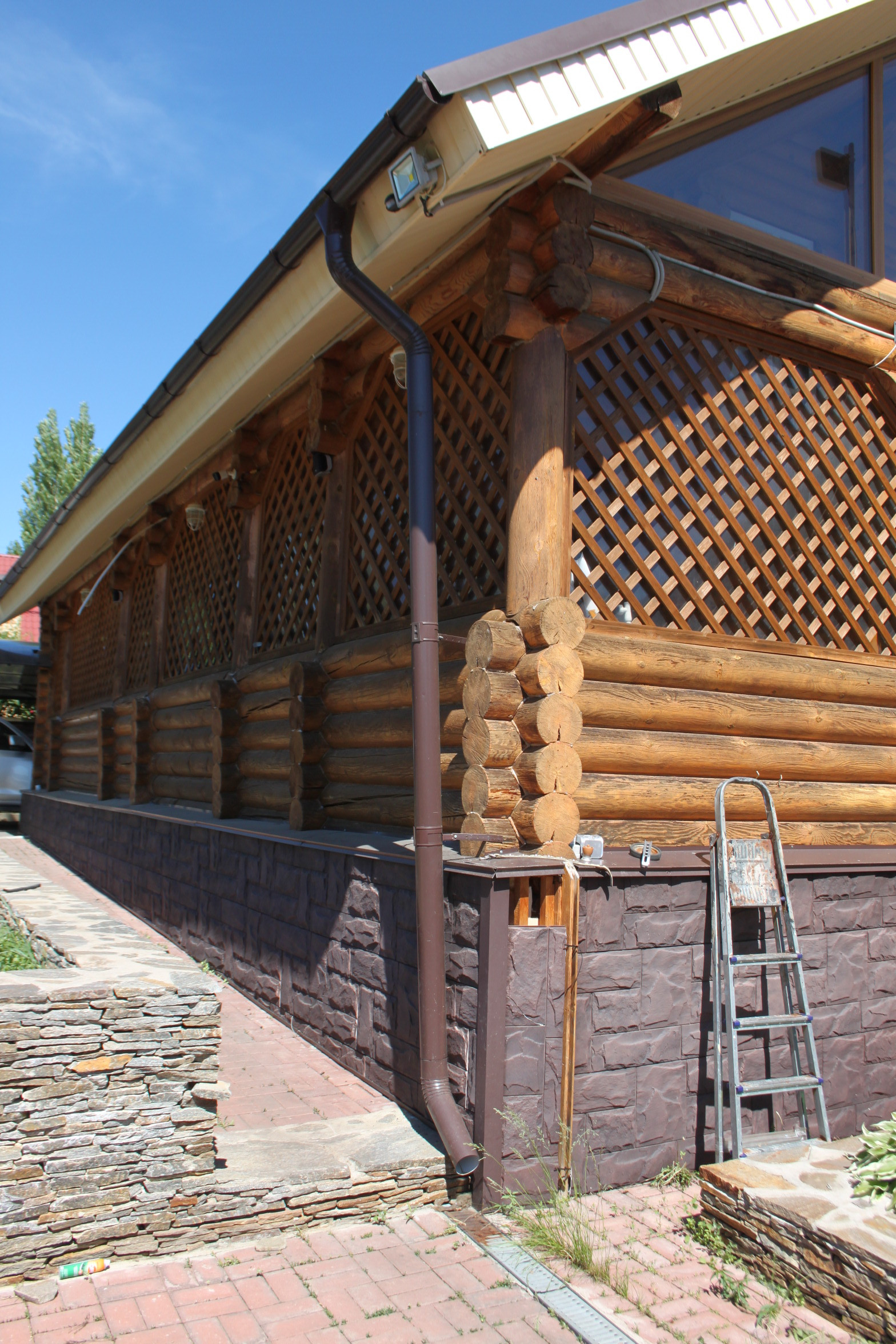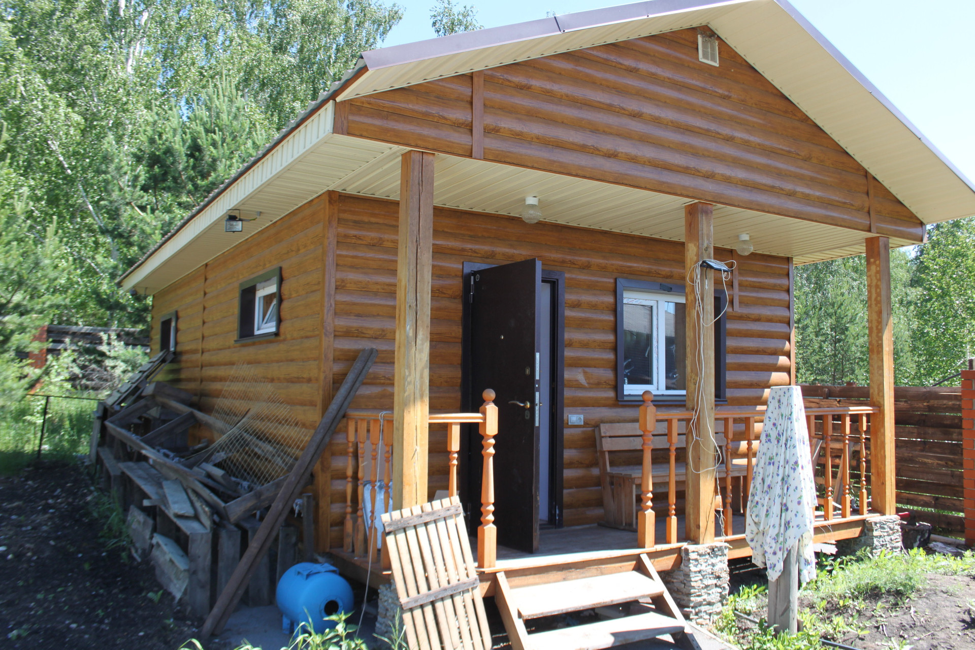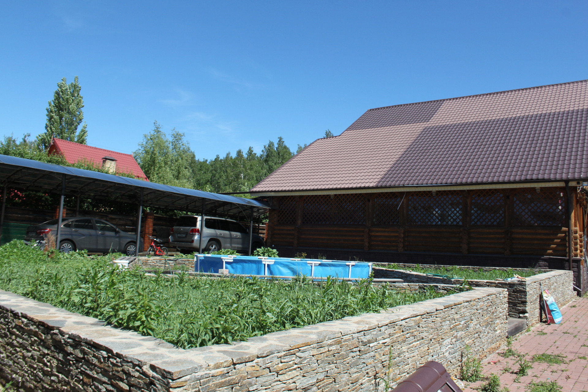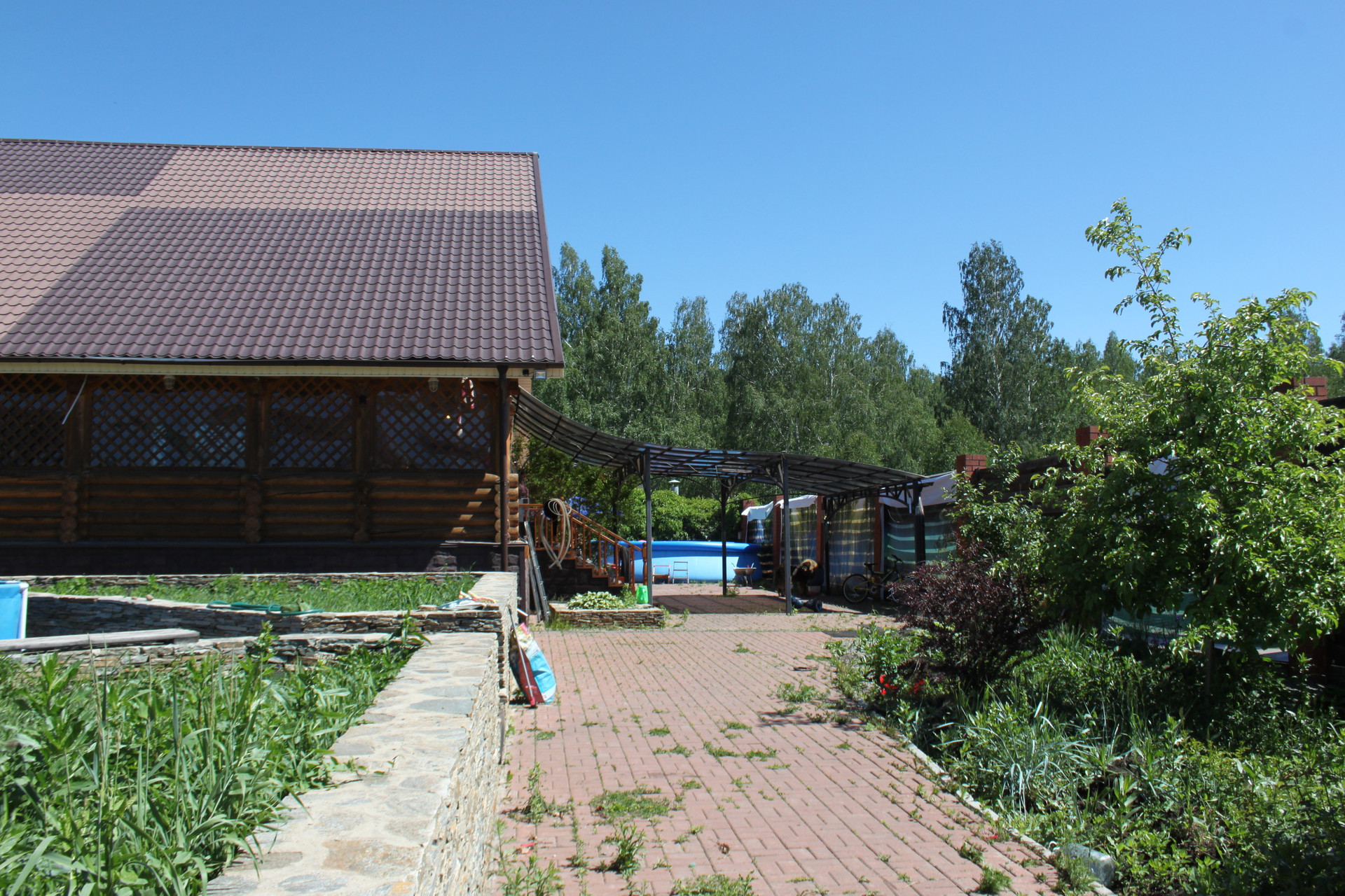 На территории участка расположена баня, площадью 30 м2, с комнатой отдыха, душевой , бочкой ФУРАКО. Баня выполнена из шлакоблока, внутри облицована евровагонкой, снаружи облицована фальшбрусом и идет в одной композиции с домом. Подготовлено место для бассейна. Рядом расположена беседка площадью 40 м2,в которой расположен тандыр.