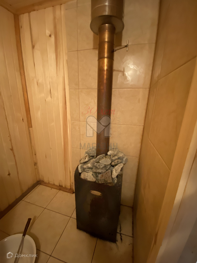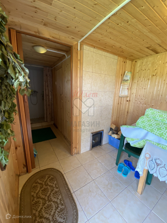 На участке баня, с просторной парилкой и комнатой отдыха. Оборудована душевая. Под крышей находится бойлер для душевой.
