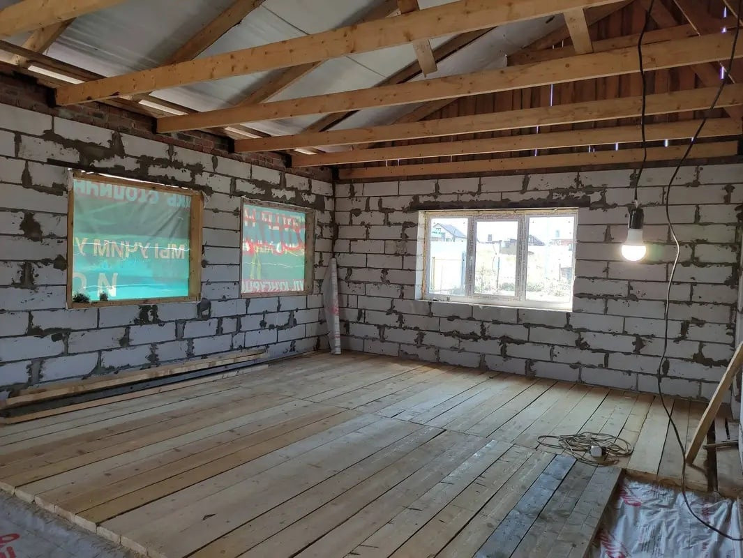 Общая площадь постройки 143,4 кв.м.Дом блочный,свободной планировки, имеется яма для хранения урожая, большая терраса.
