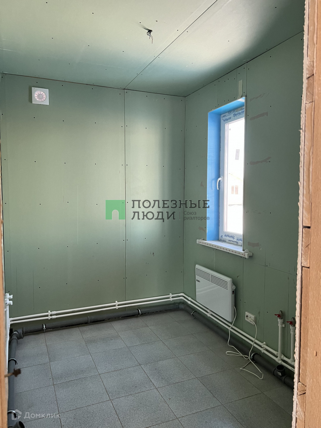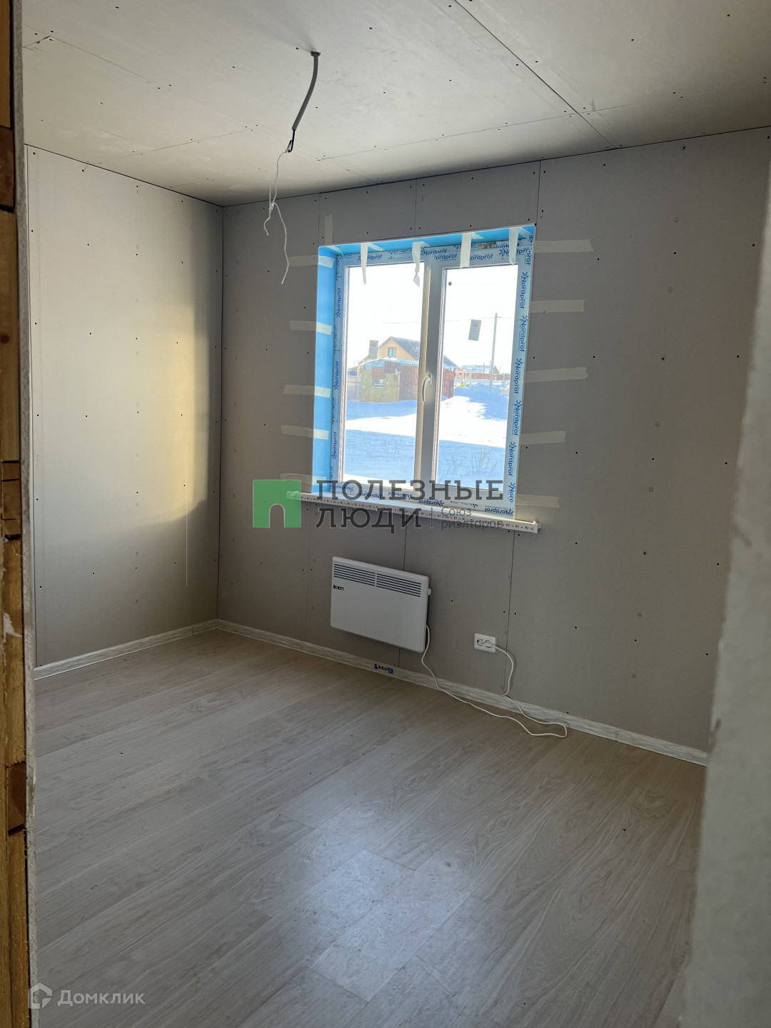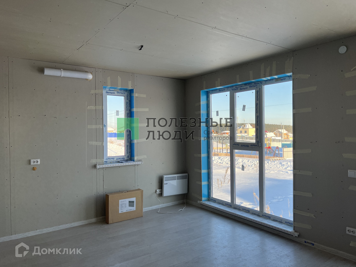 В санузлах на полу плитка, в доме постелен ламинат, установлены панорамные окна.
