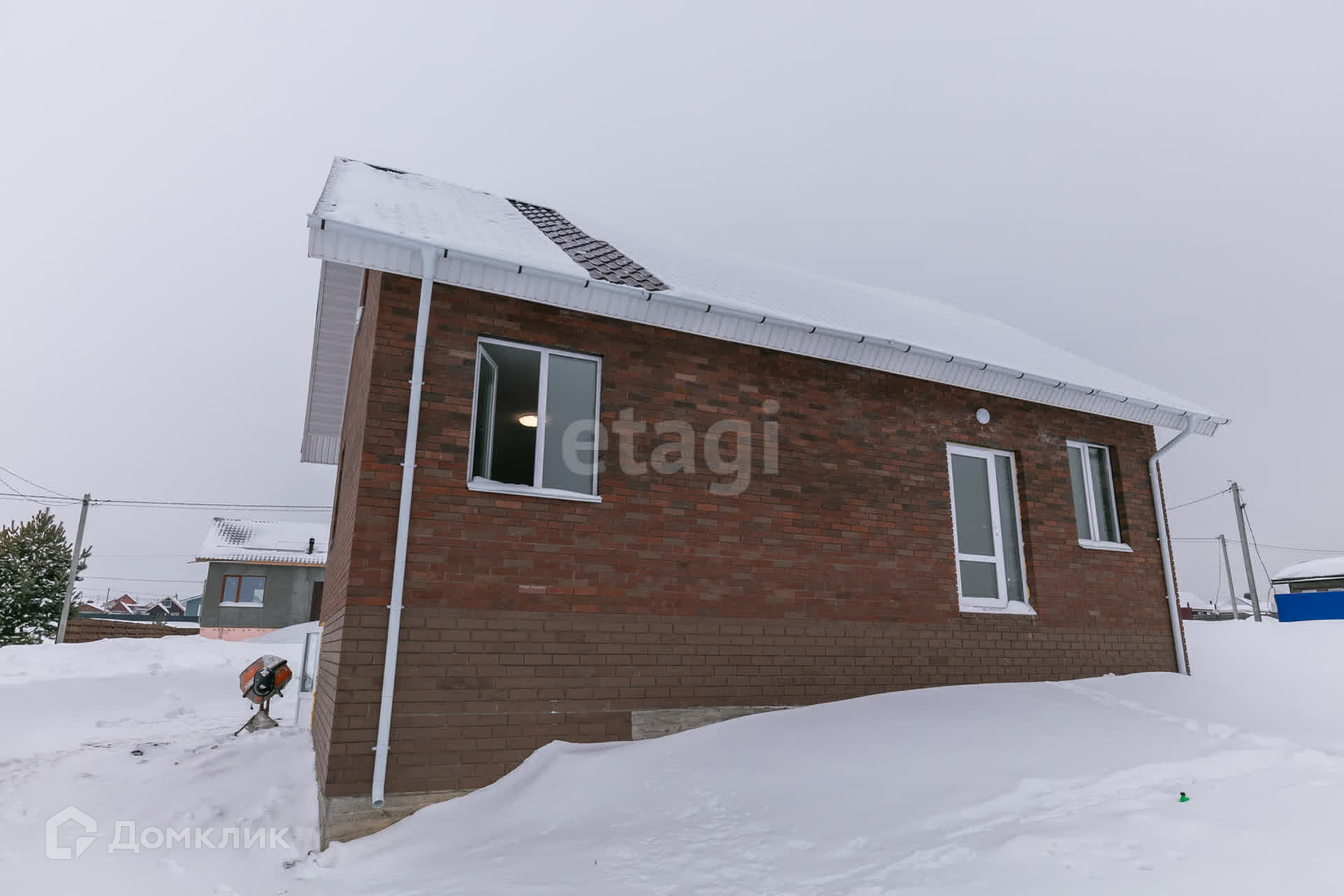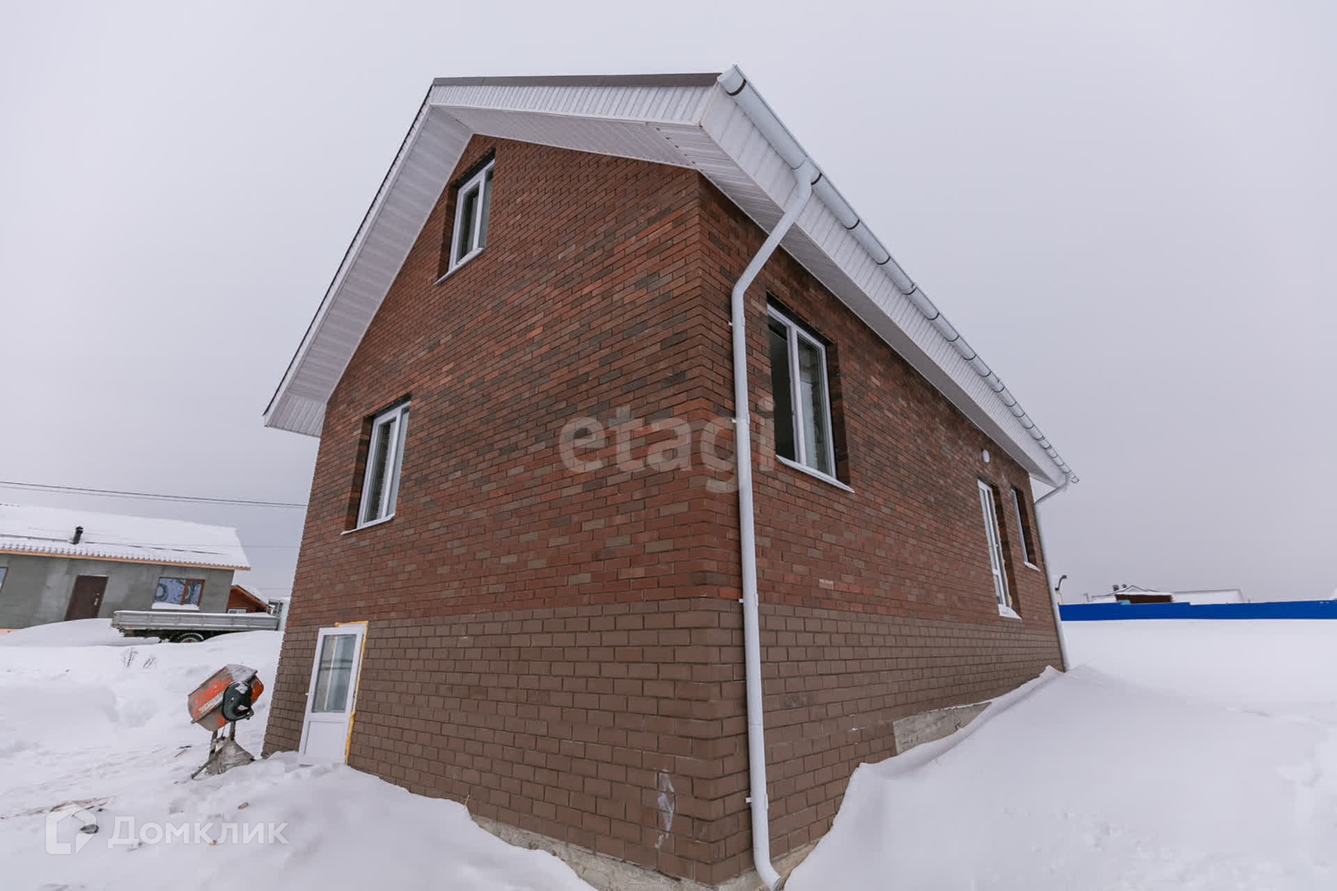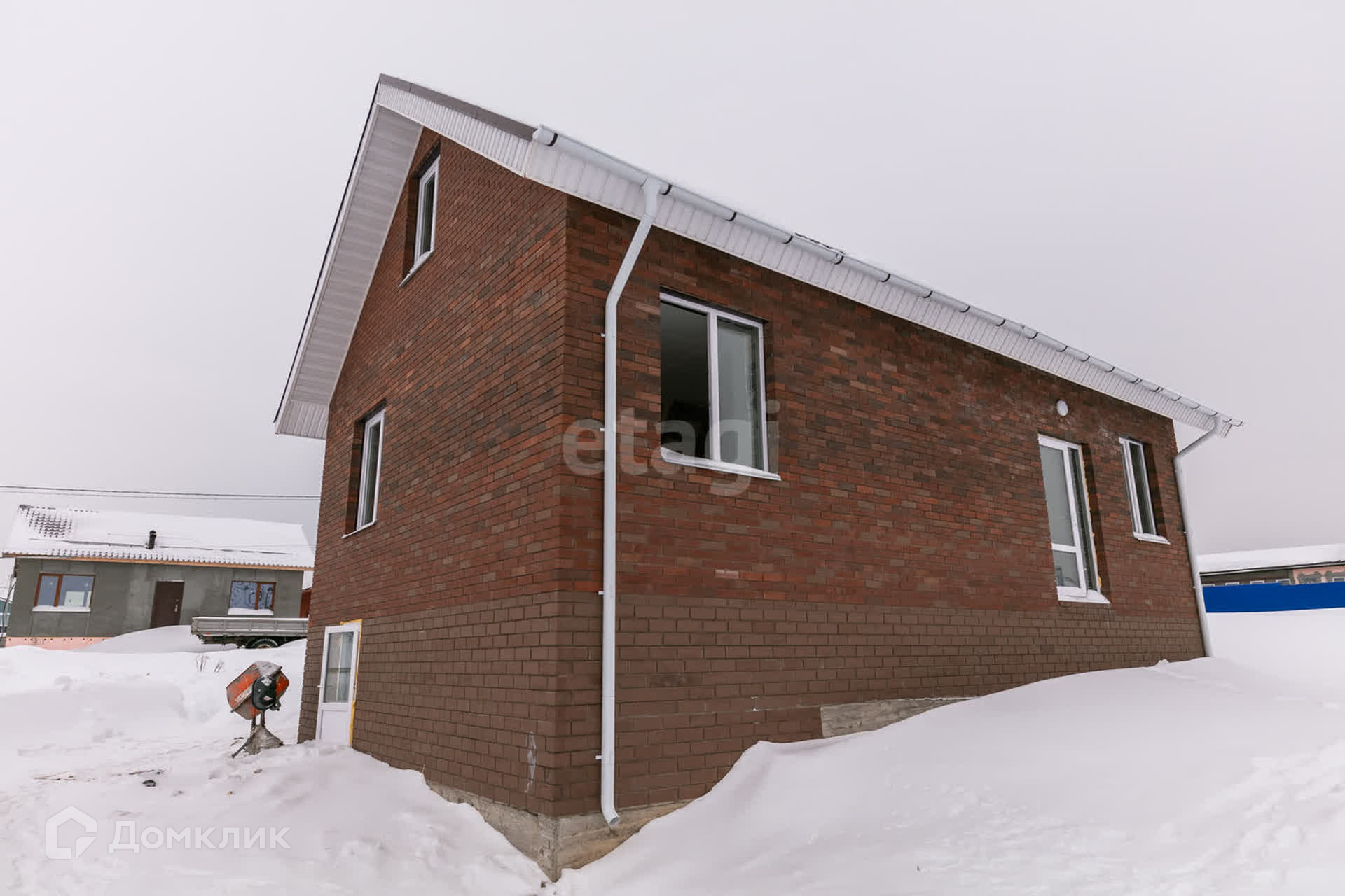 Дом построен из газоблока и облицован кирпичем.