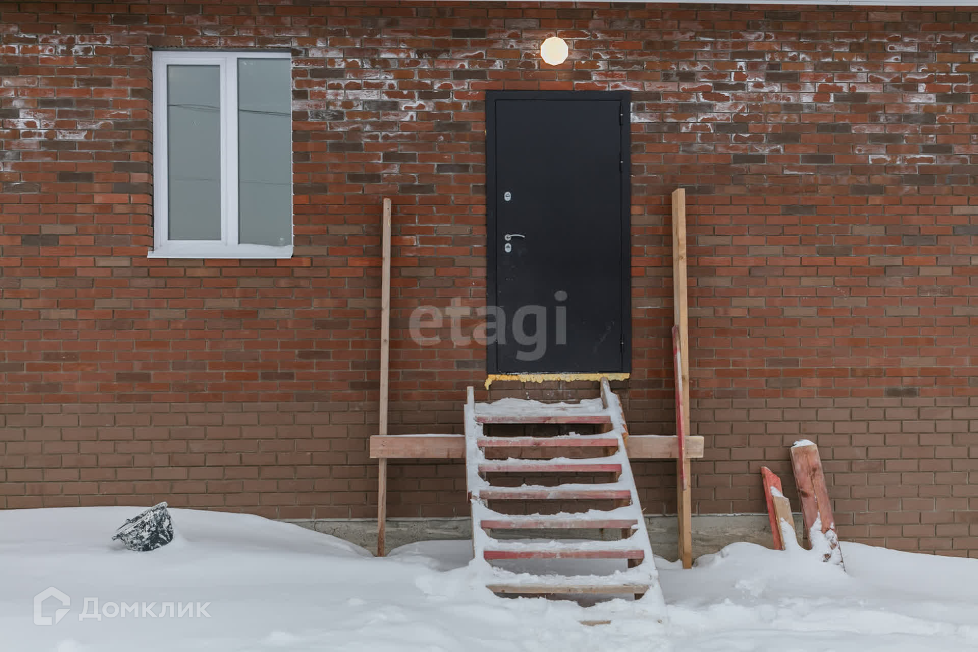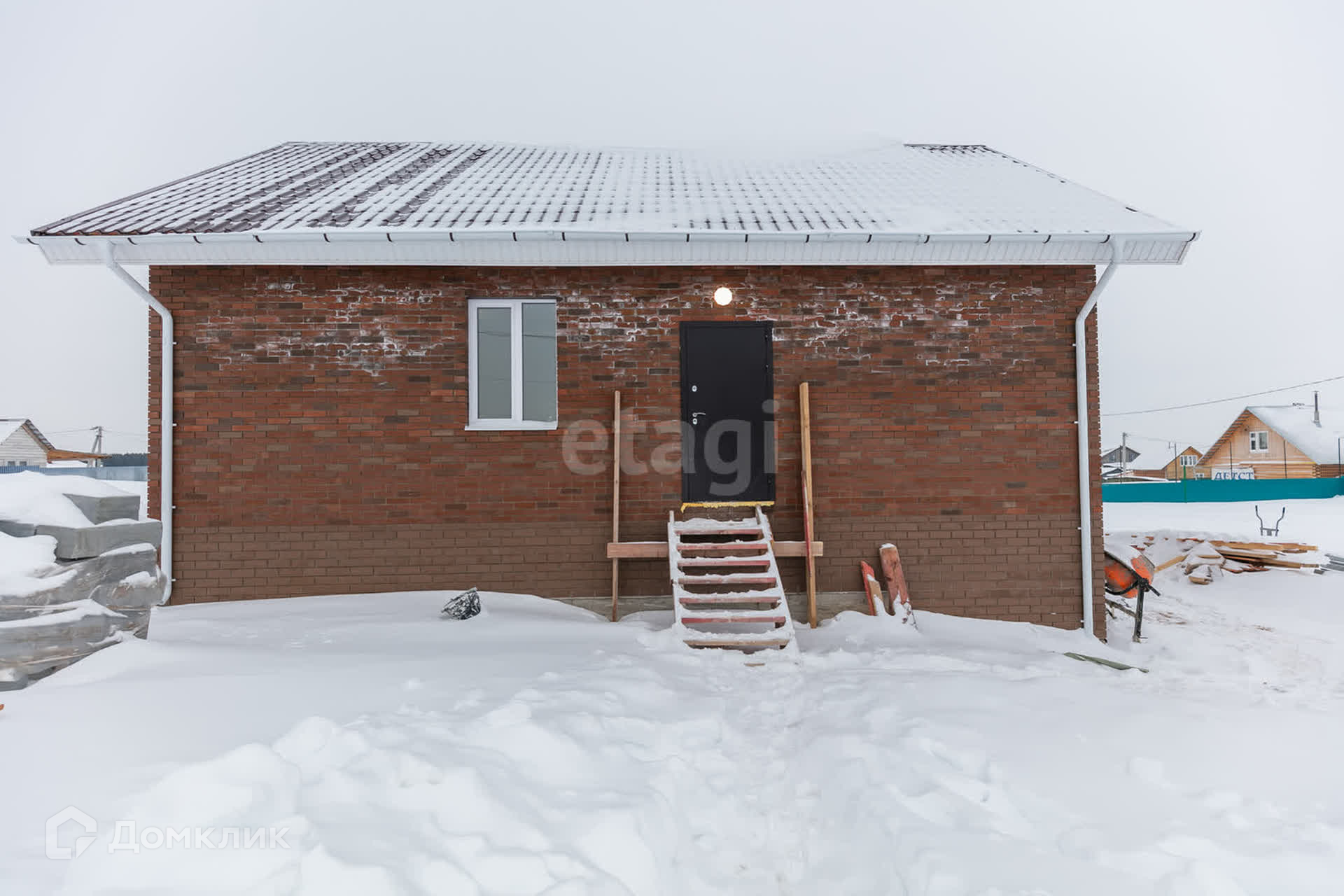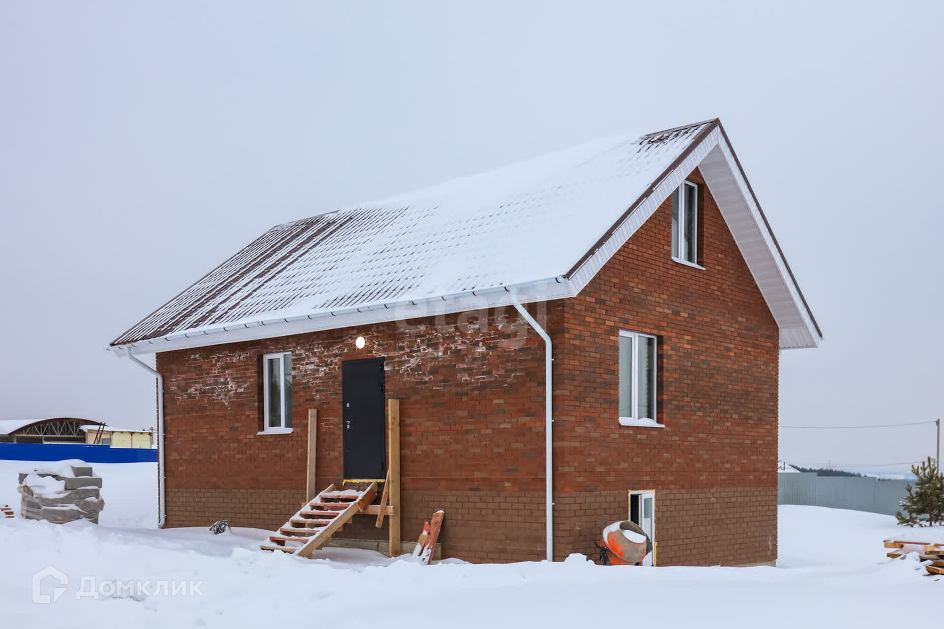 Дом построен из газоблока и облицован кирпичем.
