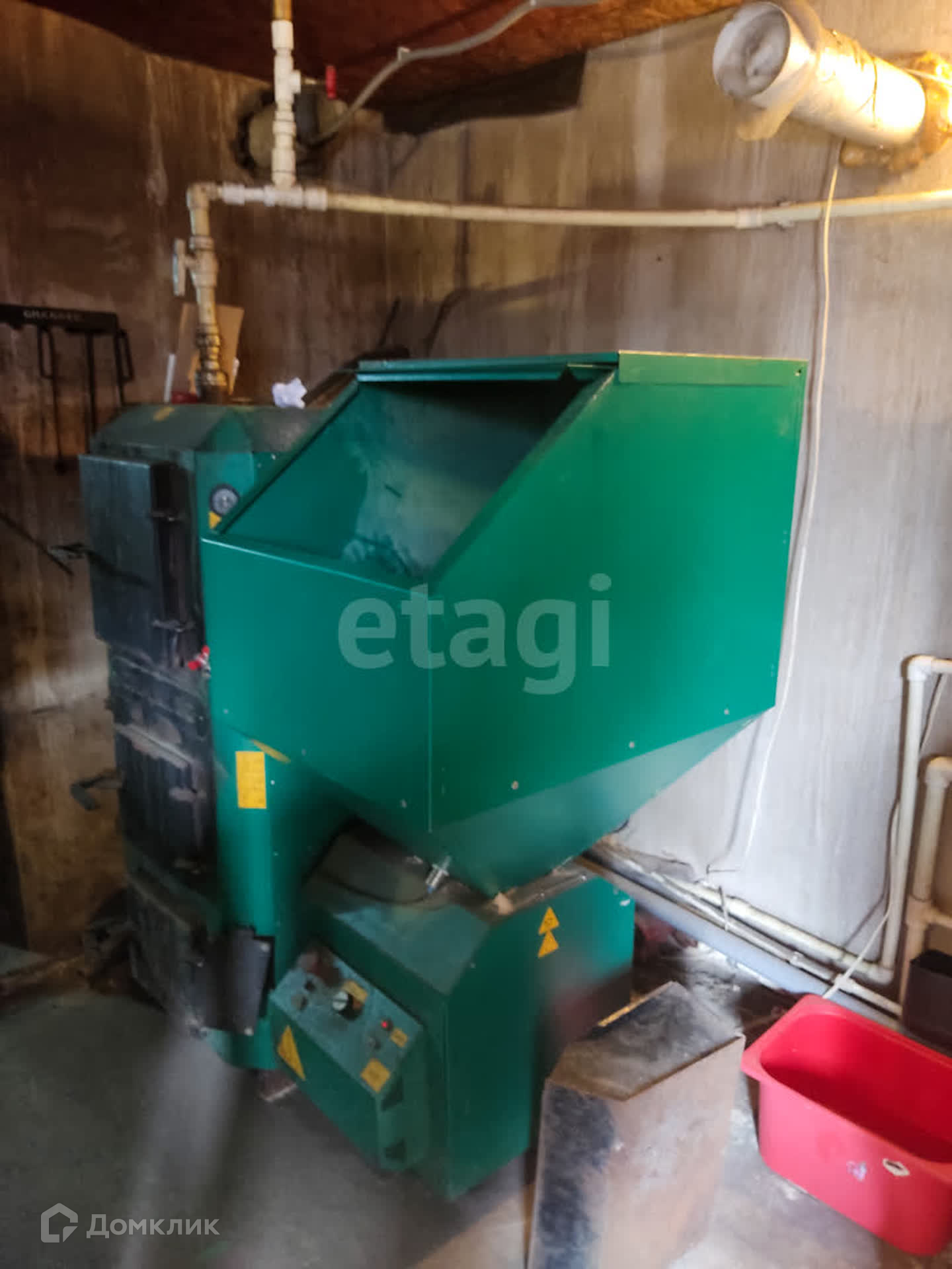 Отопление - пеллетный котел Grandeg на 25 кВт. Электричество - 5 кВт. Вода - колодец 12 колец.
