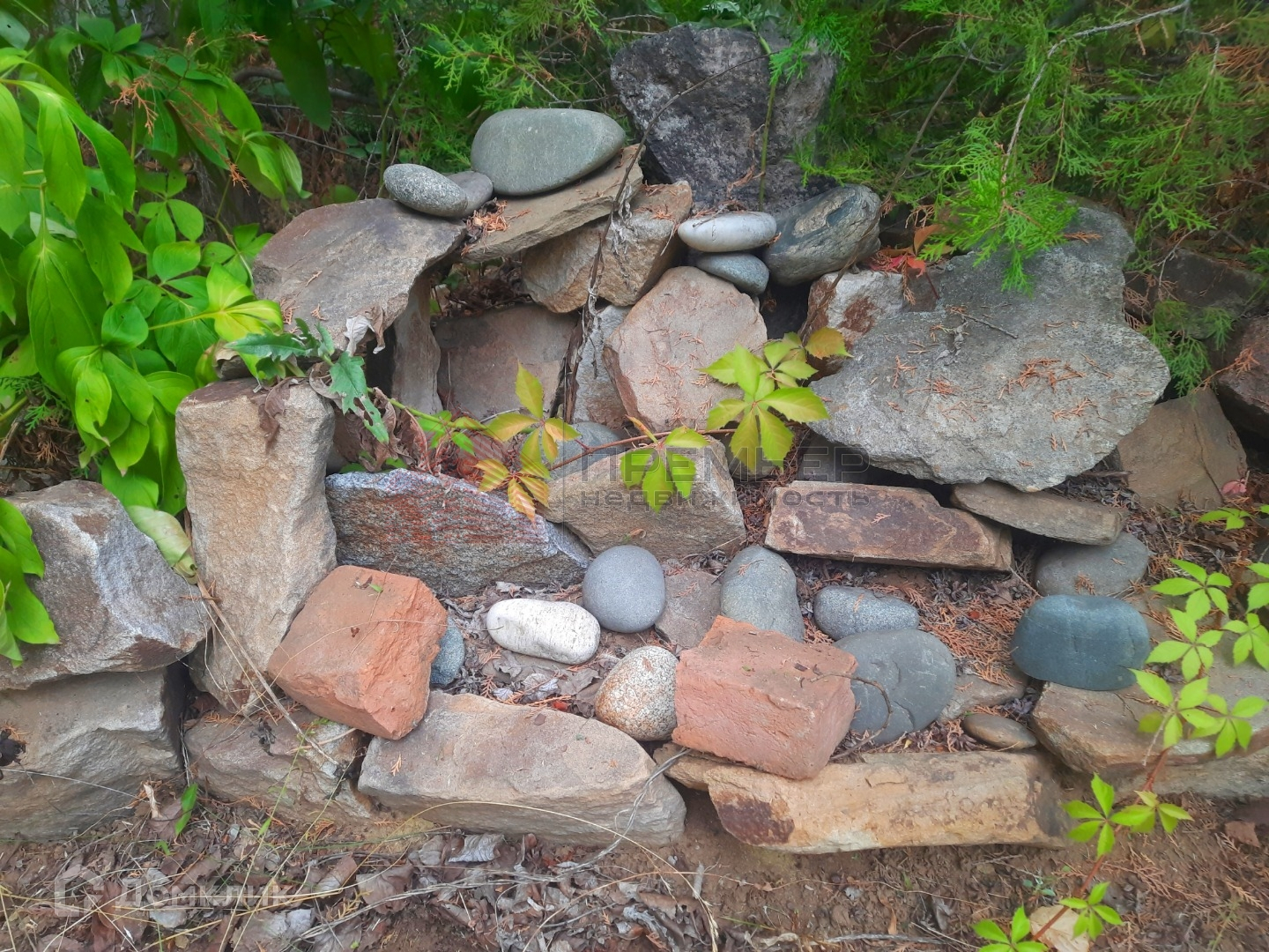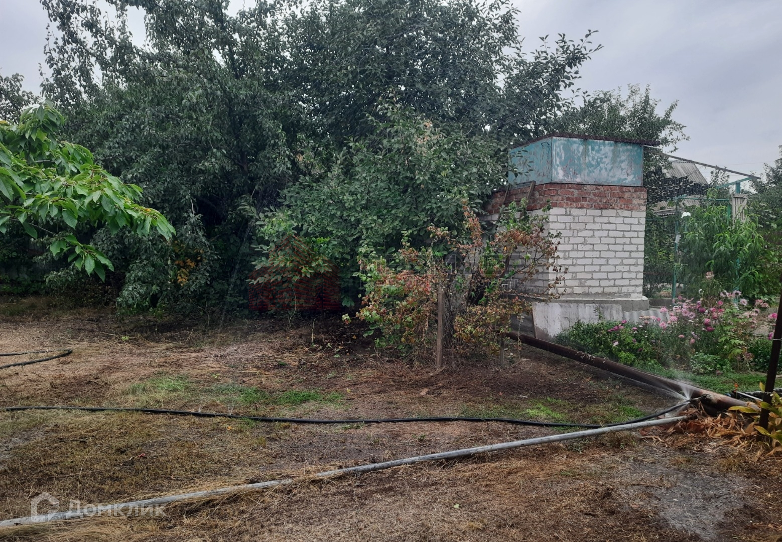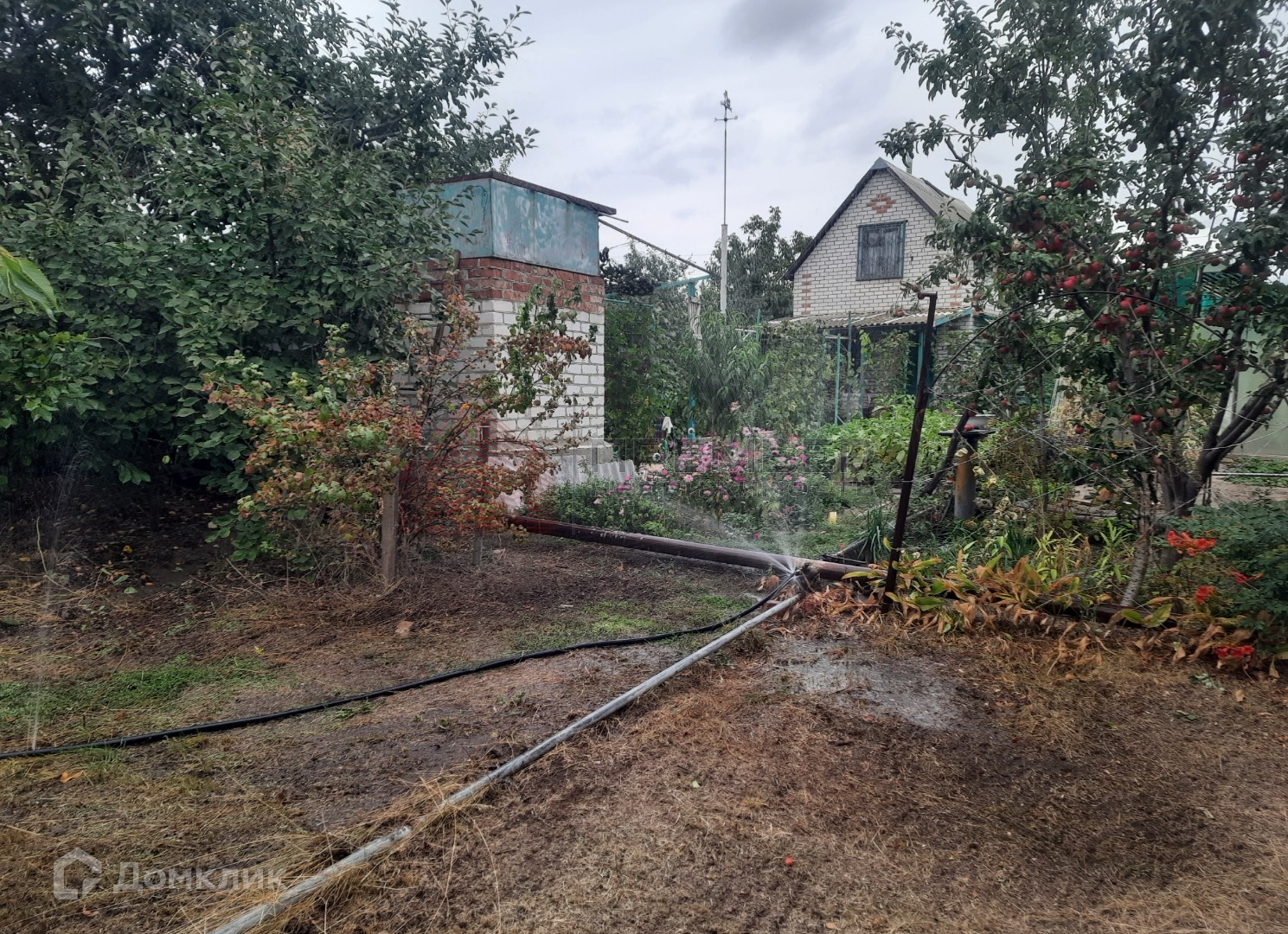 На участке много плодовых деревьев, есть бетонные дорожки. Альпийская горка, прудик.
