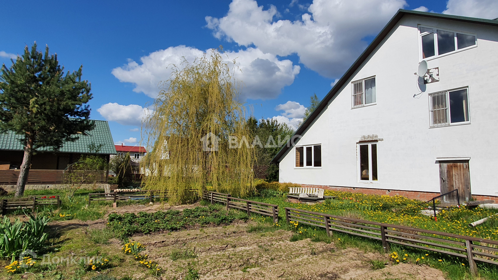 Огороженный участок ухожен, имеет плодовые деревья и кустарники, место для установки большого бассейна с зоной отдыха и площадку для автомобиля.