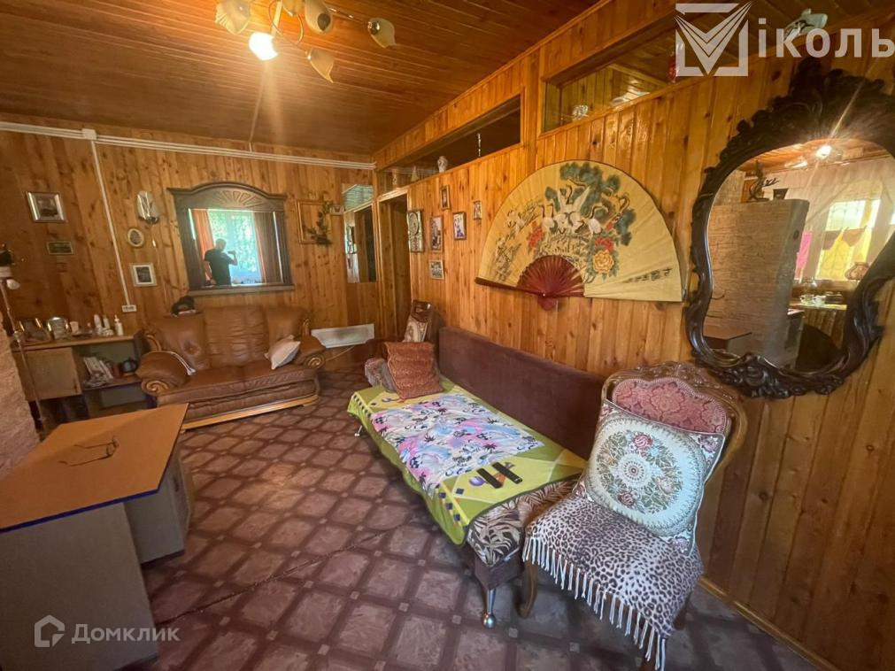 Дом продается с мебелью (кухонный гарнитур, 2 односпальных кровати, диван, стулья, круглый обеденный стол).
