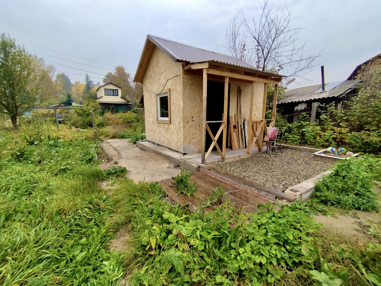 От ворот СНТ - первая улица, до станции 5-7 минут ходьбы. Маленький уютный домик укроет вас от знойного солнца и холодного дождя.