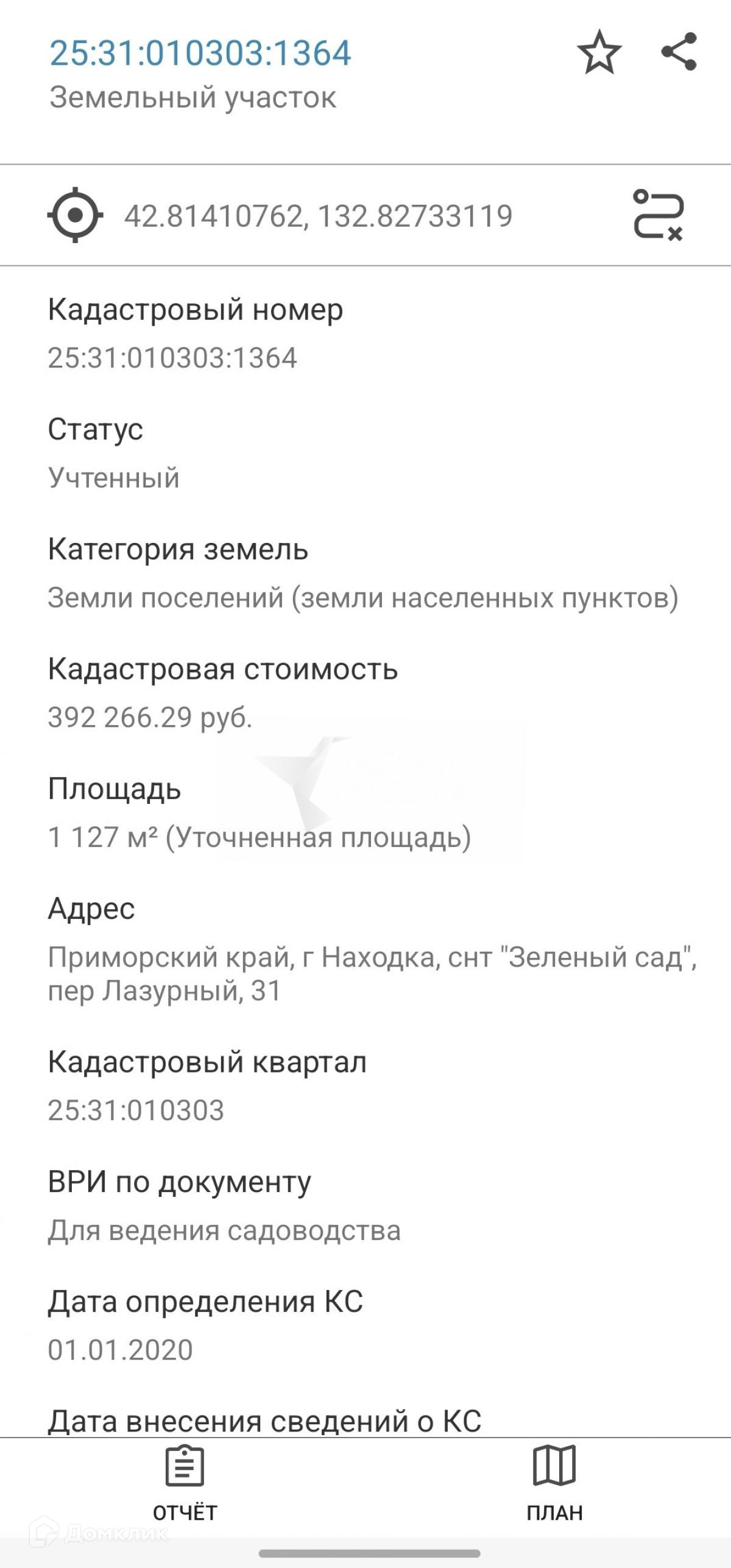 Кадастровый номер: 25:31:010303:1364