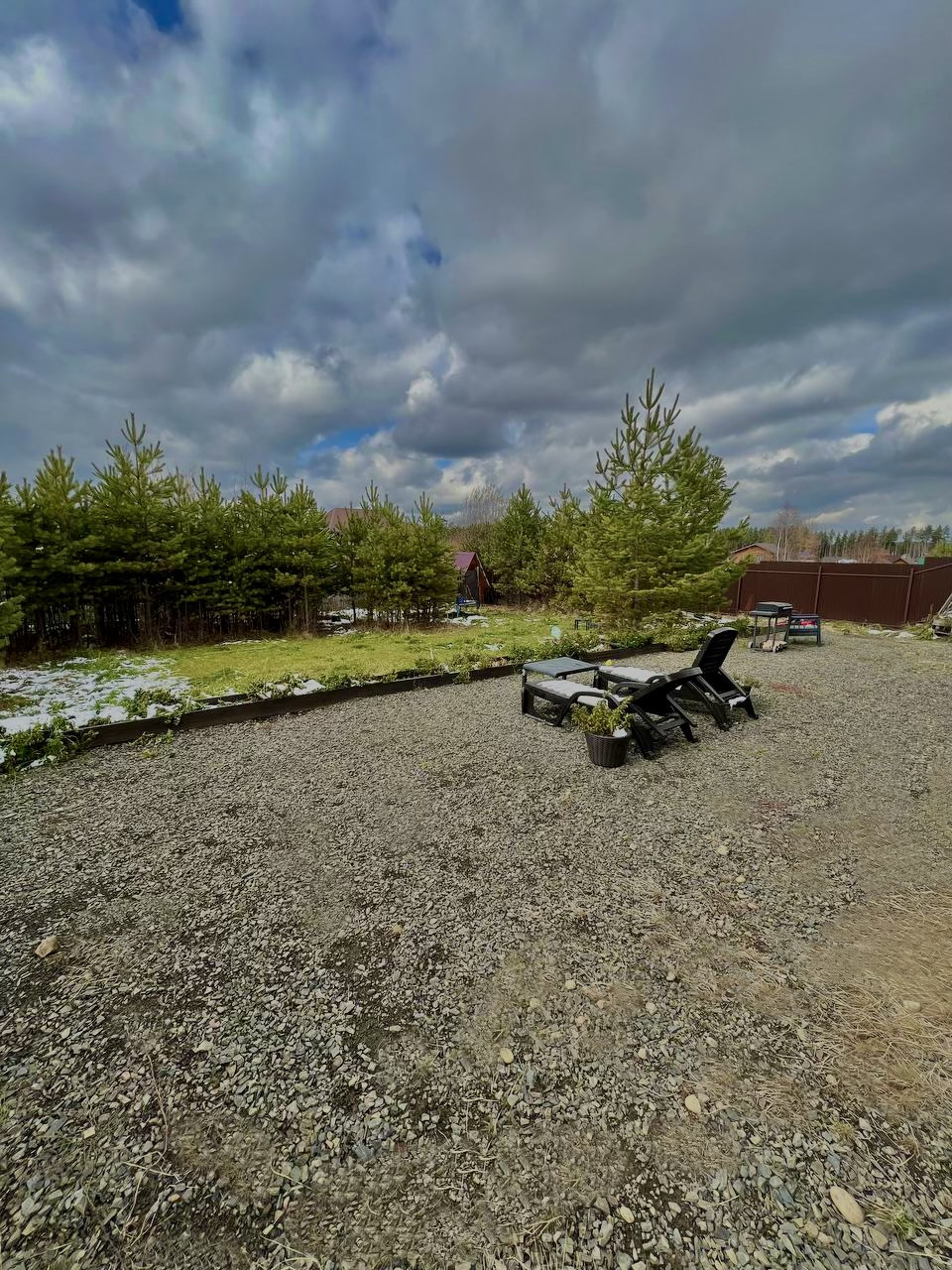 на улице остаются (шезлонги + столик, обеденная группа, батут, качель гнездо, кашпо из Ротанга, мангал)