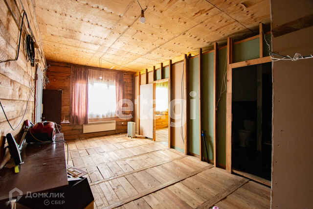 Дом введён в эксплуатацию. Заведено электричество, свет, вода. Проведён интернет и есть вайфай. Отопление электрическое, радиаторы на стенах. Установлен туалет, есть смеситель и ванна-корыто. Установлены пластиковые стеклопакеты. Одна комната оббита блок-хаусом без покраски, другая покрыта краской в розовых и серых тонах. Туалет окрашен чёрно-белой краской.