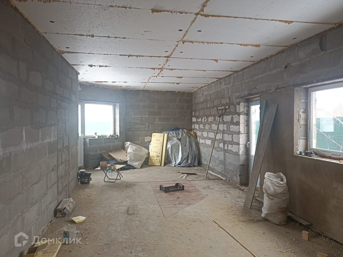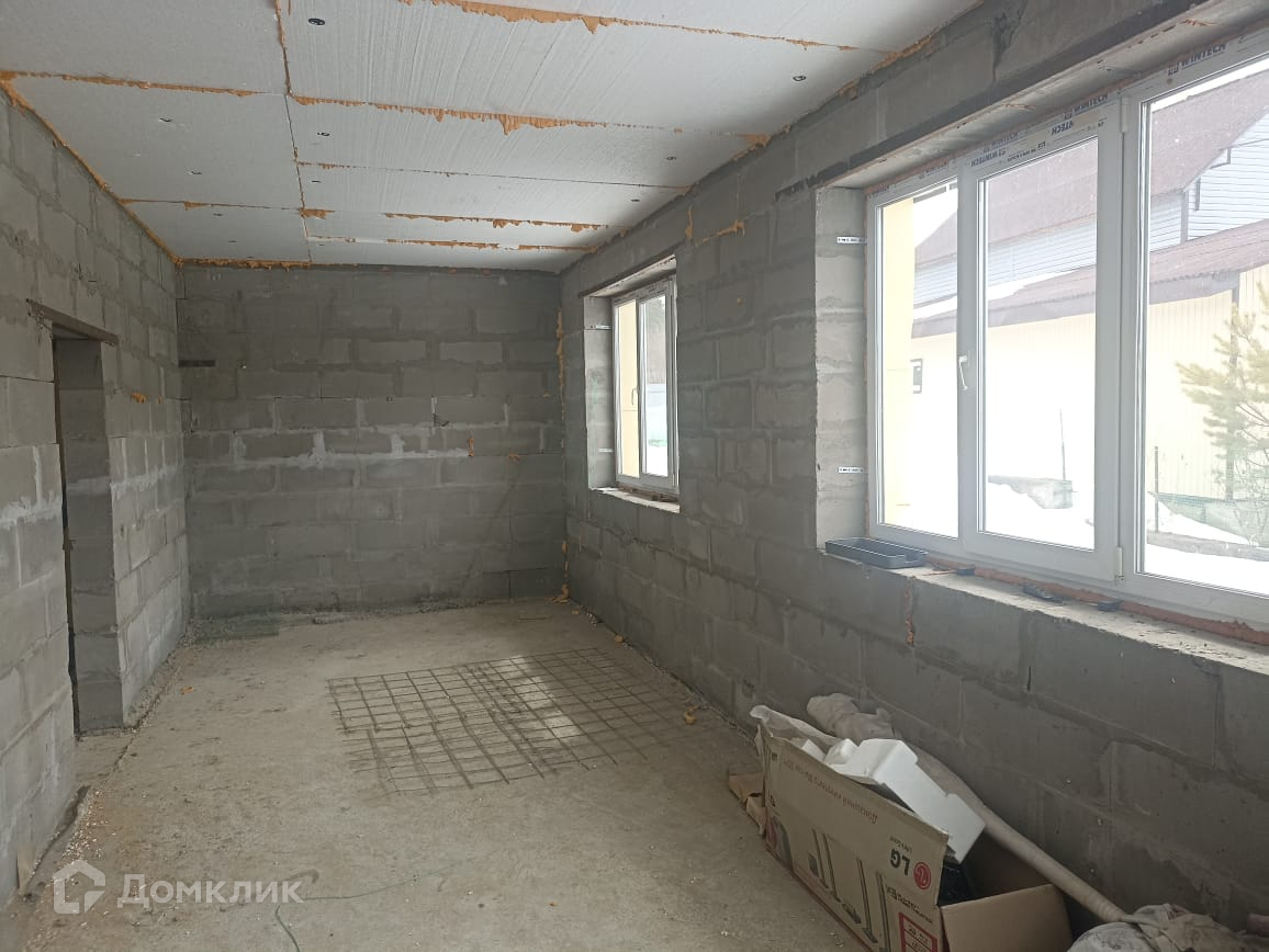 Продаётся уютный одноэтажный дом из газобетона  площадью 194 кв.м.на участке 9 соток             Планировка дома: 1 этаж Спальня, кухня-гостиная, сан узел, сауна. 2 комнаты в черновой отделки Характеристики дома:​​​​​​​Теплые полы Крыша Сайдинг утеплённый пенопластом  Фундамент- Сваи, ленточный  Септик 40м3Электричество 15кВт.Дом утеплен Пеноплексом Гараж на 2 машины На участке стоит теплица До остановки 600 метров Ходит школьный автобус Номер объекта: #150/542666/16244