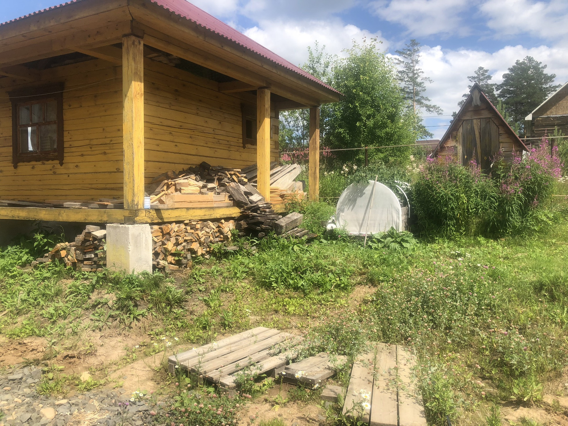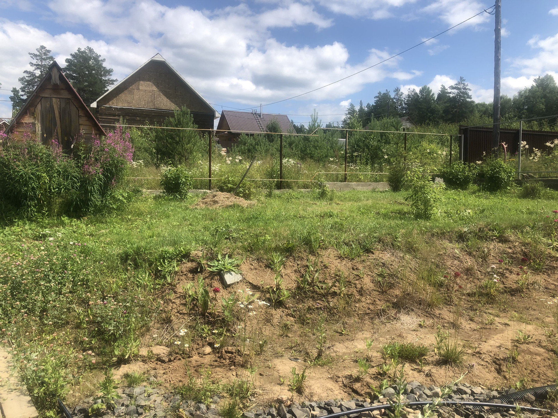 Участок правильной квадратной формы,ровный, сухой, сделан дренаж, есть летний центральный водопровод, на участке, баня 4*4 из бруса 18*18, гараж 4*6 каркасного типа, теплица, плодовые деревья малина, смородина, ирга, калина, яблоня, черемуха.