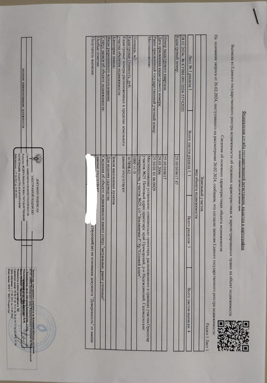 Участок в собственности общей площадью 10 соток.