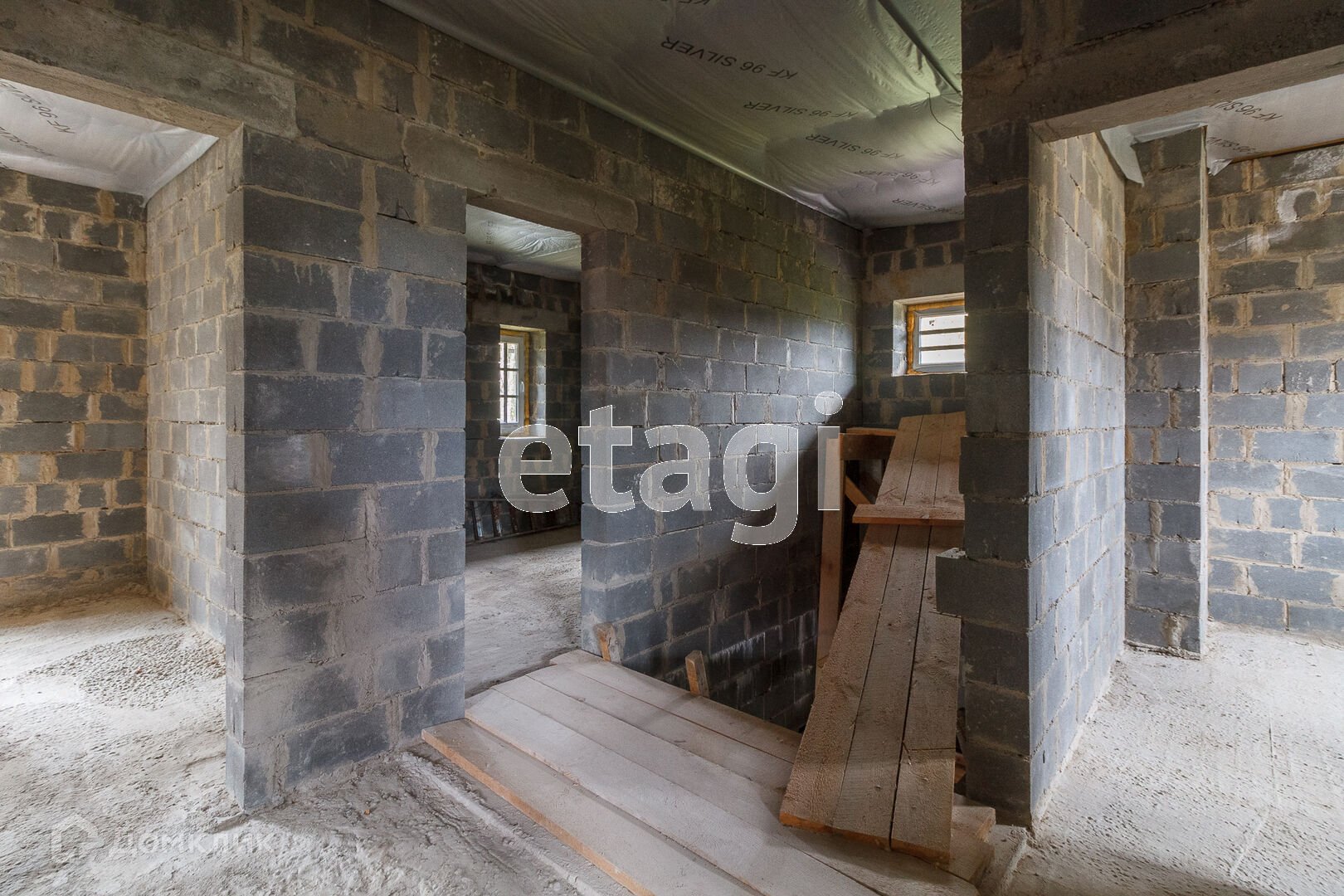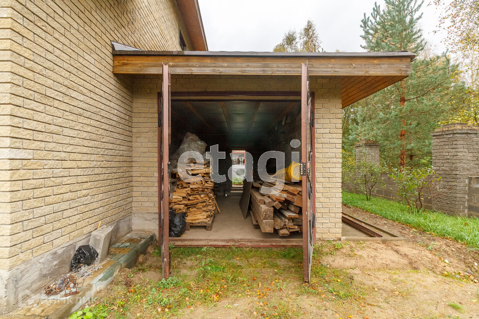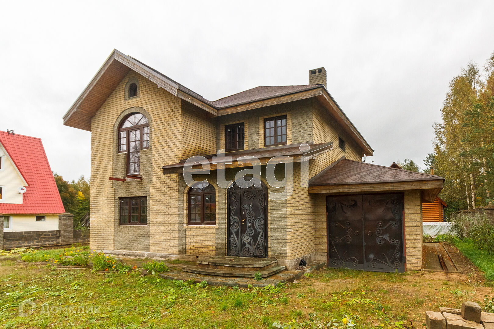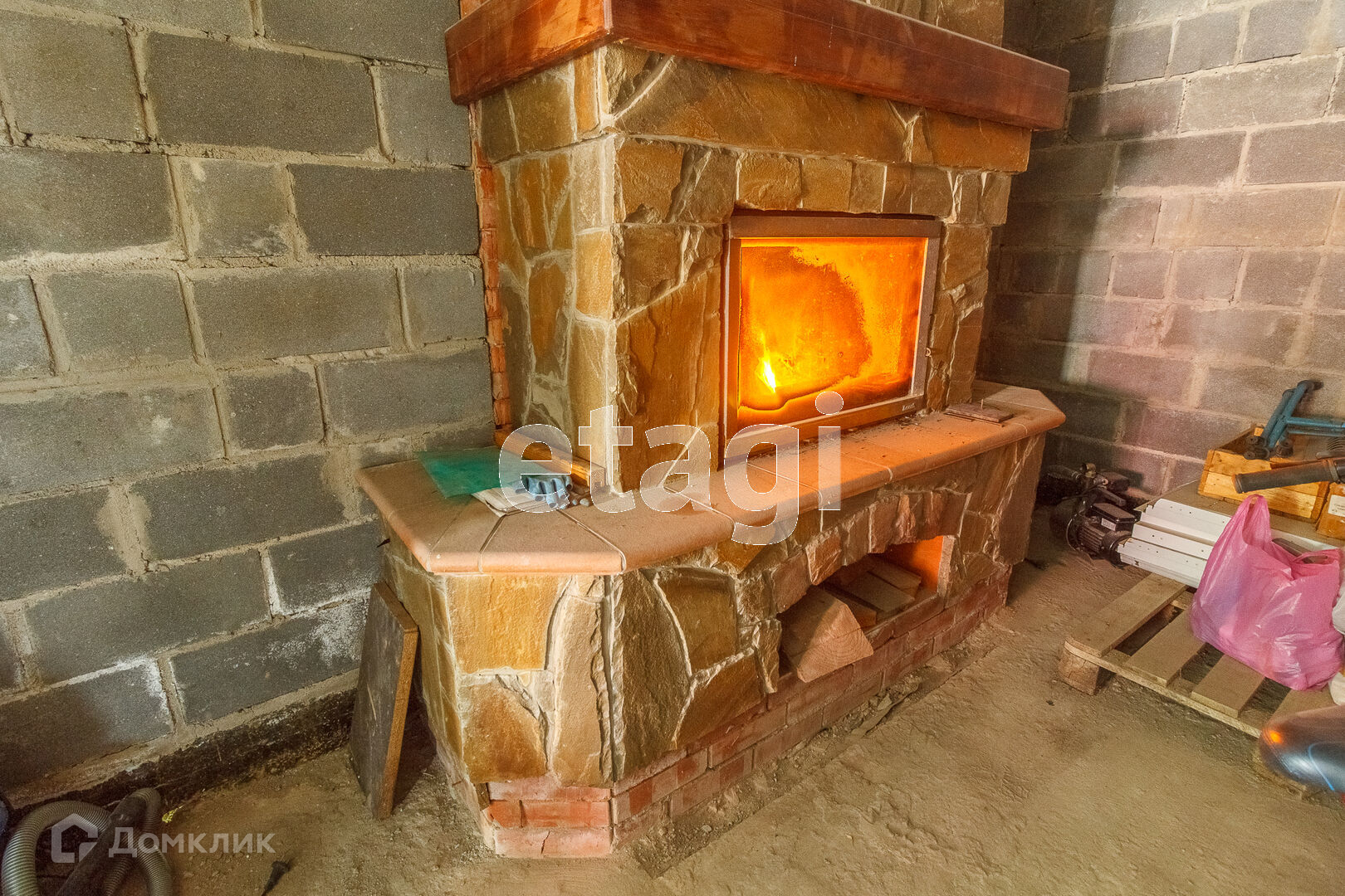 По всей территории в 15 соток ограждён кирпичным забором. На участке все тропинки выложены плиткой. Сам дом построен из кирпича. Внутри дома черновая отделка. На первом этаже имеется 2 комнаты в одной из которых находится печь с стеклянной дверью камина, которая создаёт приятный уют. Так же на первом этаже имеется 2 раздельных санузла. Под домом вкопаны 4 кольца для септика.