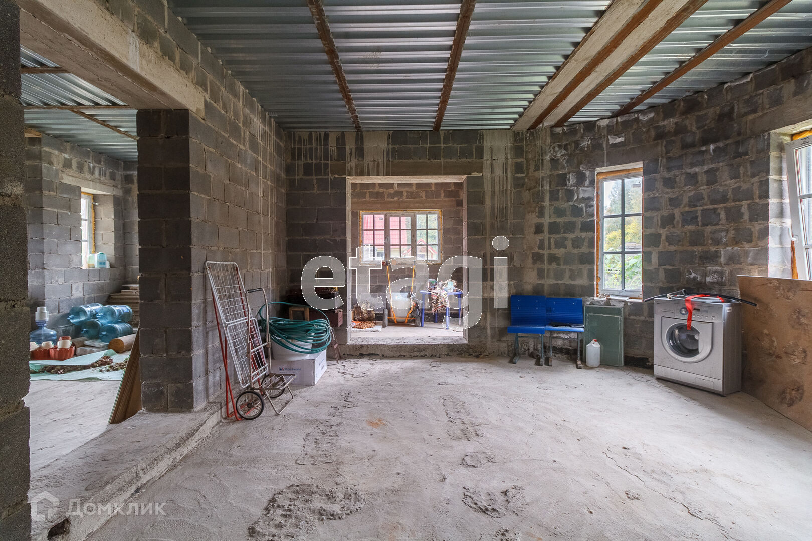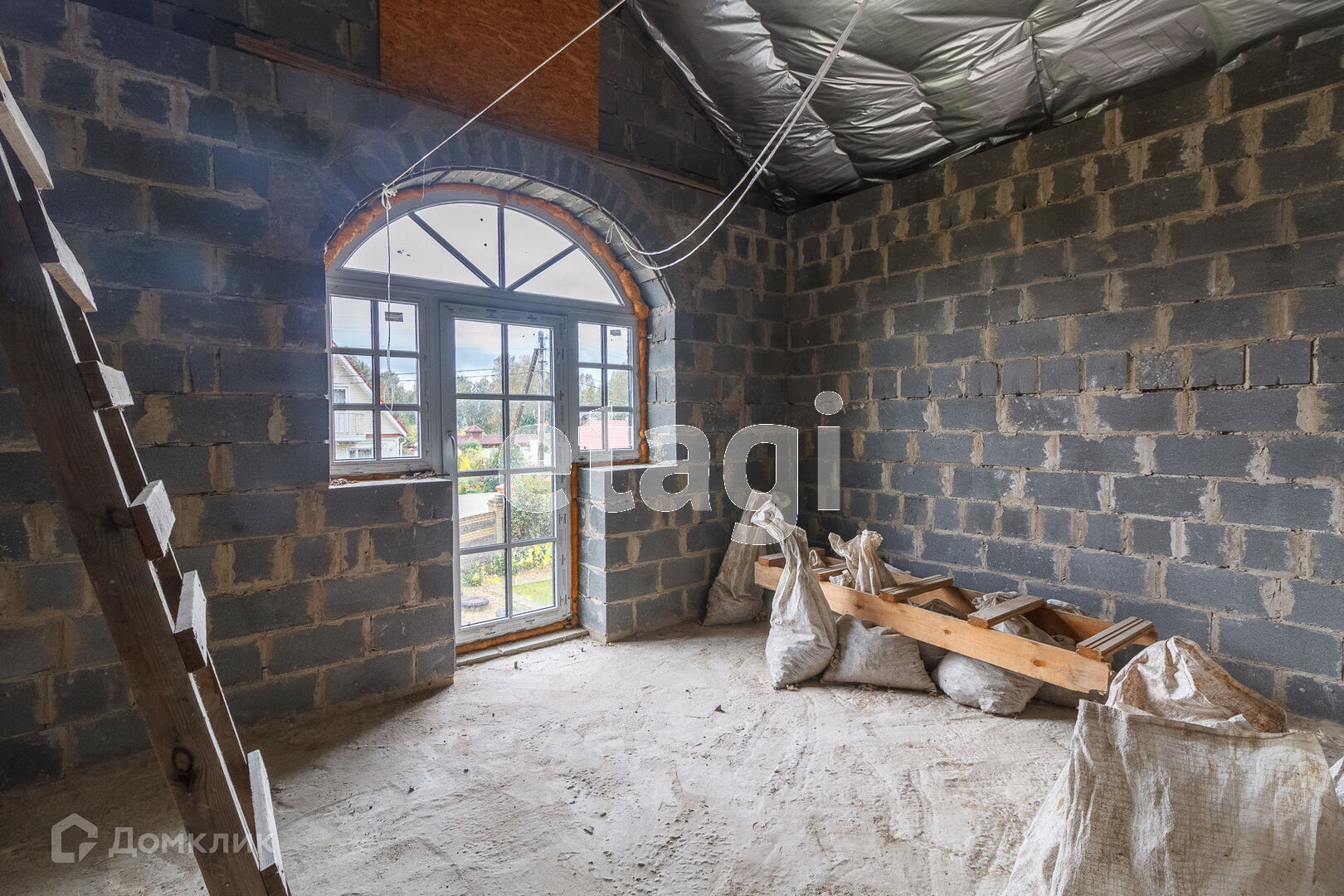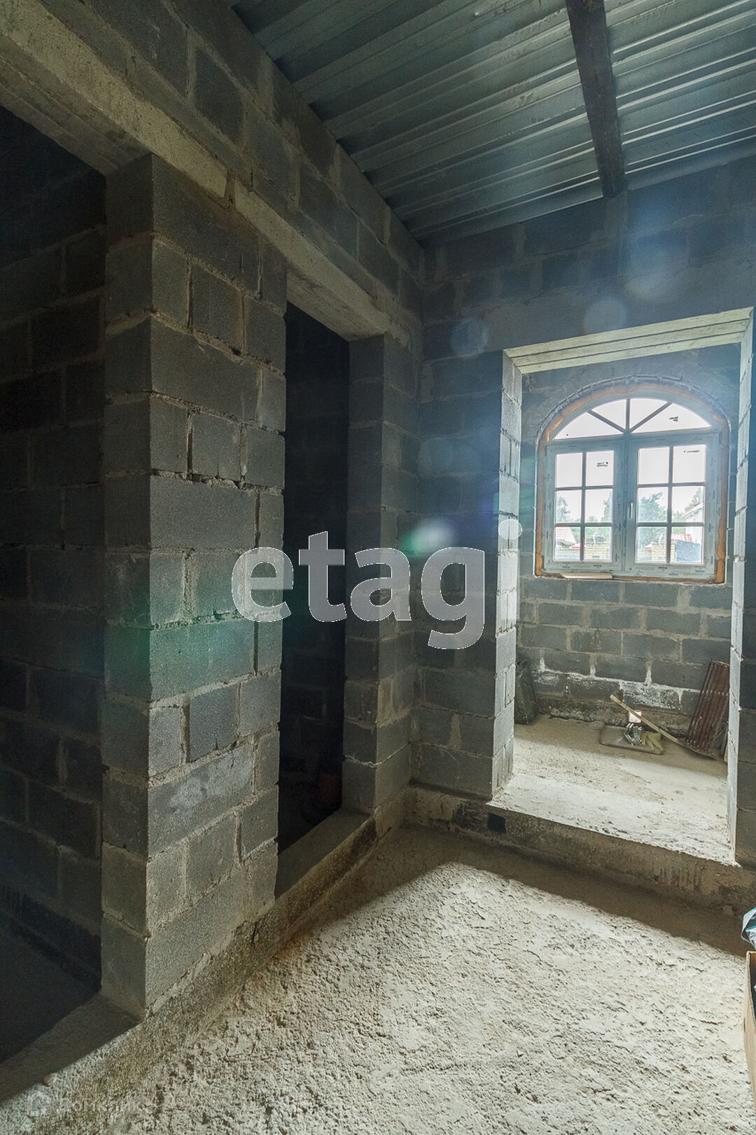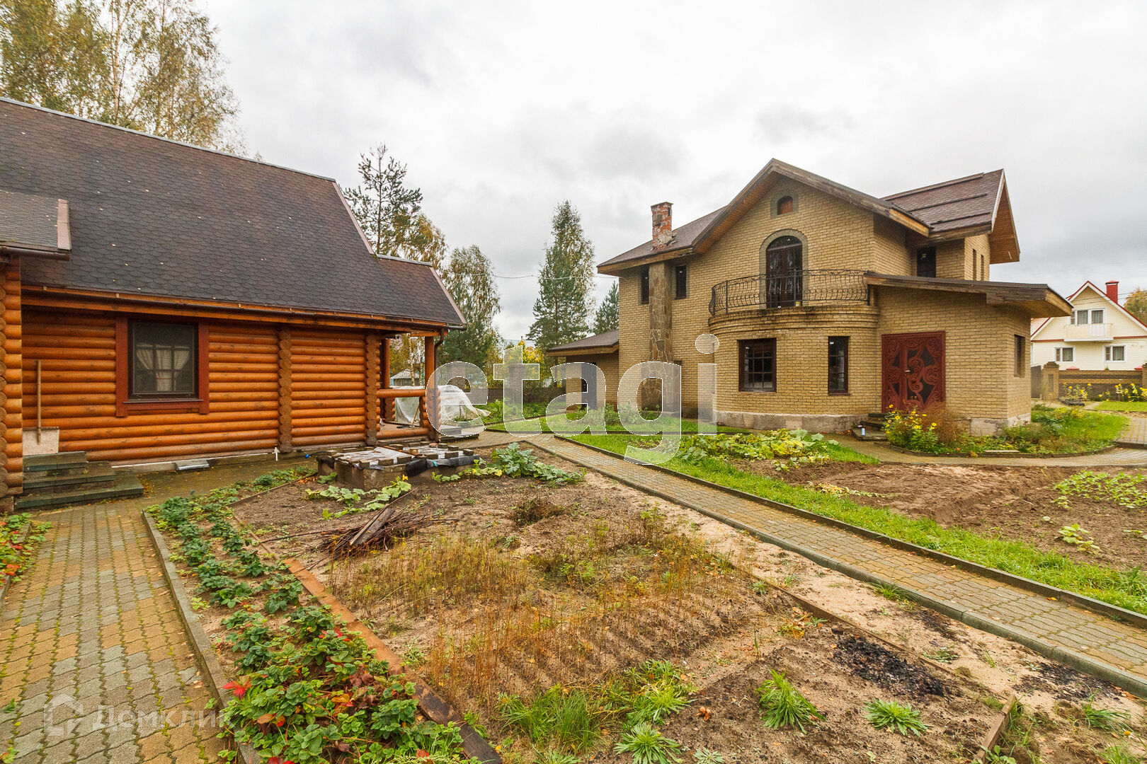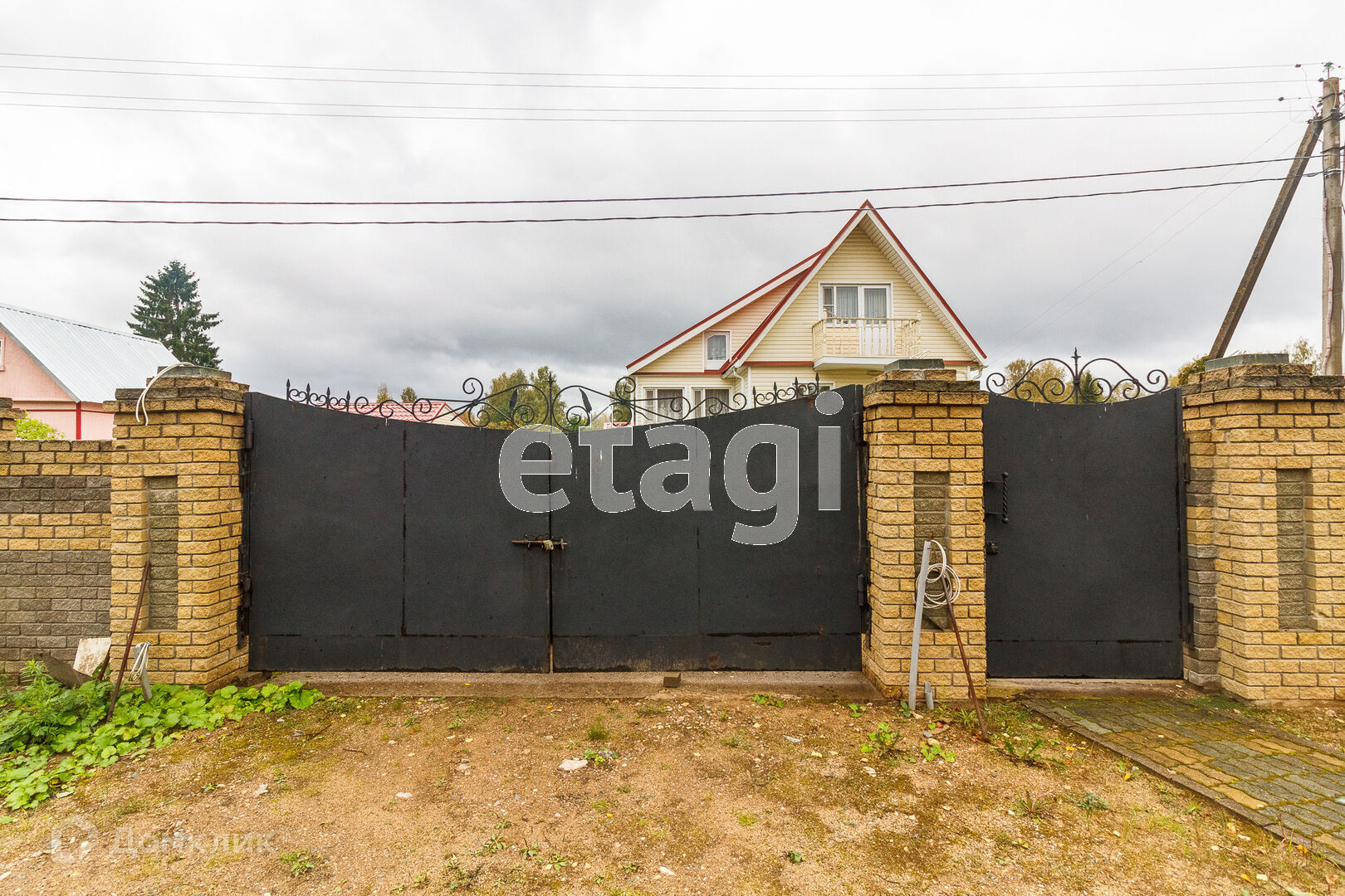 По всей территории в 15 соток ограждён кирпичным забором. На участке все тропинки выложены плиткой. Сам дом построен из кирпича. Внутри дома черновая отделка. На первом этаже имеется 2 комнаты в одной из которых находится печь с стеклянной дверью камина, которая создаёт приятный уют. Так же на первом этаже имеется 2 раздельных санузла. Под домом вкопаны 4 кольца для септика.