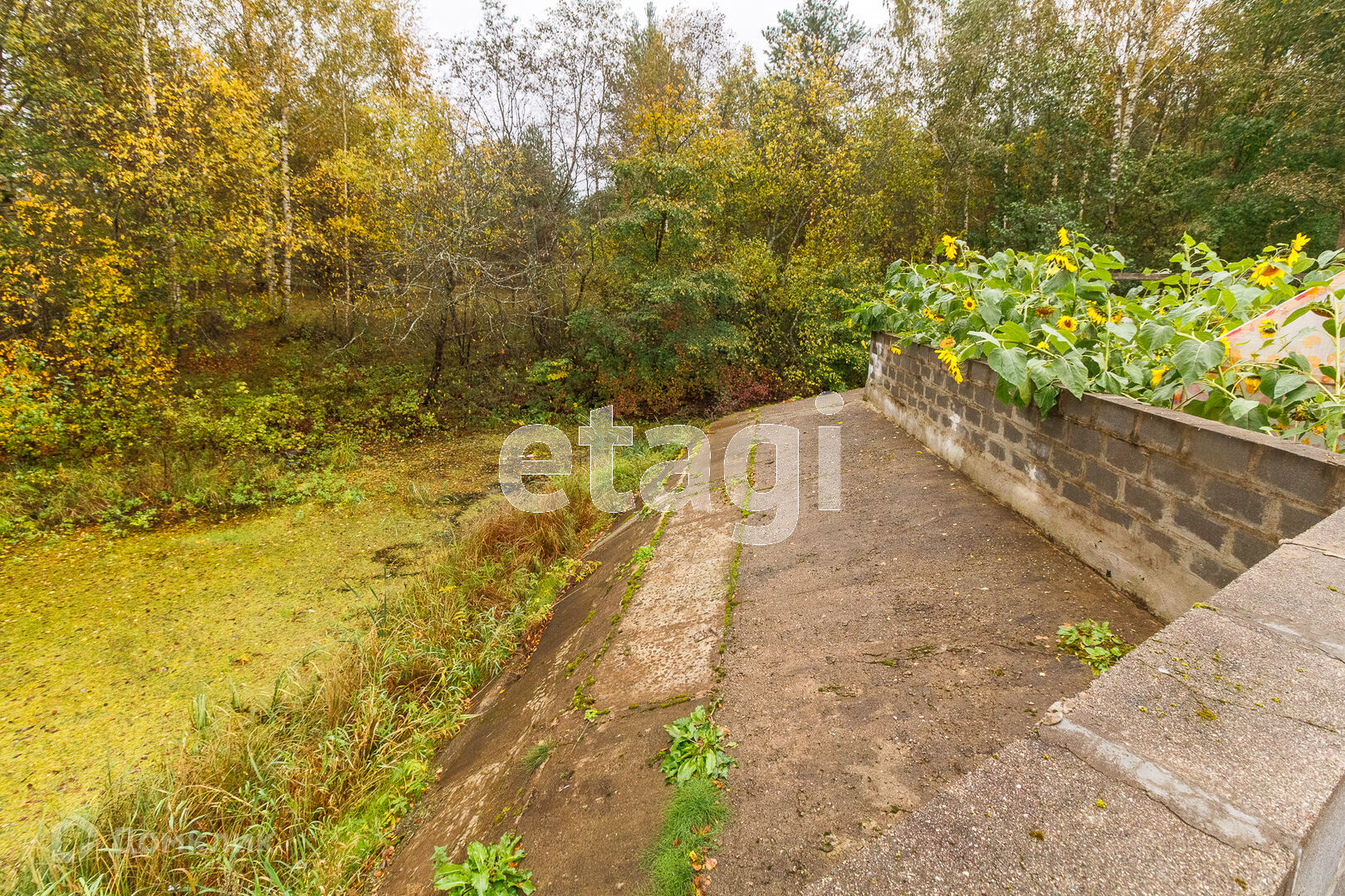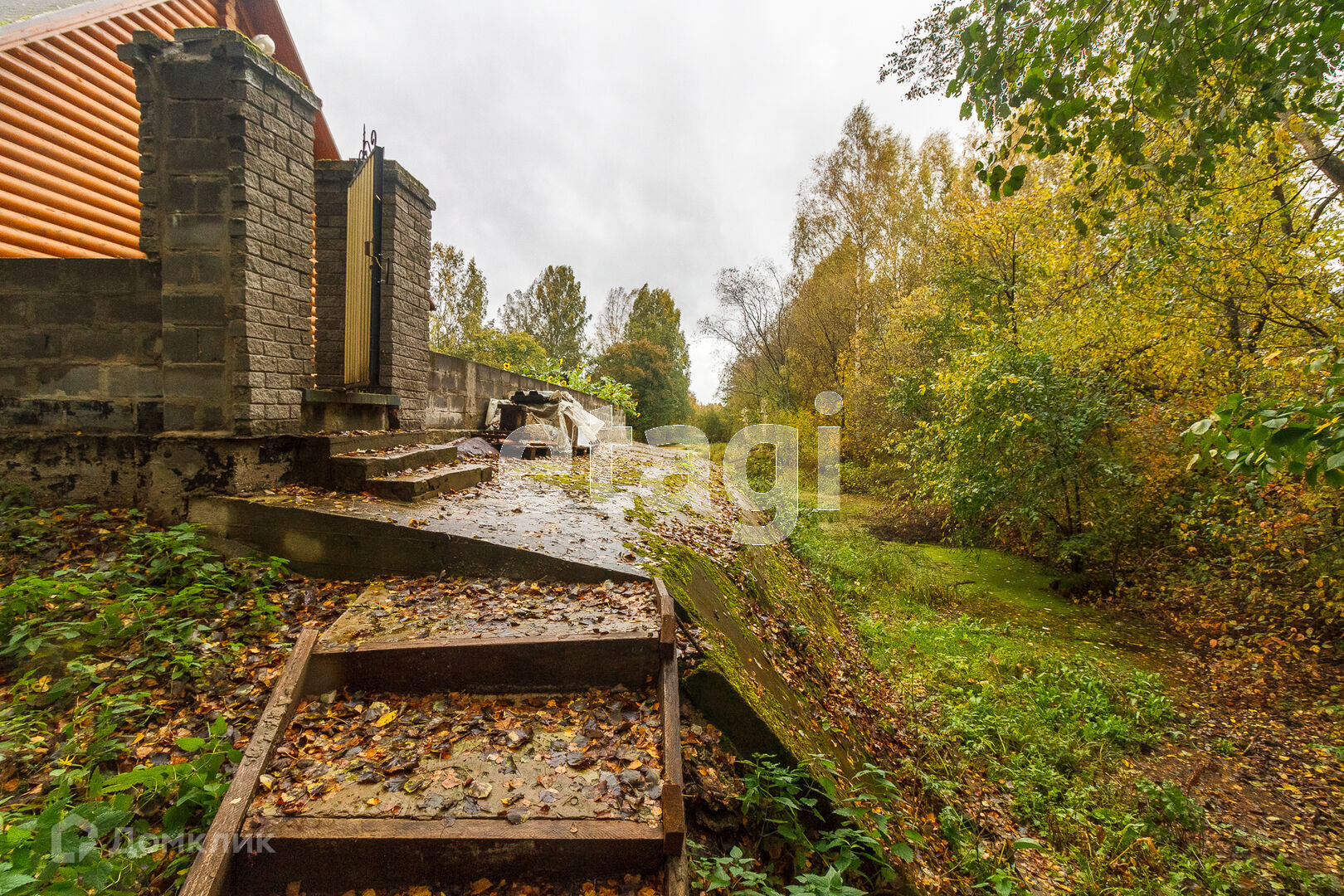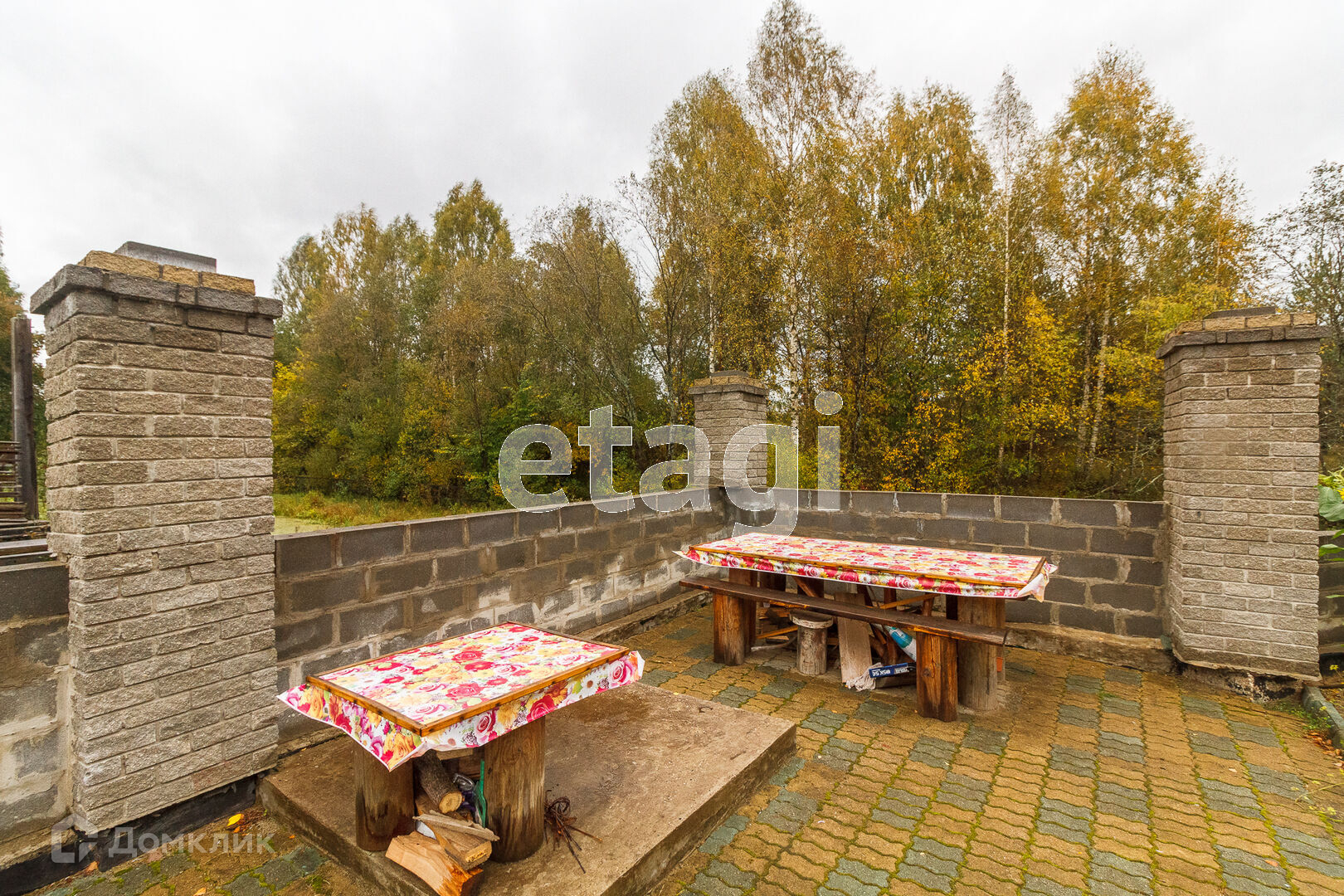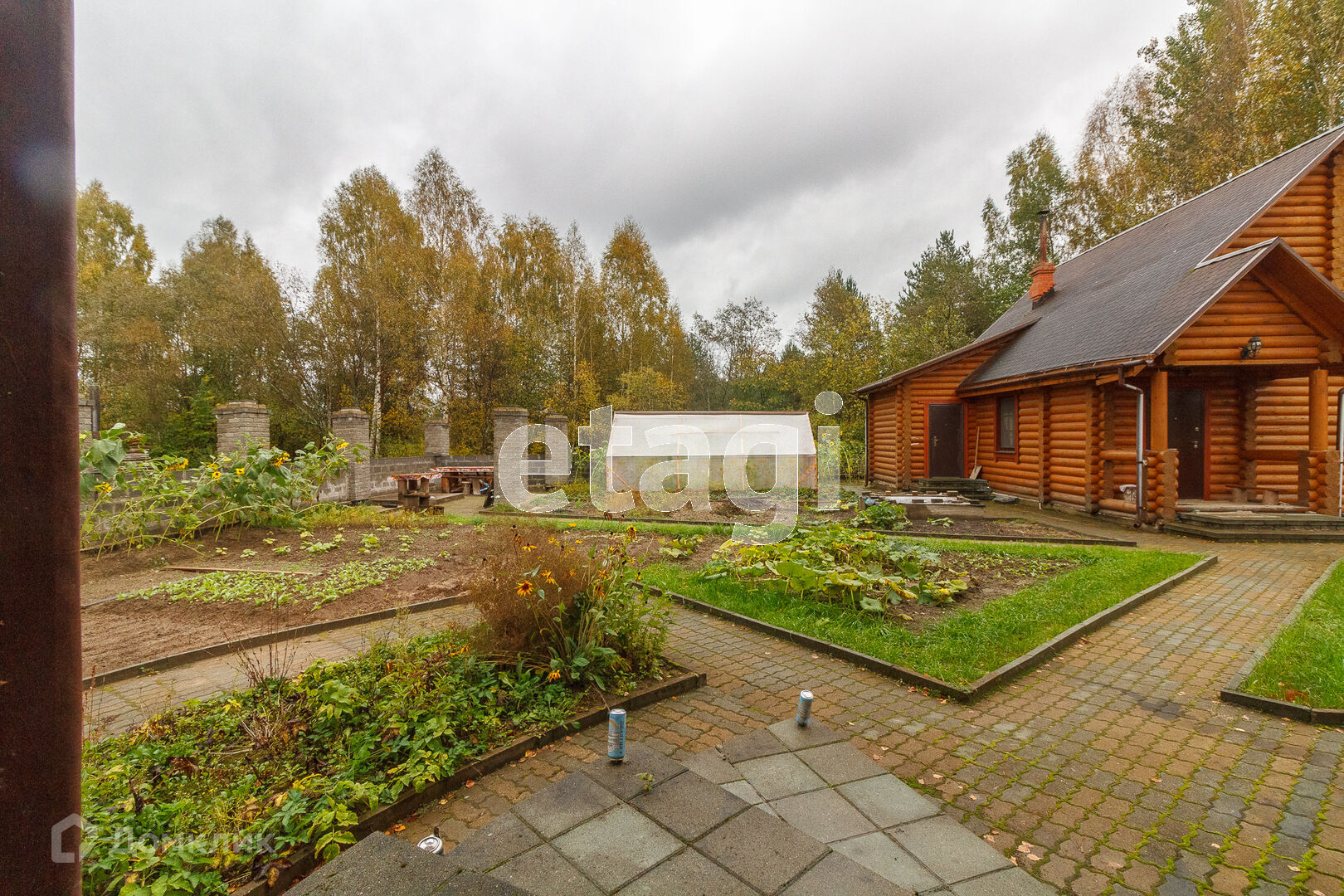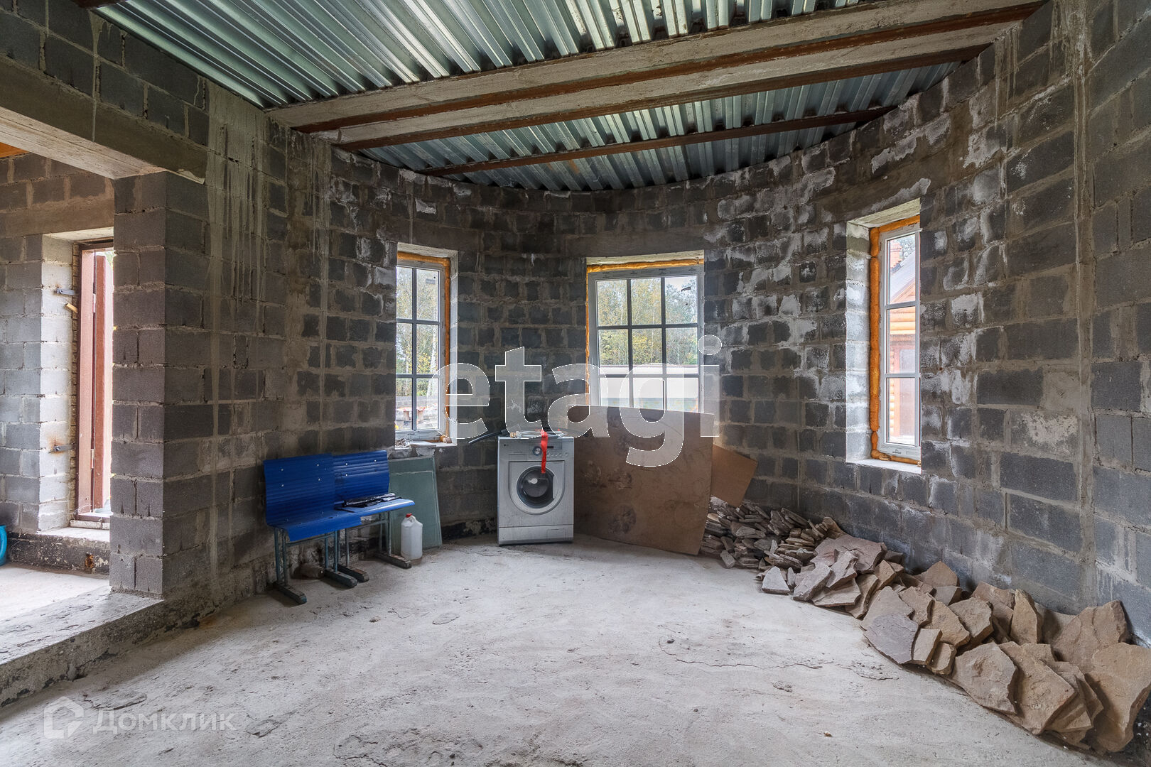 По всей территории в 15 соток ограждён кирпичным забором. На участке все тропинки выложены плиткой. Сам дом построен из кирпича. Внутри дома черновая отделка. На первом этаже имеется 2 комнаты в одной из которых находится печь с стеклянной дверью камина, которая создаёт приятный уют. Так же на первом этаже имеется 2 раздельных санузла. Под домом вкопаны 4 кольца для септика.