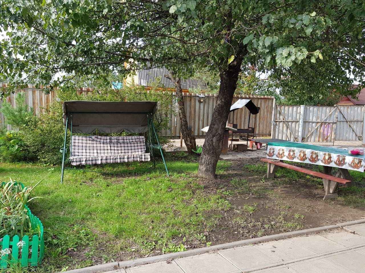 Участок ухоженный, теплица и саженцы.
