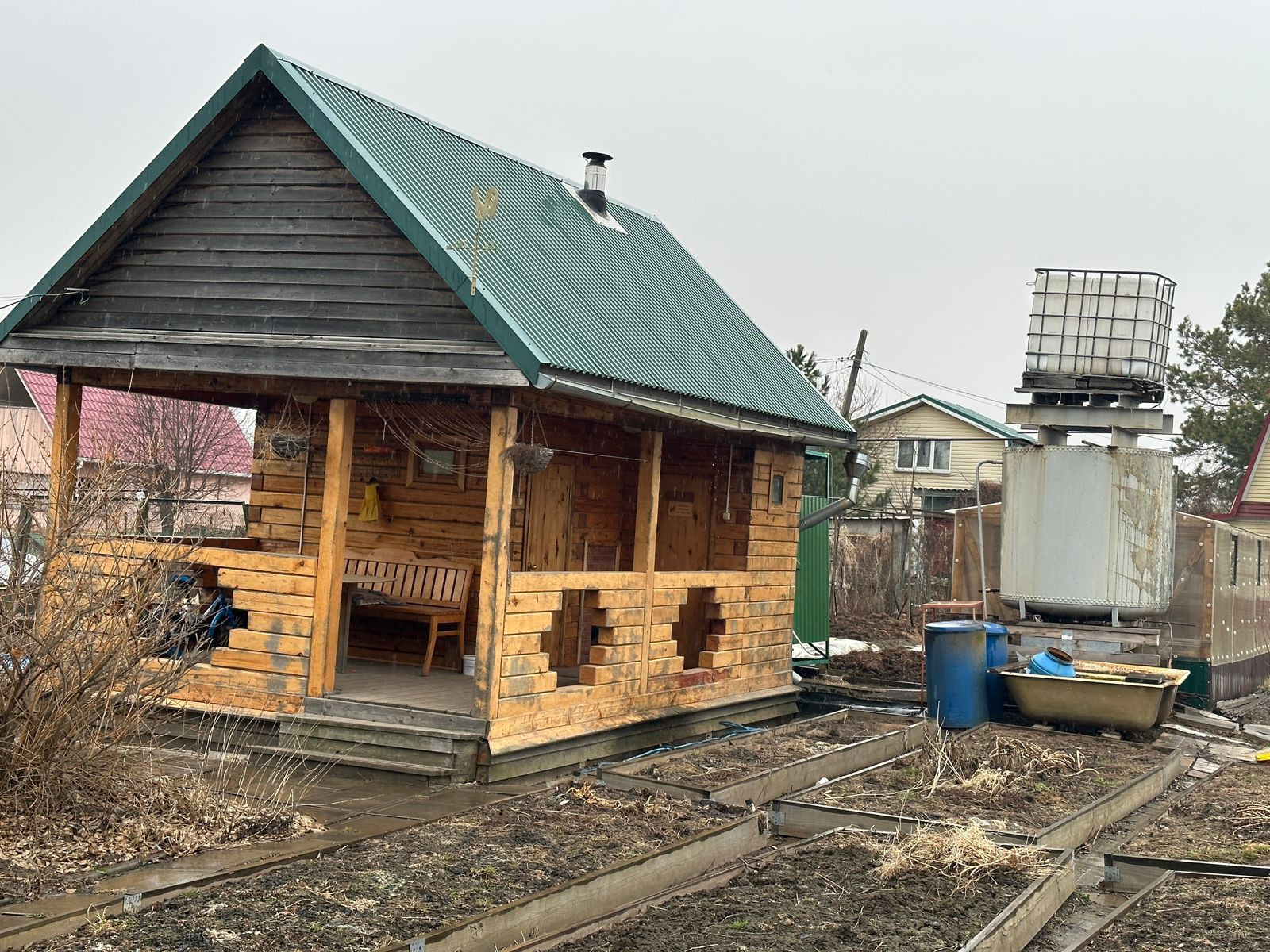 Новая баня, душ и зона для отдыха.