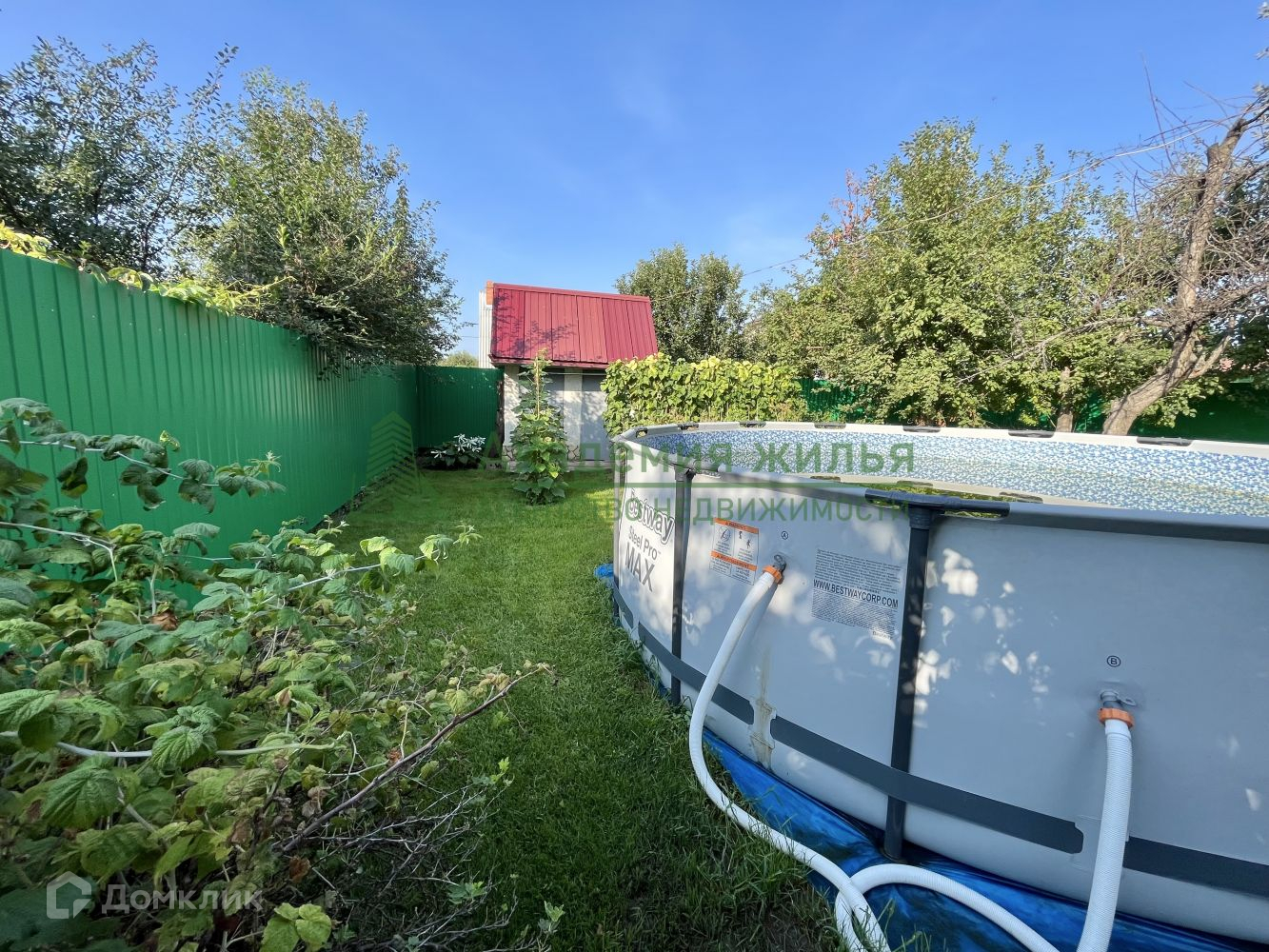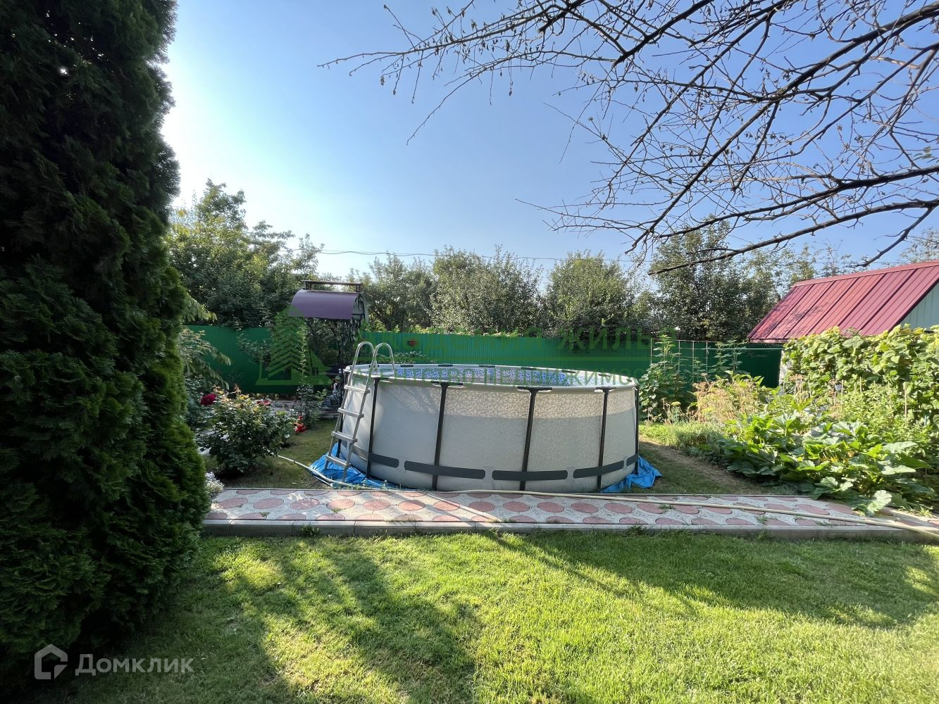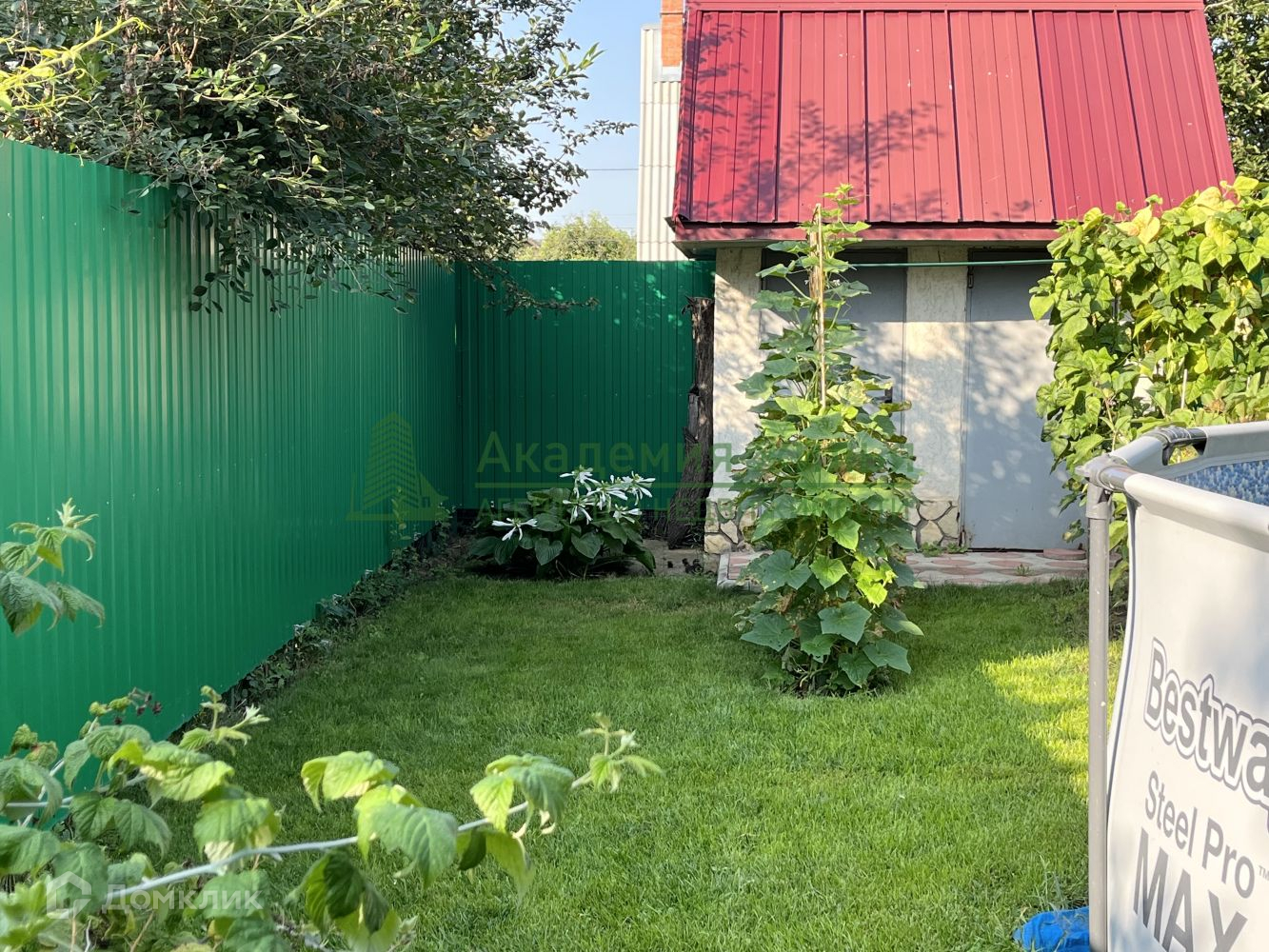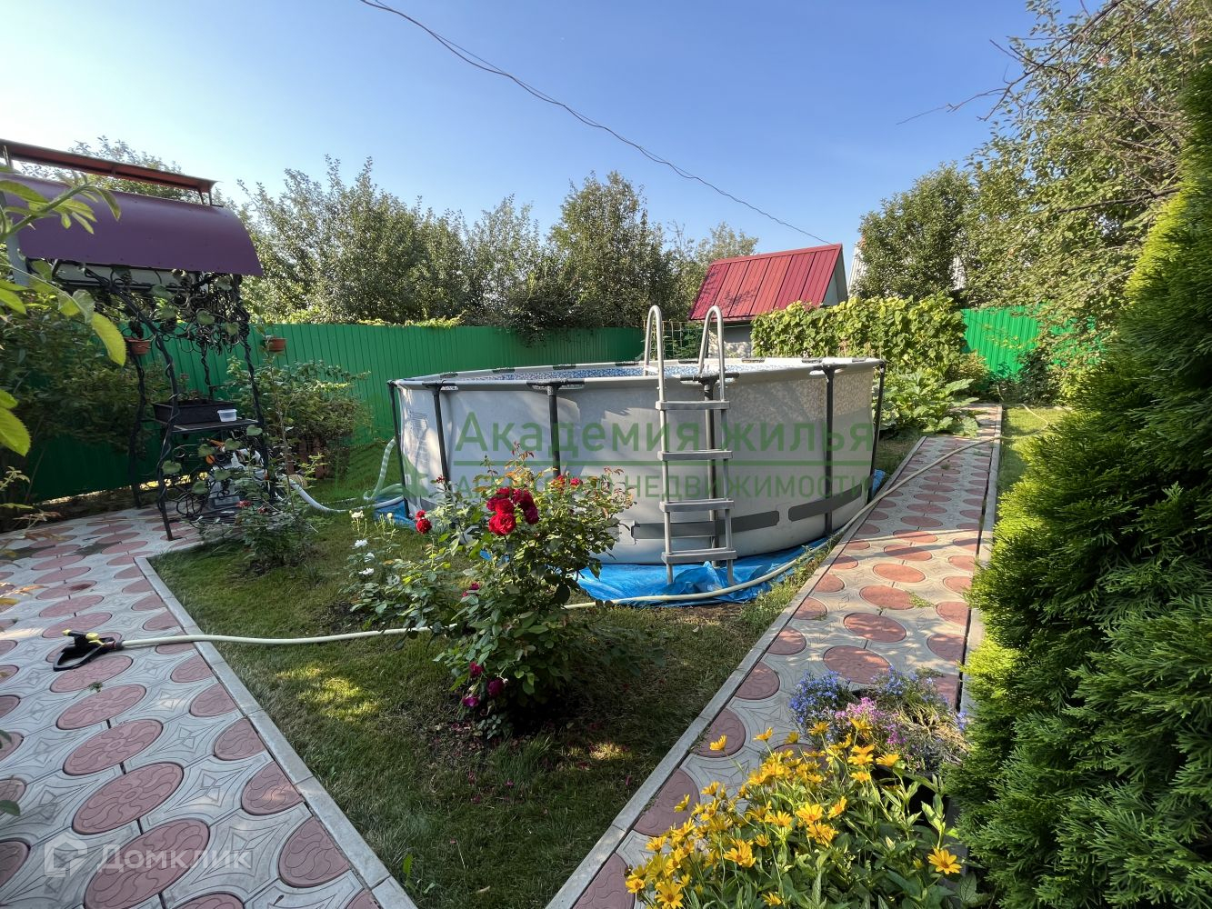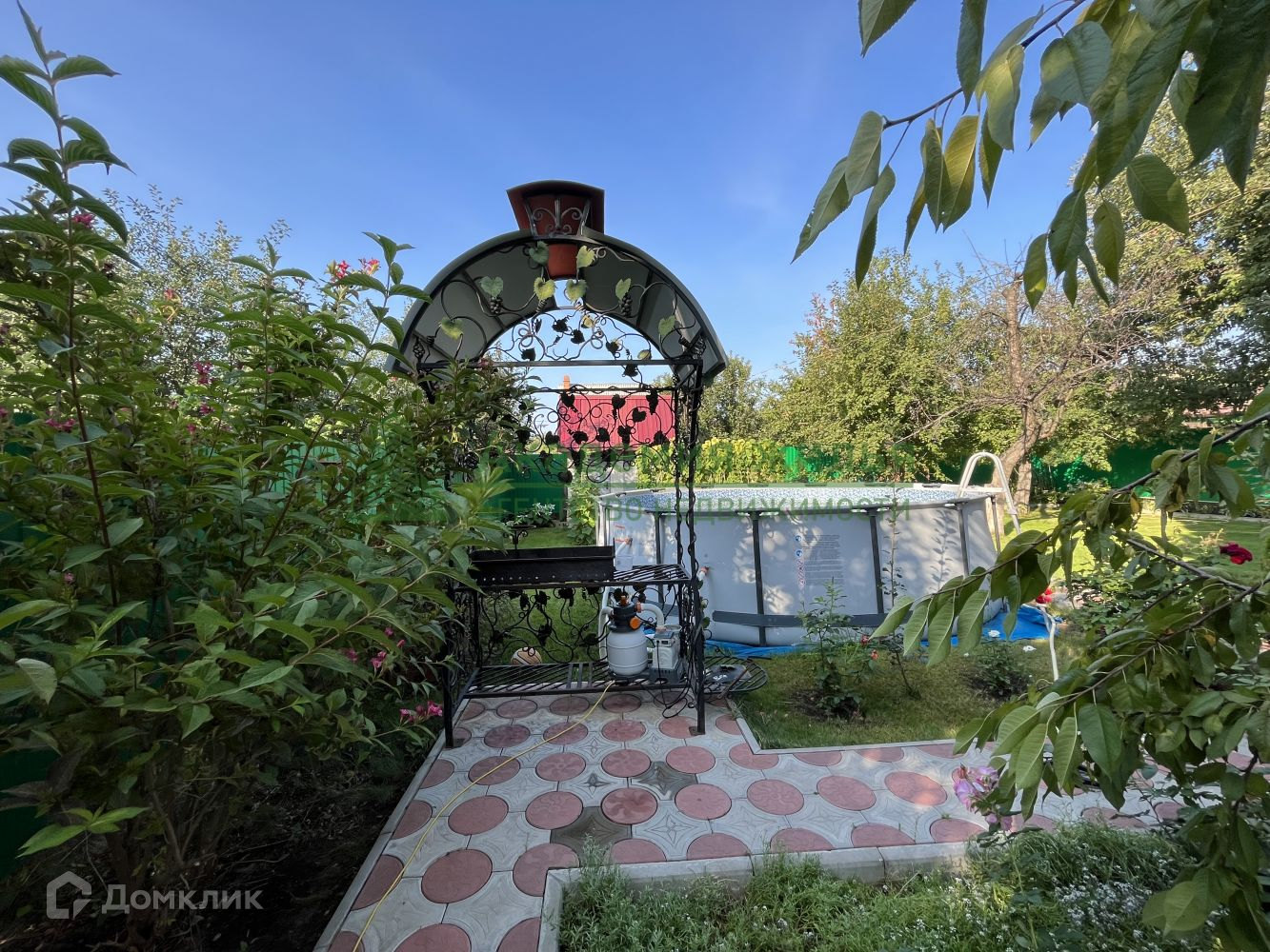 Имеется уличный бассейн, мангальная зона, беседка, дровник, санузел