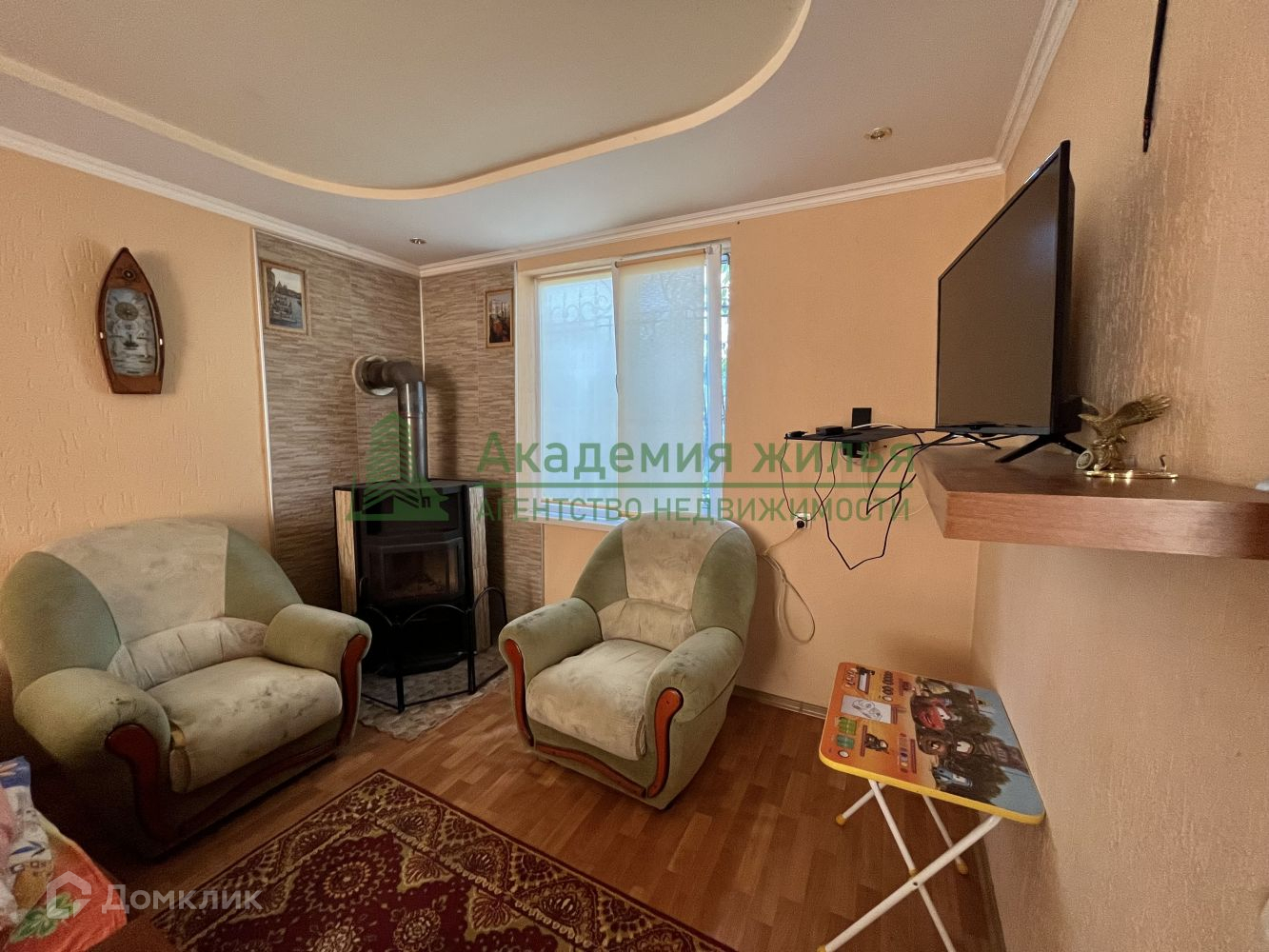 Стены внутри дома обшиты гипсокартоном, двухуровневые навесные потолки