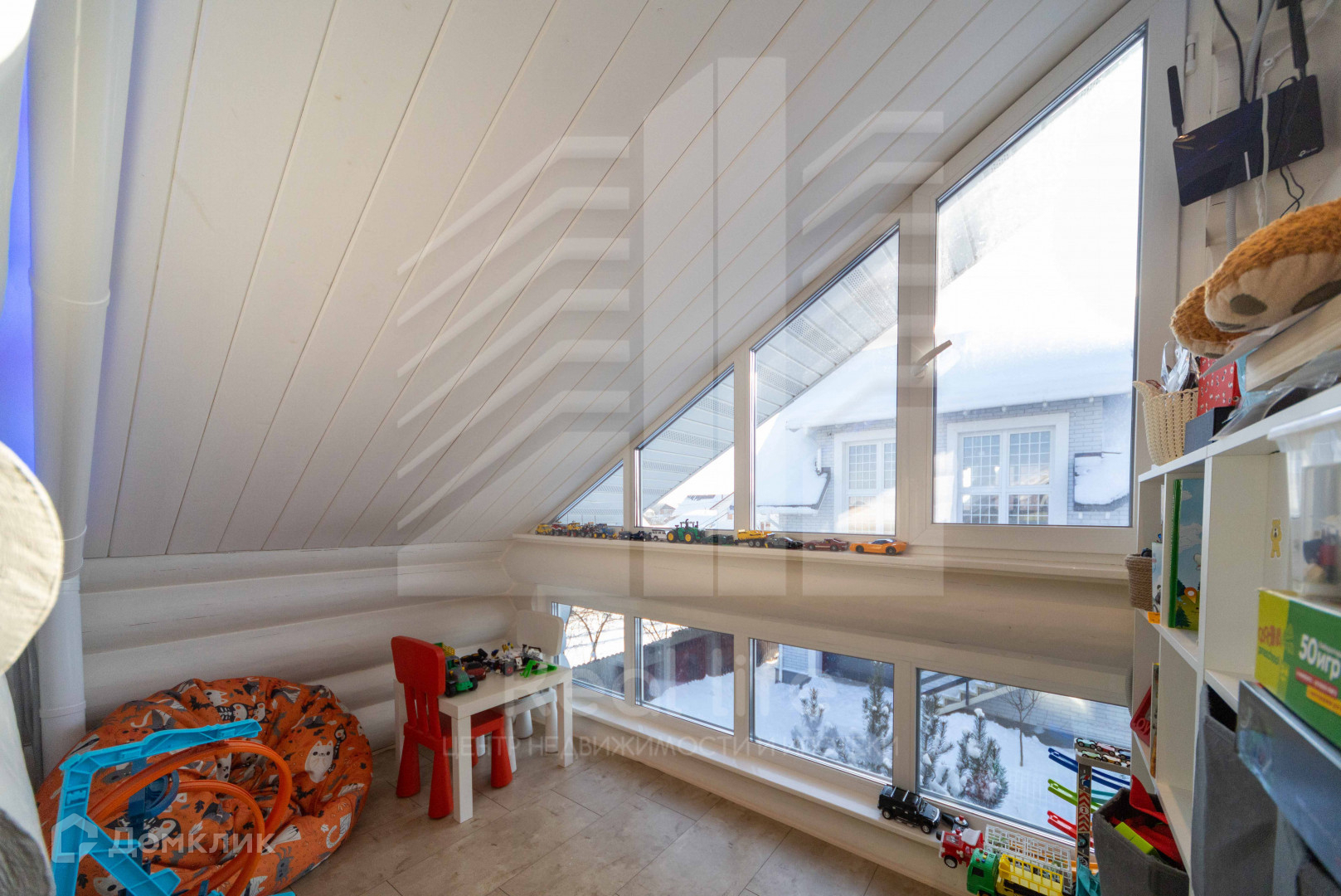 На втором этаже: три спальни, игровая комната с панорамными окнами, гардеробная, санузел.