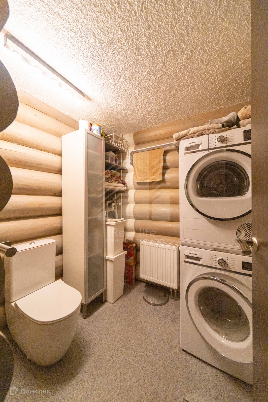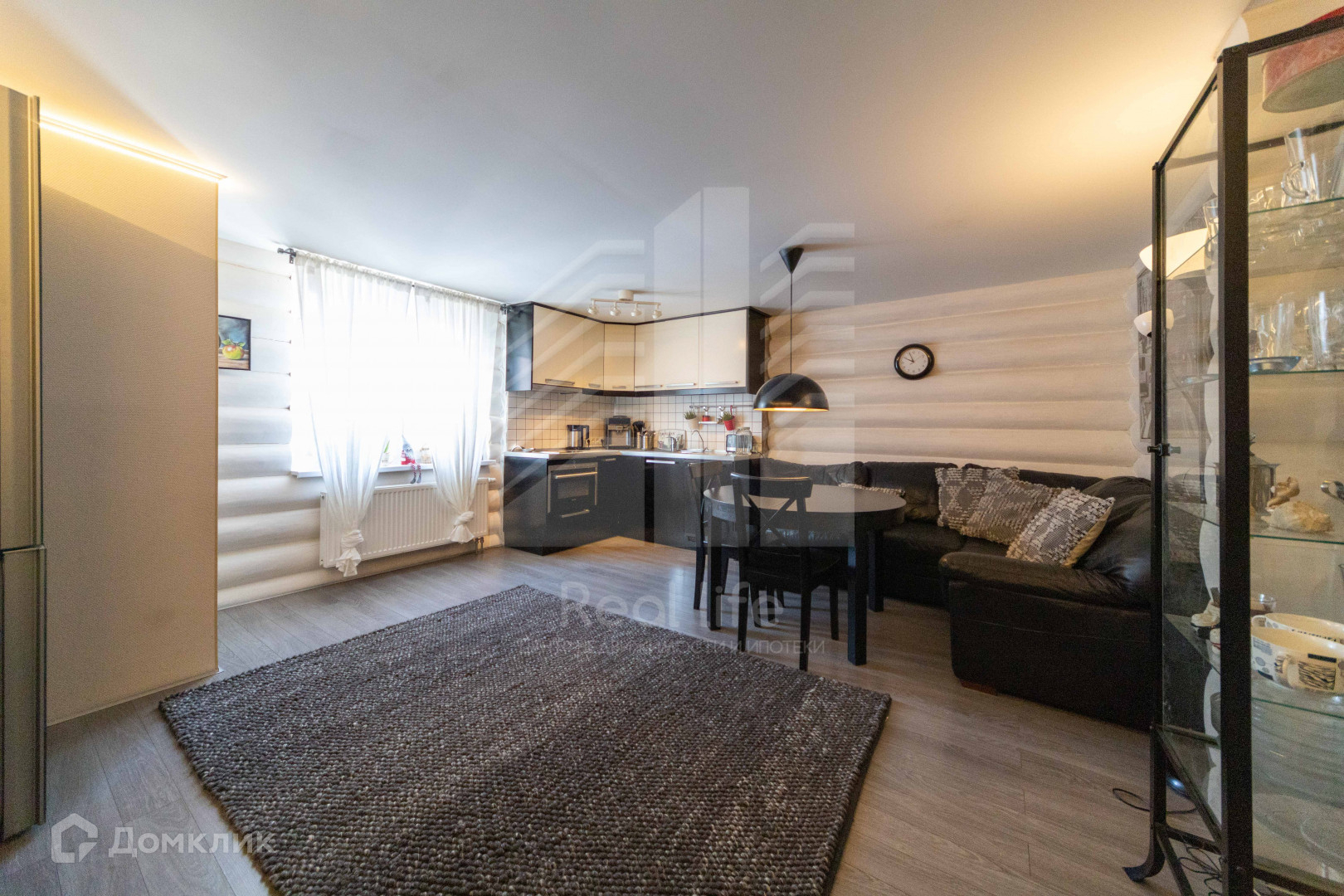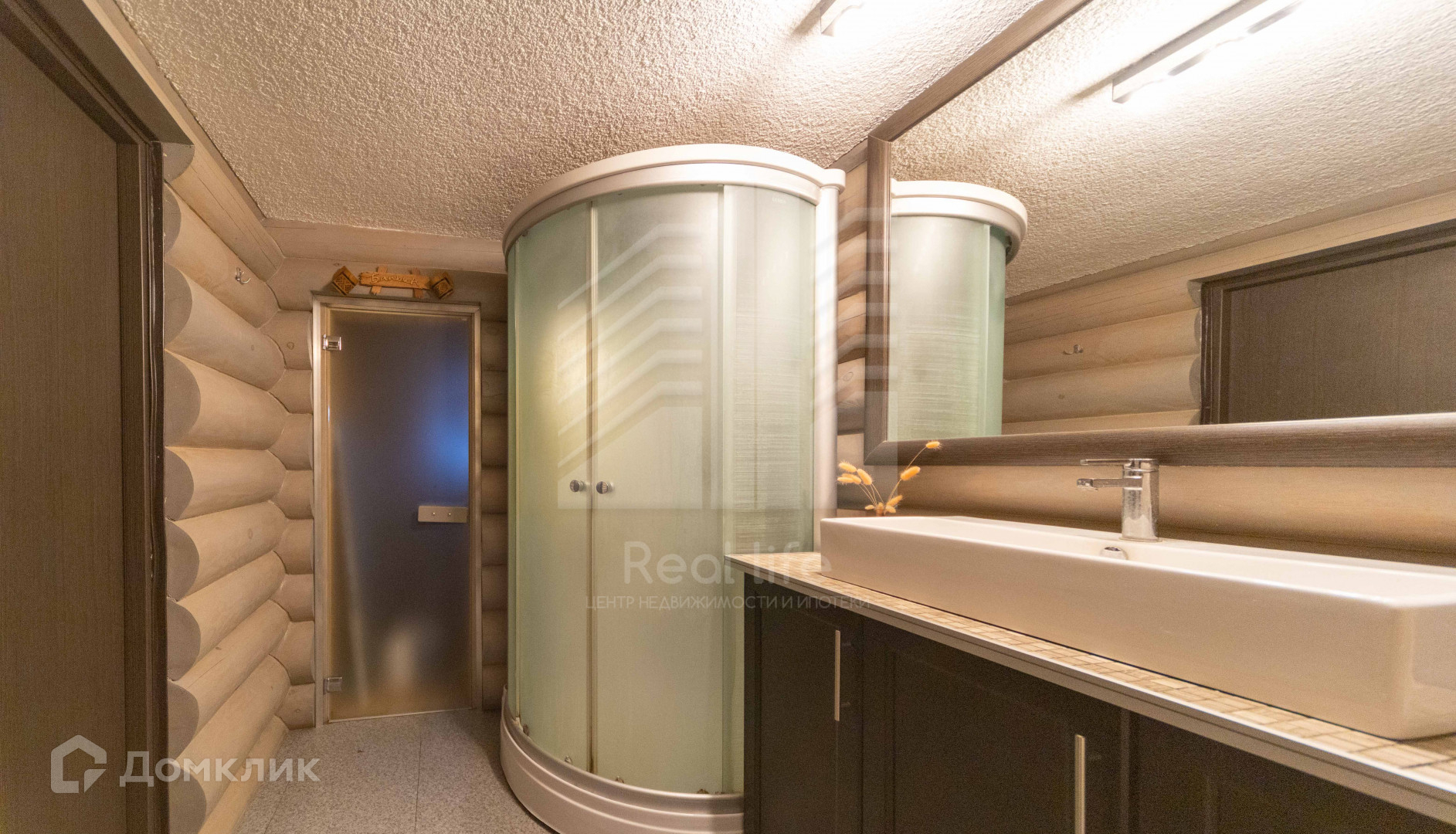 Основной дом, площадью 120 метров из бревна ручной рубки очень теплый и комфортный. На первом этаже прихожая, кухня-гостиная, санузел, сауна, душевая, кладовая, гардероб.