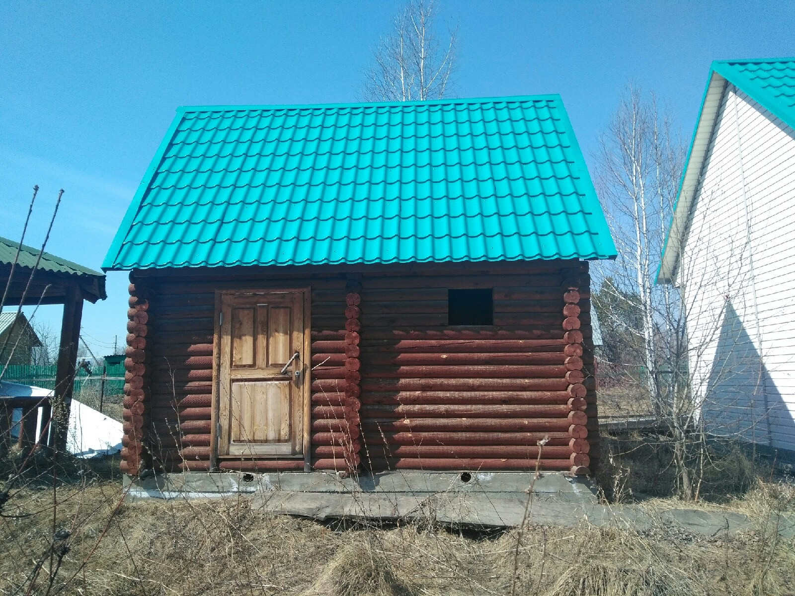 Баня и гараж абсолютно новые, никто не пользовался, на ленточном фундаменте. В бане уже вставлены пластиковые окна Veka. Двери гаража и бани закрываются на ключ. Хороший предбанник, войдет диван, холодильник, можно оставаться ночевать или приезжать с детьми.