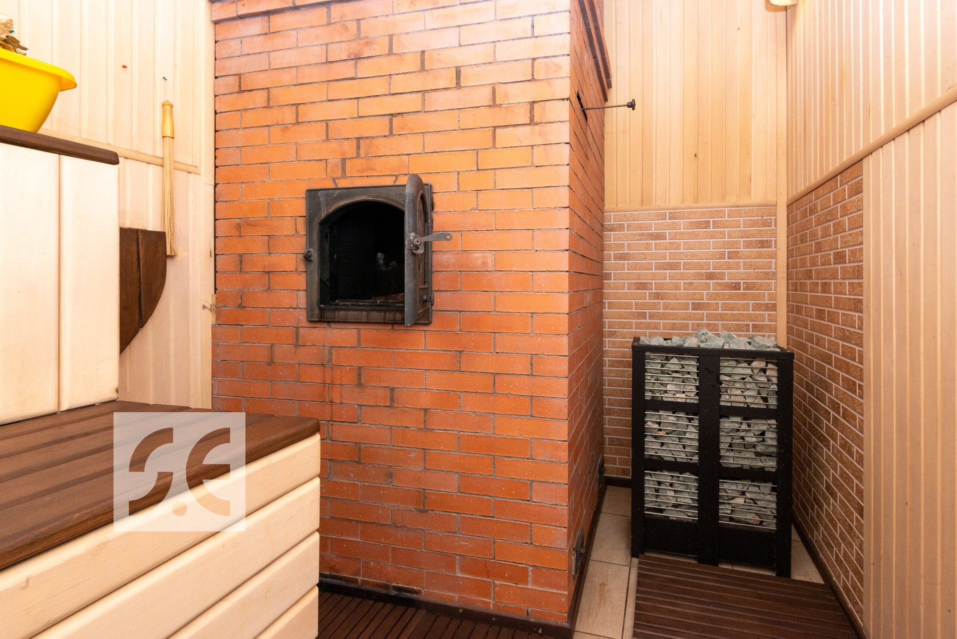 Баня гостевой дом, с каминным и спортивным залами и купелью. общей площадью 176 м2. Баня рубленная, сложена из бревна d 28-50cм. В бане русская парилка с дровяной печью. Каминный зал с выходом на террасу. Спортивный тренажерный зал (25м2) и террасой (50м2)