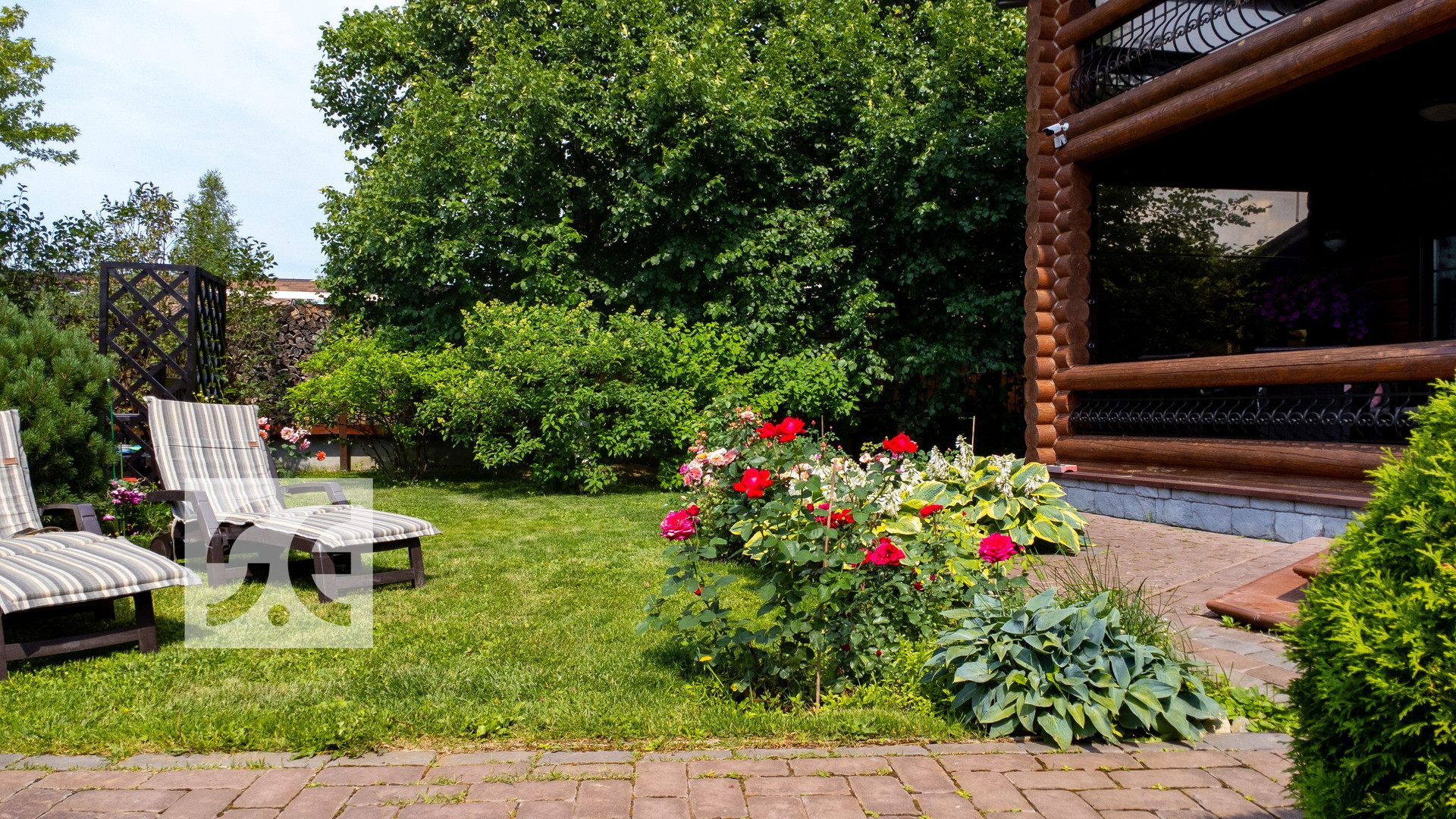 Участок расположен на двух террасах и спланирован в виде небольшого парка. Он включает в себя 24 крупномера (четыре липы, четыре сосны, девять елей, две березы, три клена, кедр, дуб и черемуха). В парке высажены декоративные деревья и кустарники, туи, сирени, бересклет, можжевельники, горные сосны, декоративные ель и лиственница, крупные гортензии (от 1.5 метра и до 2.5 в высоту и от 2м и до 4.5 м в ширину), дерен различных сортов, кизильник, спиреи, более 40 розовых кустов различных сортов и видов. Организован качественный газон.